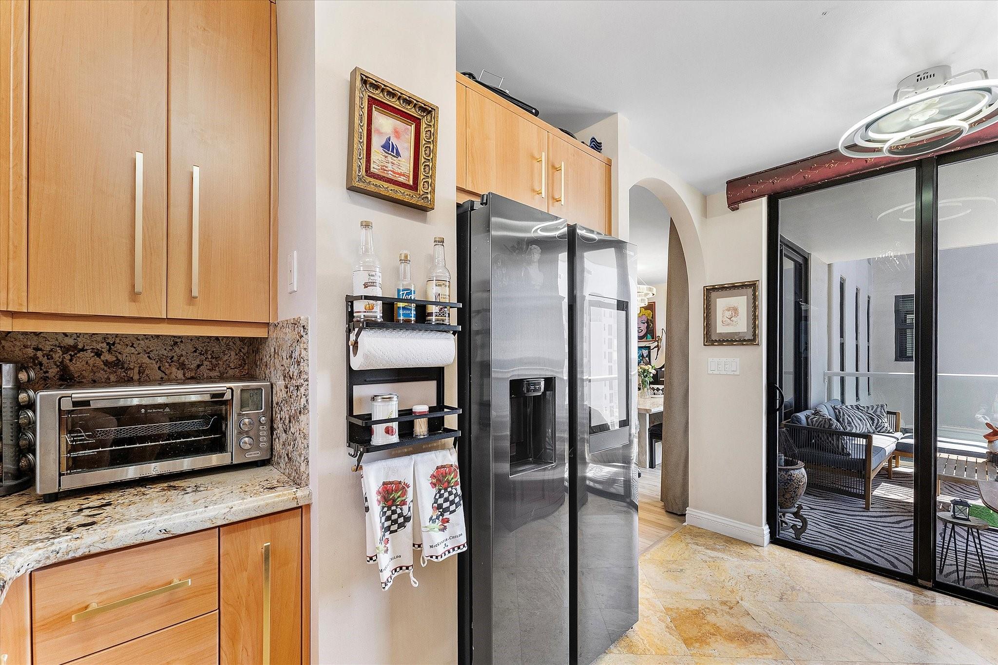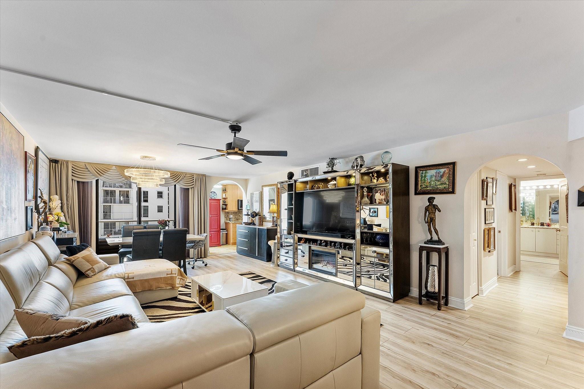 Wake up to breathtaking sunrises over the ocean from your balcony and wind down with stunning intracoastal sunsets in this beautifully upgraded, spacious 1,400 Sq Ft, 2 bed / 2 bath condo in the desirable Pompano Atlantis. Featuring brand-new luxury vinyl plank flooring, a Samsung Family Hub refrigerator, LG microwave, elegant crystal chandeliers, and high-end brass and crystal finishes throughout. The bathrooms boast designer touches, including a black ceramic sink and brass fixtures. The second bathroom features a relaxing jacuzzi tub, perfect for unwinding after a long day. Enjoy peace of mind with impact-resistant windows and doors. This home also features new smart ceiling fans.