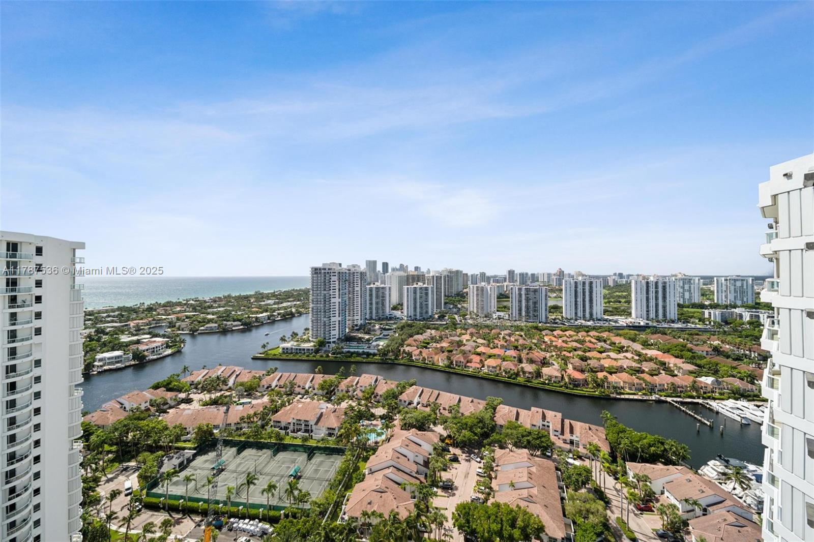 Amazing ocean and intracoastal views!! Elegantly furnished AS IS! Bright unit; all bedrooms, living and kitchen access the balcony. Updated unit with ceramic floor, recess lighting, shades and blackouts. Master suite, 2nd full bathroom, laundry room. Resort style community with 3 pools, tennis courts, BBQ areas, full service Spa, hair and nail salon, gym, fitness classes, on site café, Waterways marina across the street, and so much more. Minutes away from Aventura Mall, Gulfstream Park, Park Square Aventura, variety of dining and shopping nearby, close to beaches, house of worship nearby, Don Suffer Aventura High School on same street. Available now.