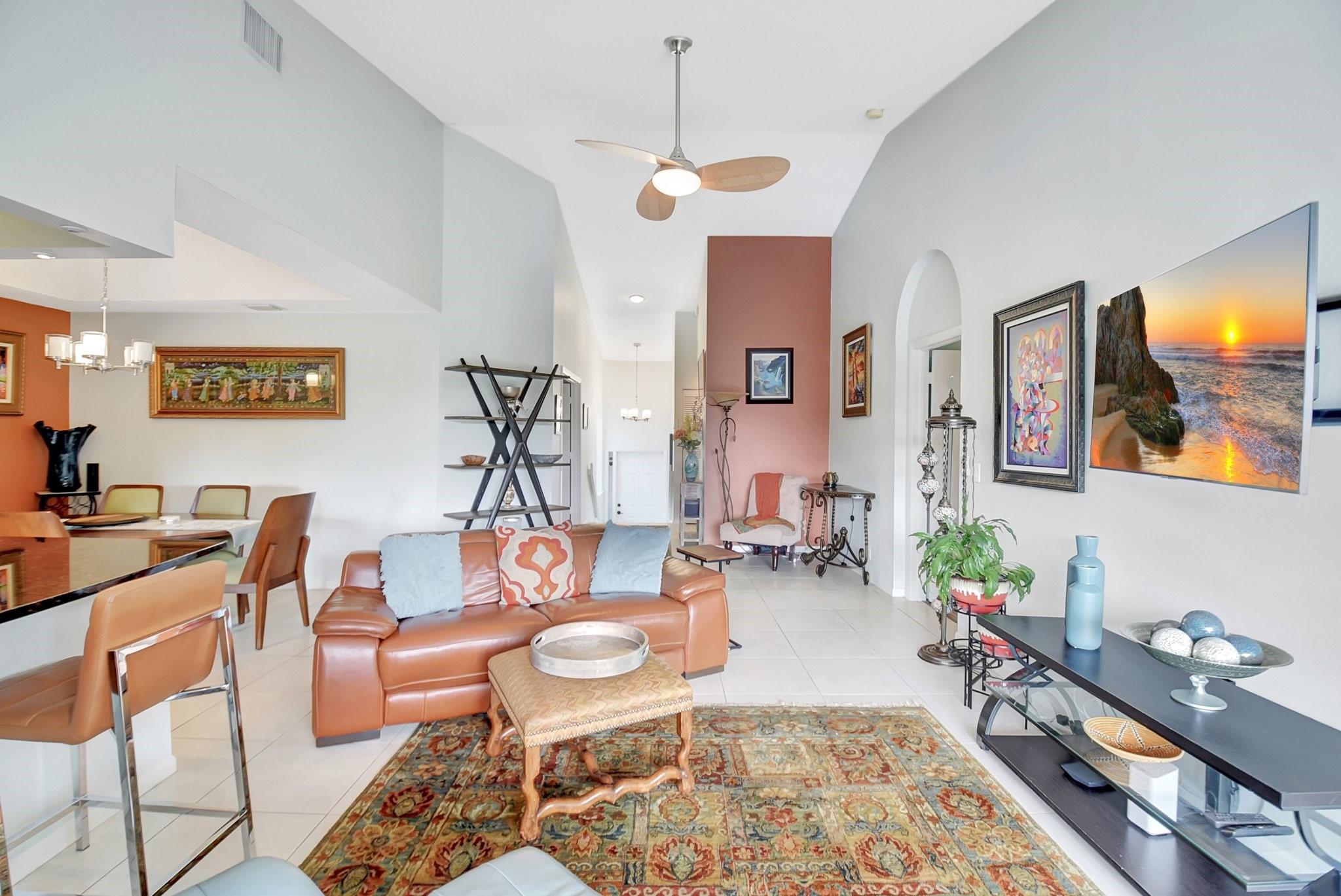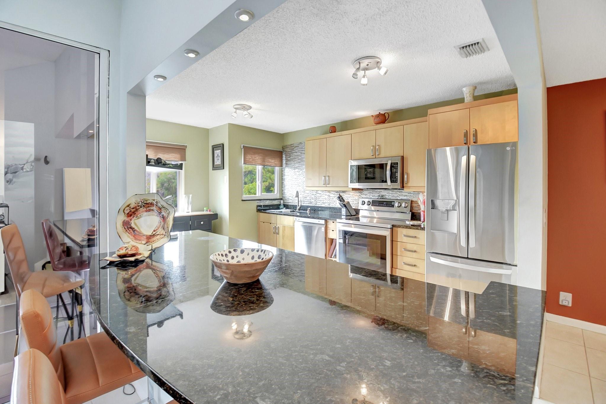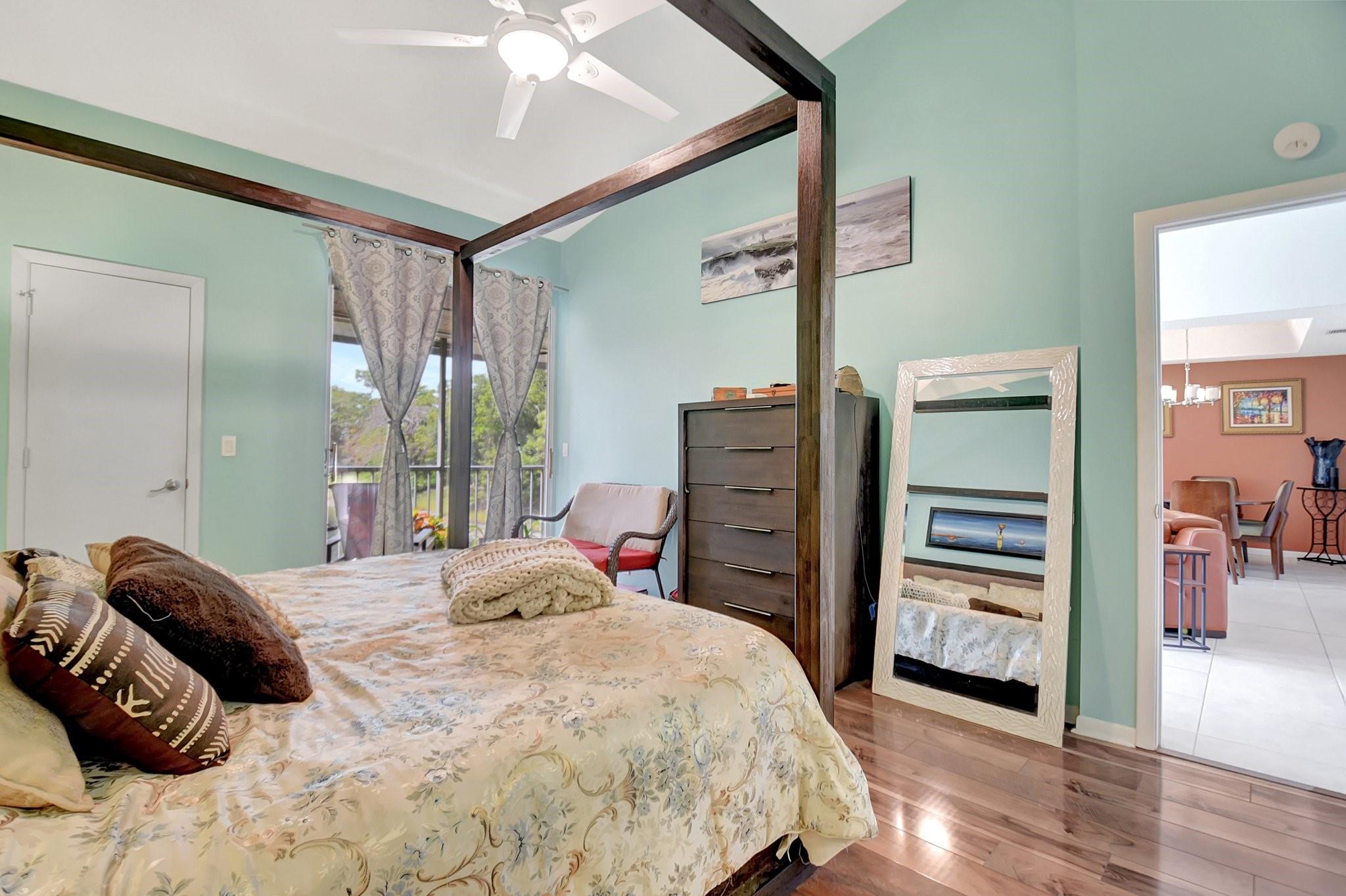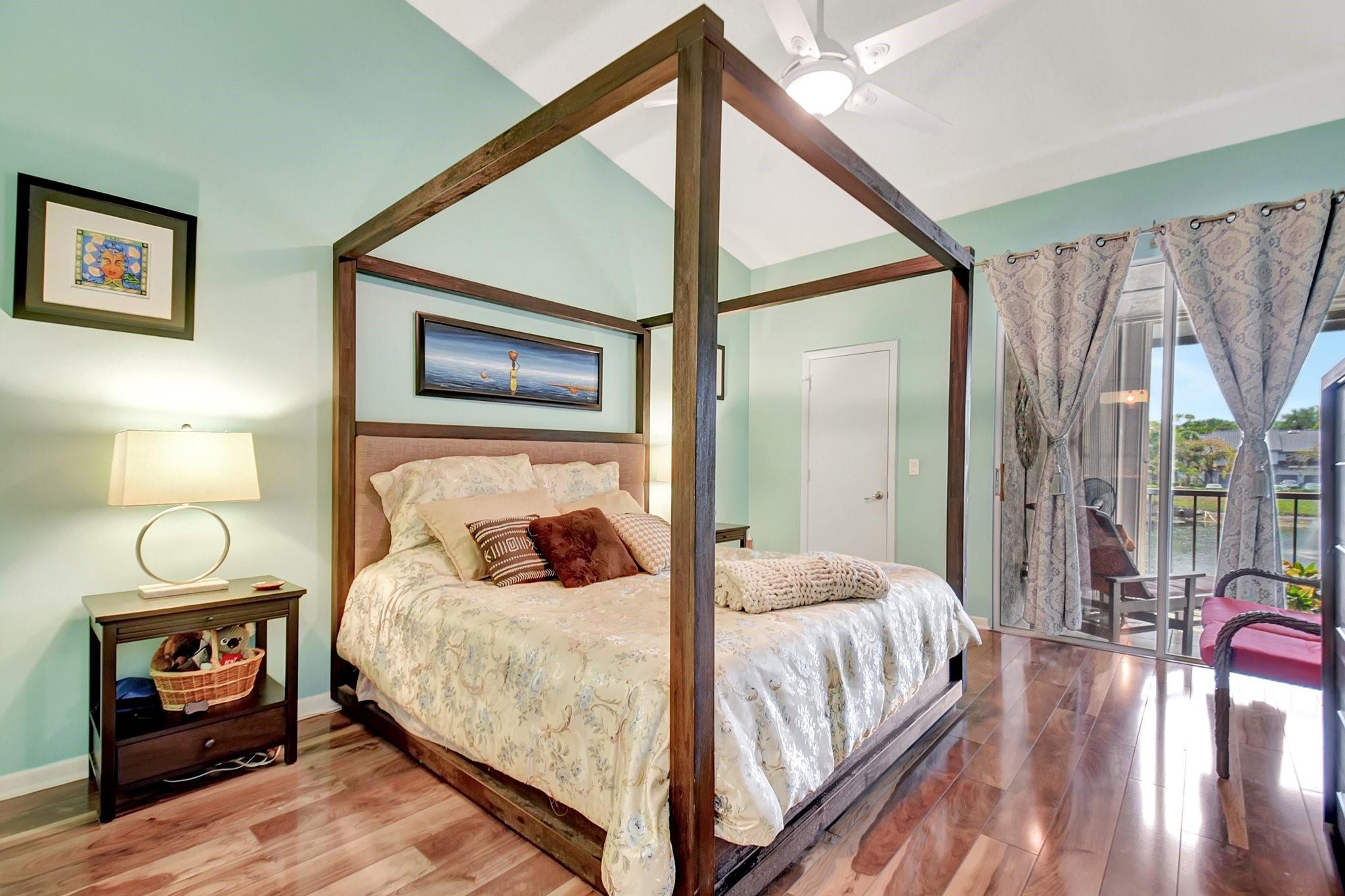 TENANT OCCUPIED UNTIL 9/2026 - INSTANT INCOME! 2nd floor residence in a prime Boynton Beach location only 10 minutes to the beach. Meticulously maintained home with expansive lake views from nearly every room. Soaring vaulted ceilings and an open-concept layout create a bright and airy feel throughout. Upgraded vinyl and tile flooring run seamlessly throughout the home. Renovated kitchen has solid wood cabinetry, newer appliances and ample counter space for entertaining. Spacious primary bedroom features a large walk-in closet with custom shelving and remodeled ensuite bath complete with an exquisite walk-in shower. Guest room w/custom murphy bed. Enjoy sunsets from your covered and screened-in balcony overlooking the lake. Impact windows, accordion shutters and private attached garage!