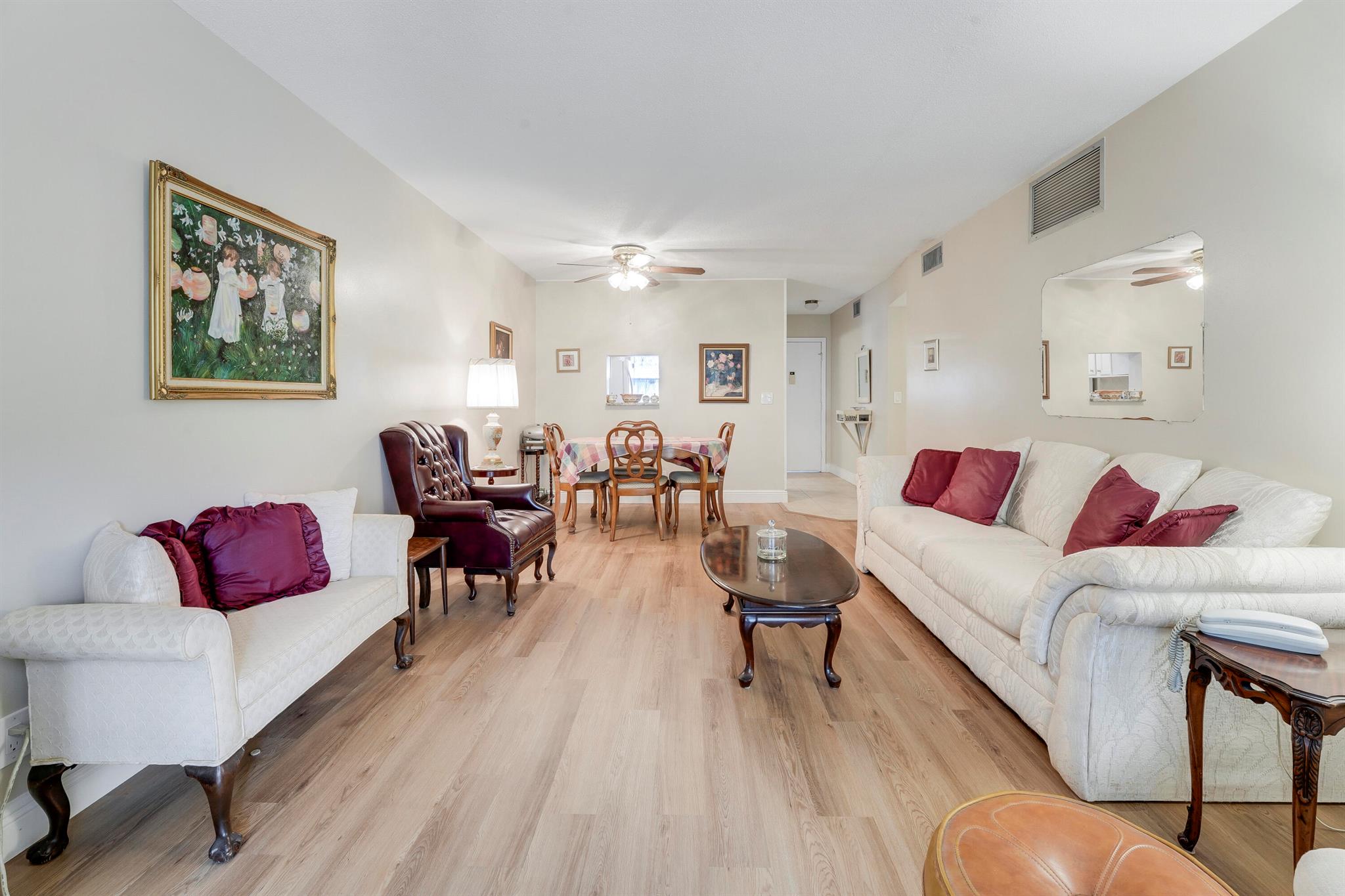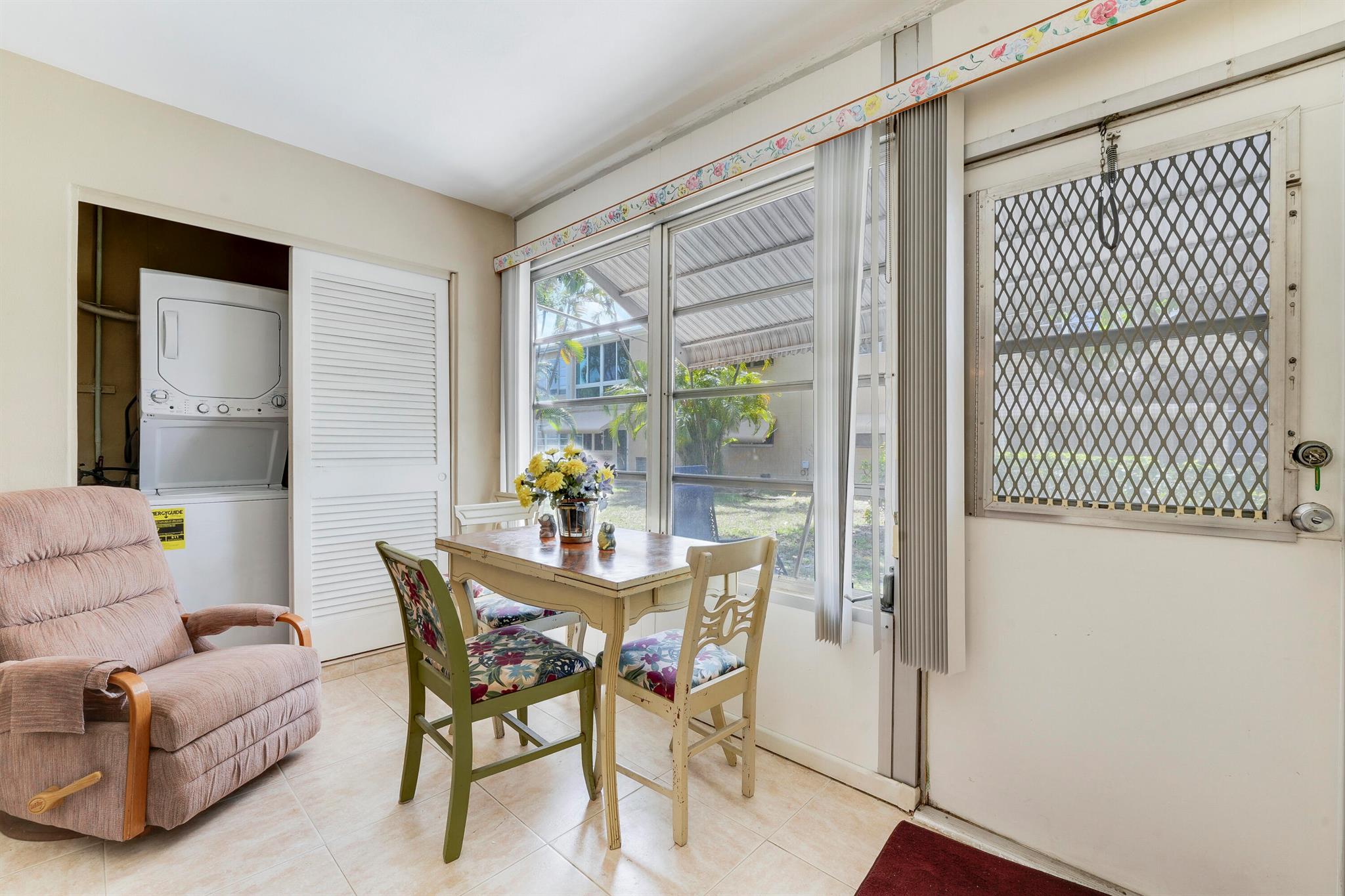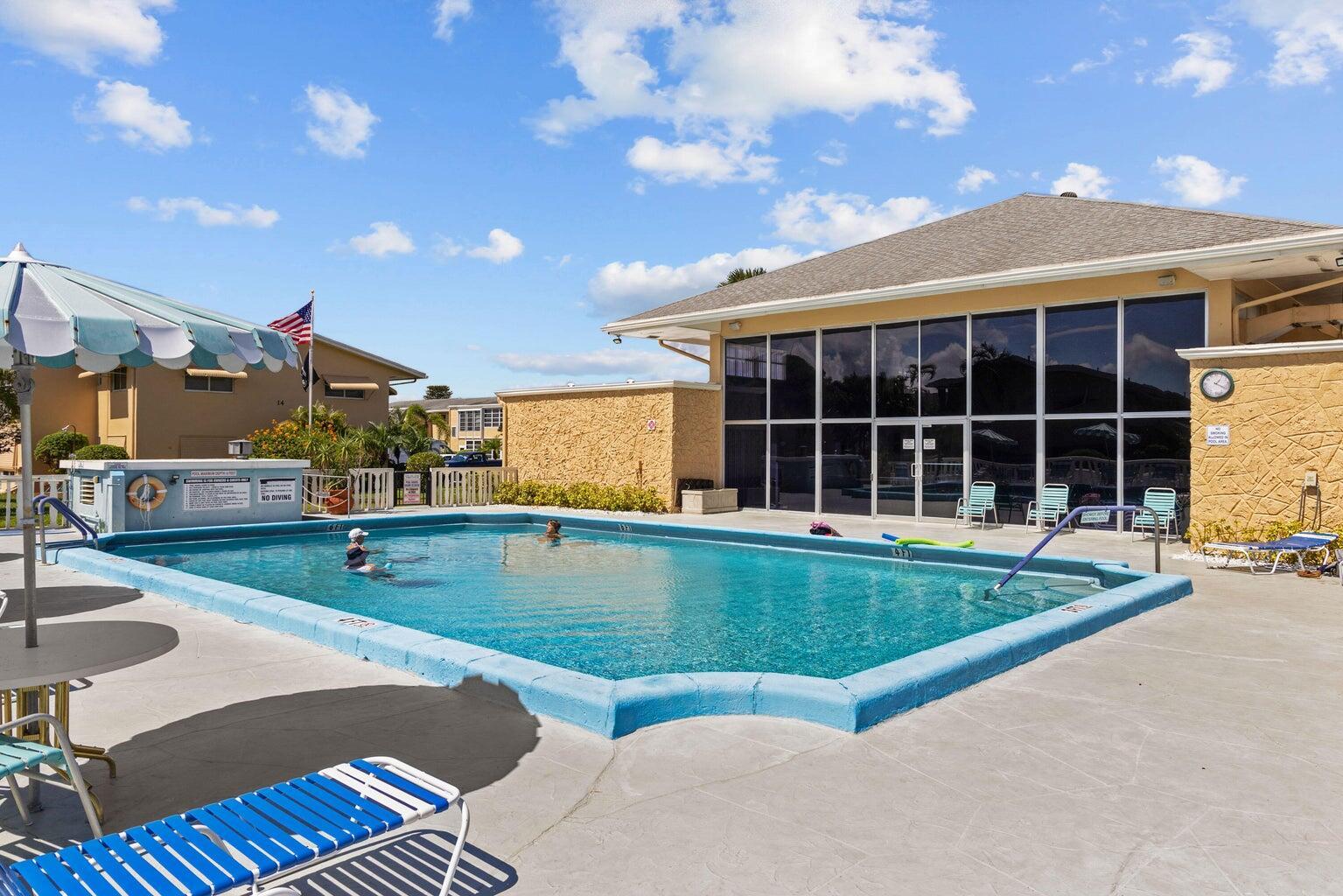 Welcome home to this move-in ready *ground-floor* 2 bed, 2 bath condo in the 55+ community of Village Royale! Featuring an updated kitchen with newer appliances, brand new bedroom flooring, and a spacious Florida room with full-sized washer and dryer. Step outside to your private pavered patio with beautifully landscaped views. HOA includes water, trash, basic cable, and internet. Enjoy fantastic amenities--clubhouse, pool, shuffleboard & more. Prime location just minutes to the beach, Publix, shopping, and I-95. Don't miss this one!
