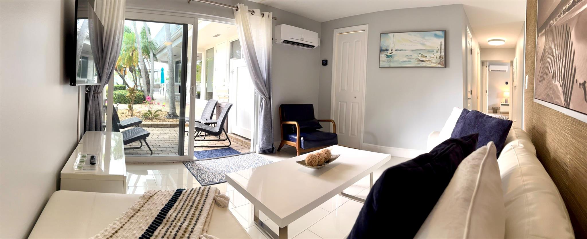 Price improved! Make an offer. Spacious and turnkey 2-bedroom, 2-bathroom condo in a very private, pet-friendly 8-unit building on the Intracoastal—just a 5-minute walk to the beach! This ground-floor unit is being sold fully furnished, ready for immediate enjoyment or rental. Minimum 7-day rentals allowed, ideal for Airbnb and VRBO. Many guests return year after year. The building recently completed its 40-year repairs. Brand-new roof and concrete restoration (special assessments fully paid). Hurricane-impact windows. Community amenities include a heated pool, BBQ area, laundry room, and assigned parking. Showings limited by guest schedule. Buy one unit or invest in a portfolio of units within the building—rare opportunity in a prime beachside location!