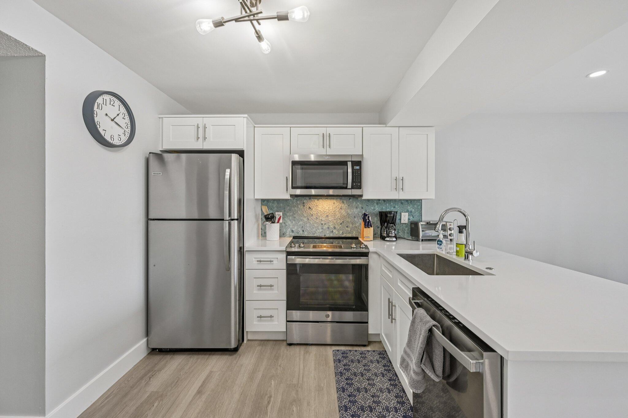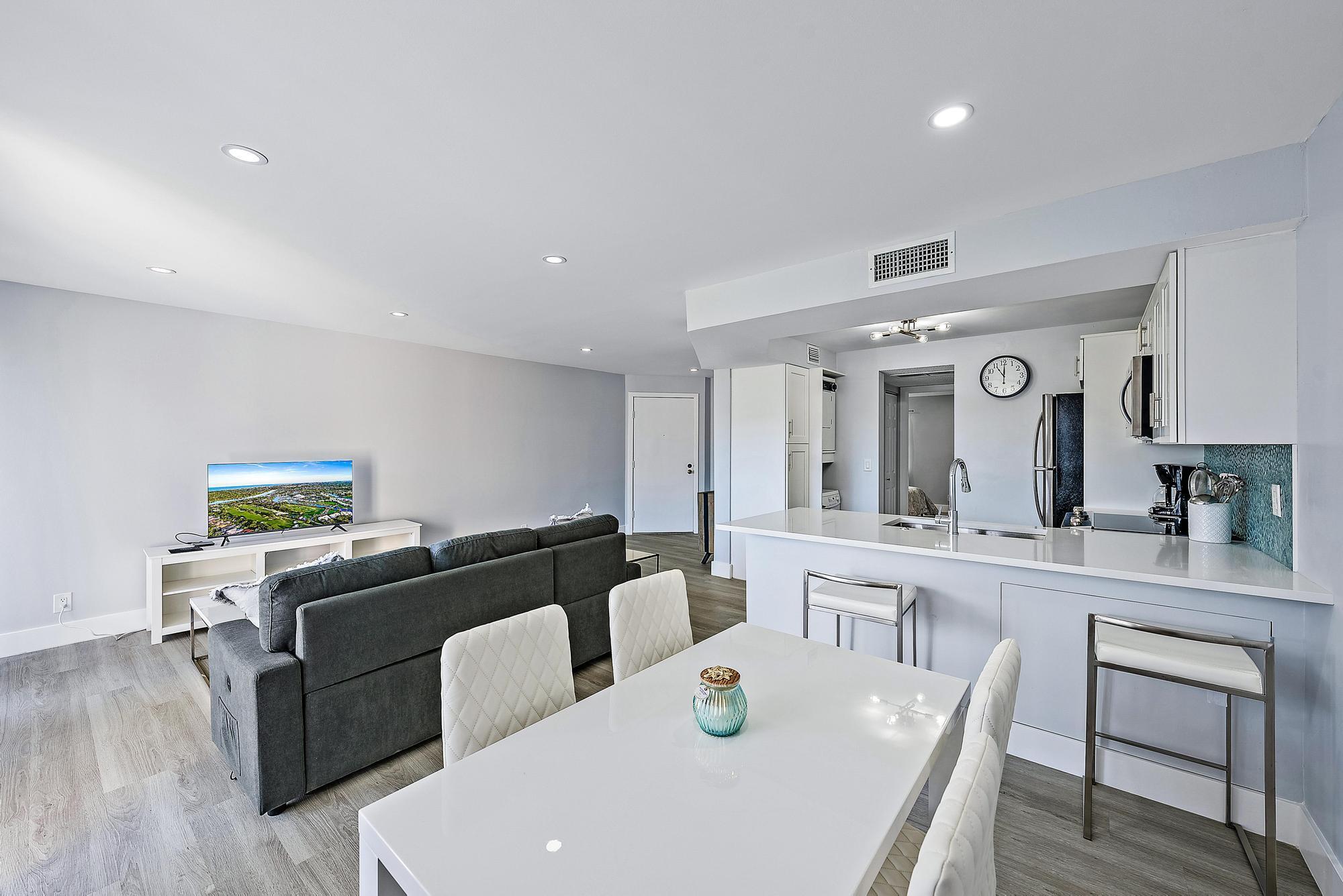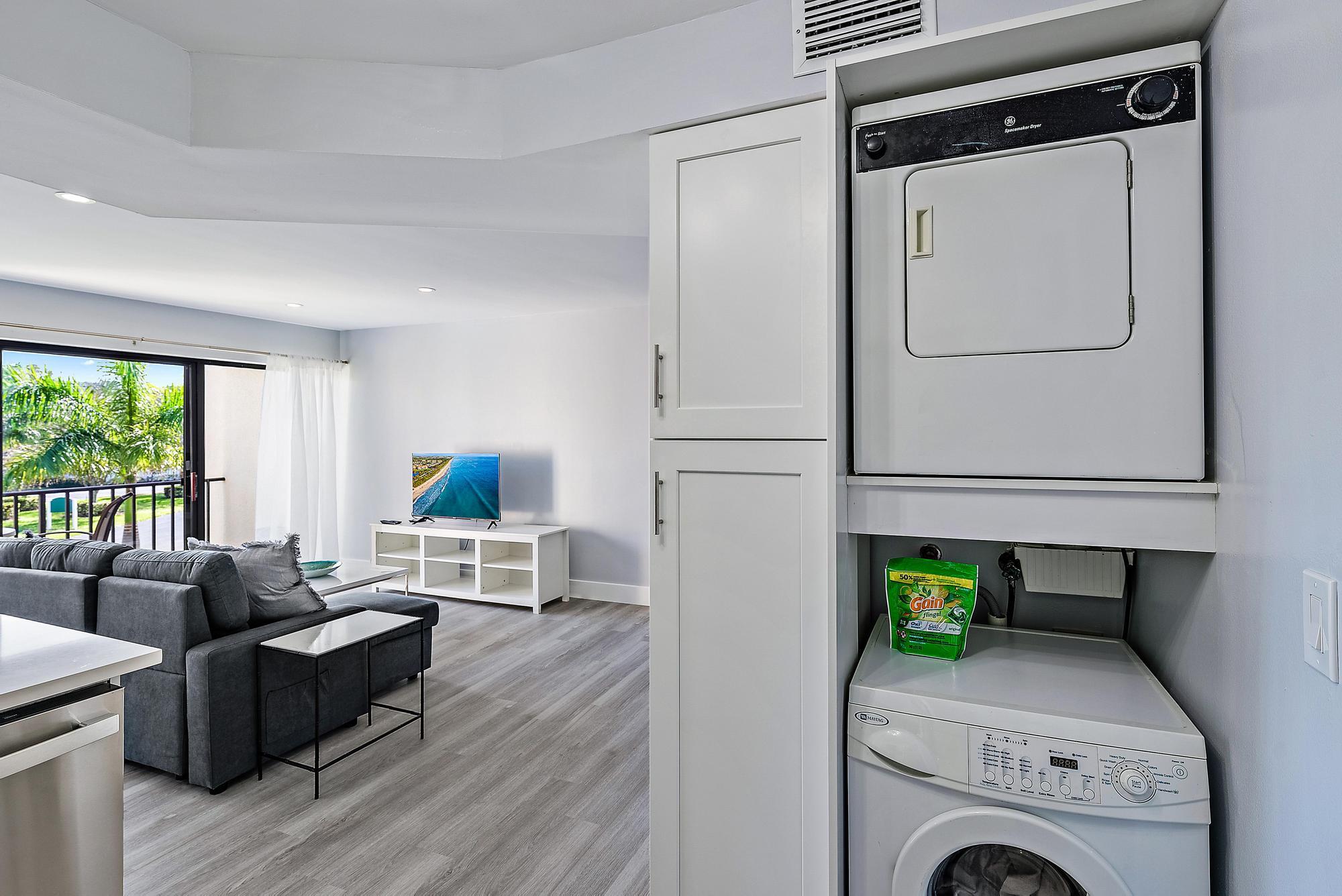 COASTAL LIVING MADE EASY! Move right into this beautifully furnished, thoughtfully upgraded 1-bedroom, 1.5-bath condo, just bring your personal items! Features LVP flooring throughout, a new kitchen with soft close shaker style cabinets, quartz counters, & newer stainless appliances. The primary bathroom has also been remodeled. Ideally situated just a short stroll from the pristine shores of Jupiter Beach, this charming residence radiates a relaxed, beachy vibe. Enjoy the perks of resort-style living with access to a community clubhouse and sparkling pool. You're also just minutes from upscale dining, premier shopping, and exciting local attractions. Conveniently close to Palm Beach International Airport (PBI), travel is a breeze.