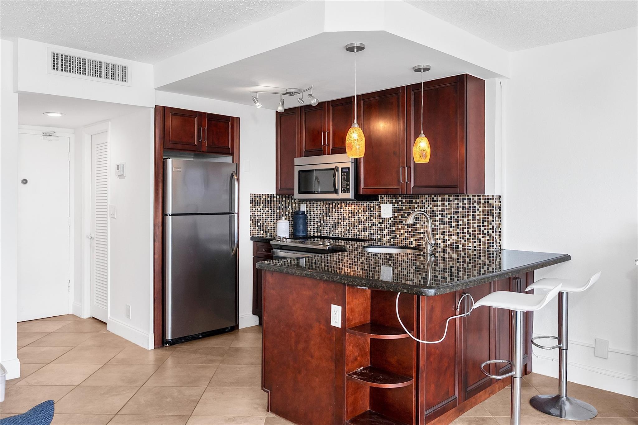 PRICED TO SELL. Fully furnished STUDIO beautifully remodeled! Full kitchen with built in microwave, dishwasher, oven, disposal and granite counters. Remodeled bath with granite. ceramic floors through-out, walk-in closet and impact windows. Laundry on every floor. An extra storage unit on the same floor. Building offers heated pool-right on the Intracoastal, barbeque area, gym, party room, and assigned parking (#136). GREAT LOCATION, WALKING DISTANCE to BEACH, Shooters, Mastros and many other great restaurants & shopping. Just minutes to "trendy Las Olas", downtown, Galleria Mall, Coral Ridge Mall. Catch the Water Taxi for a cruise down the Intracoastal. Seller finance available at a higher asking price.