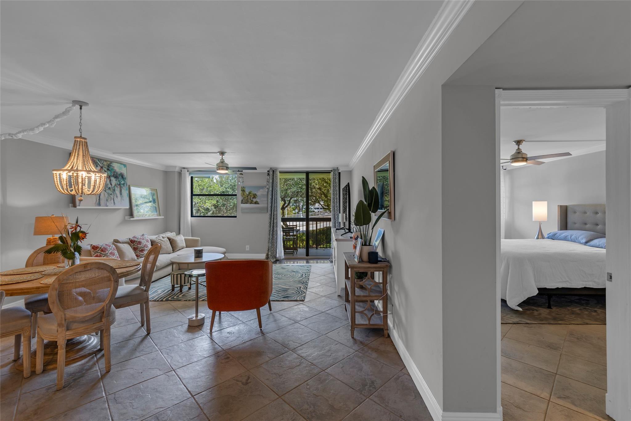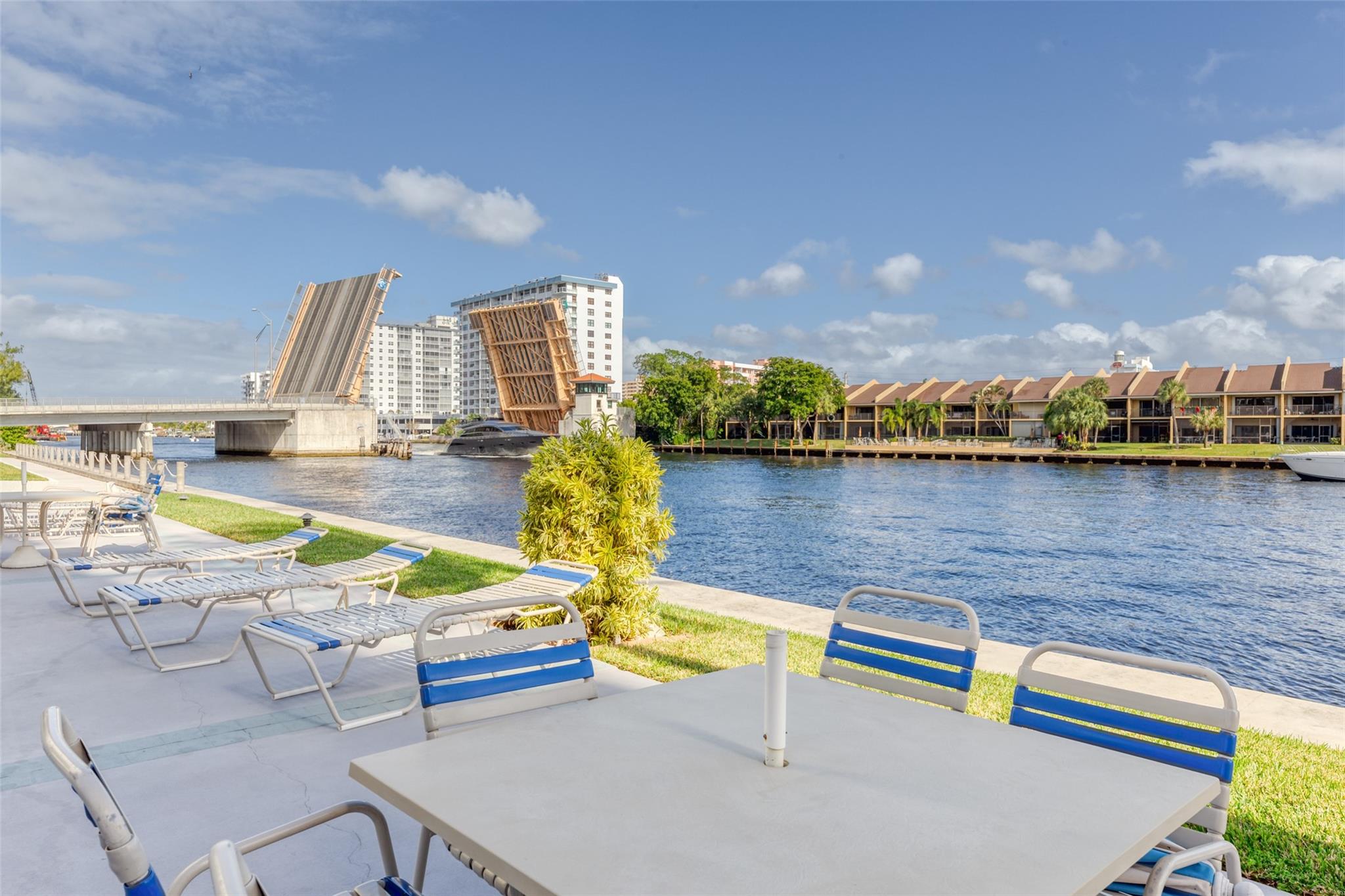 Nicely updated 1 bedroom with 1.5 bathroom condo at the Intracoastal waterway in Pompano Beach. HUGE open kitchen with tons of cabinetry (storage), granite counters and ample lighting. FULL size stacked washer and dryer for your convenience. Large living and dining area that look out to the lawn, trees and the Intracoastal waterway. Unit has an extra half bathroom. Large bedroom with 2 walls of closets and primary bathroom offers a tub and shower combination. HIGH impact windows and doors. Tile flooring on a diagonal pattern throughout. FURNITURE if optional. Pet friendly building, garage parking and ample guest parking. Management office on site. Fitness center, club room, BBQ area and more. Just blocks to the beach! EAST facing unit!