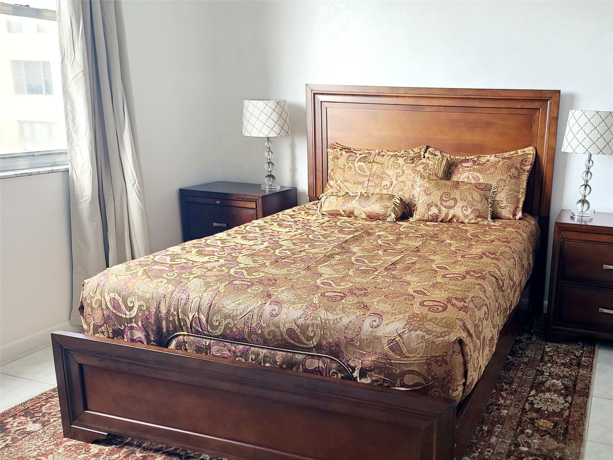 Move-in ready. Enjoy sunny mornings, peaceful afternoons by the pool & evenings just minutes from downtown Hollywood, golf & the beach. Beautifully updated & fully furnished 1BR/1.5BA in a secure 55+ community with tropical grounds, heated pool, pickleball, tennis & a 3-mile walking path. 24-hr manned security desk, reserved parking with plenty of guest parking. The apartment features smooth ceilings, fresh paint, custom closets, stone counters, a water filtration system and new washers/dryers on every floor. Quality furnishings included—sofa, 2 TVs, dining set, bar stools, bedroom set, china cabinet, decorative tables & balcony chairs. - Motivated seller.