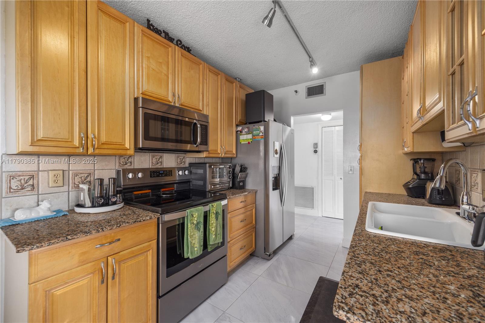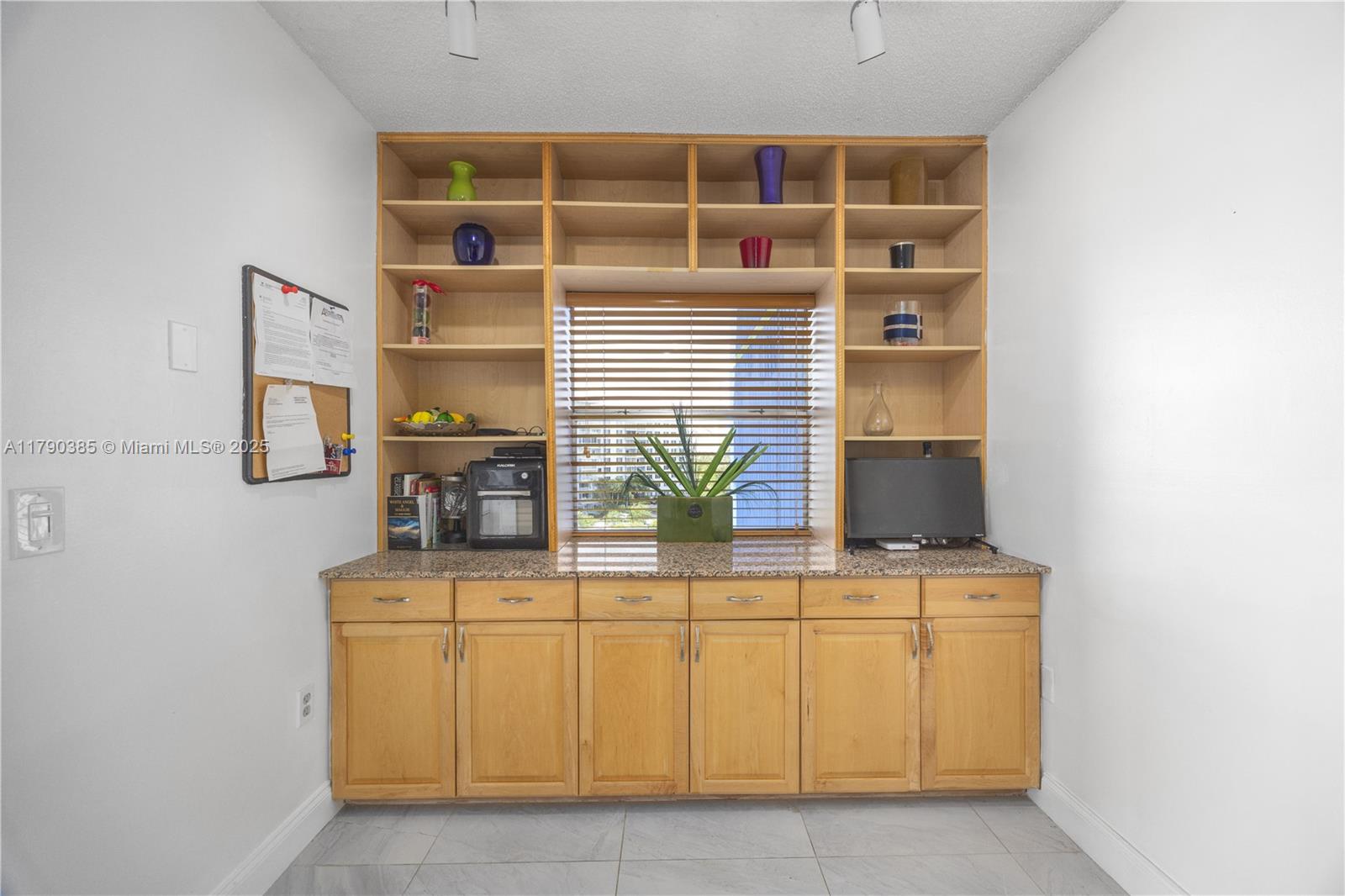This spacious 2-bedroom, 2-bathroom corner unit on the 6th floor offers 1,344 sq ft of beautifully updated living space with tile flooring throughout. Enjoy abundant natural light, built-in features, serene garden views, and the added security of high-impact windows. The modern kitchen is outfitted with stainless steel appliances, including a dishwasher, microwave, and refrigerator. Assigned parking and guest spaces are included. The building boasts a new roof and completed 40-year certification for added peace of mind. A perfect home blending comfort, style, and convenience!