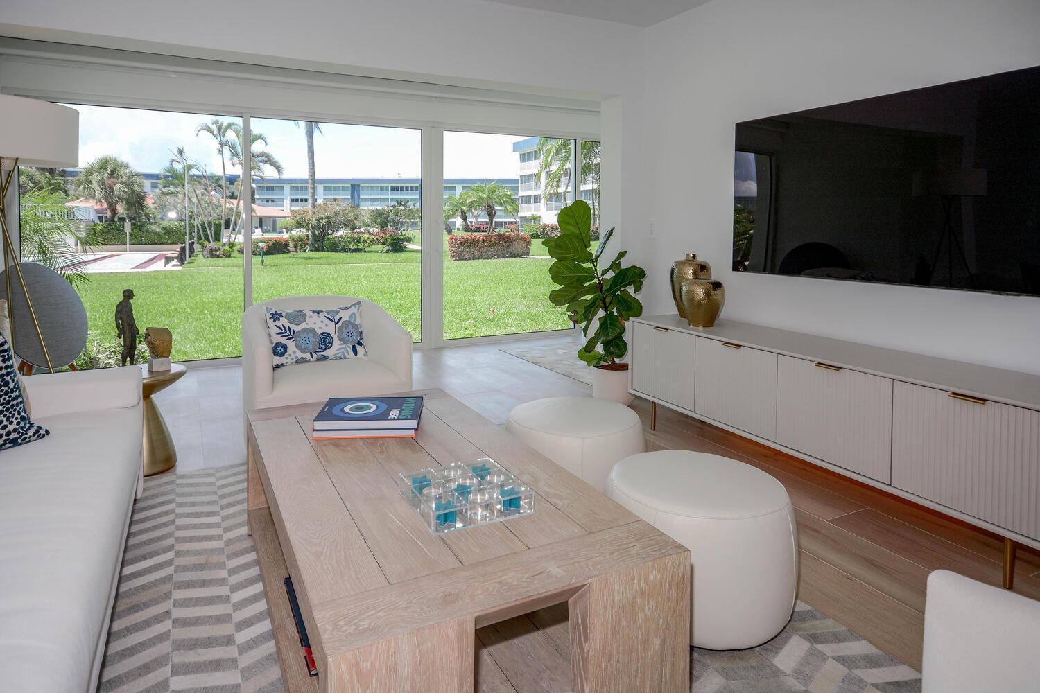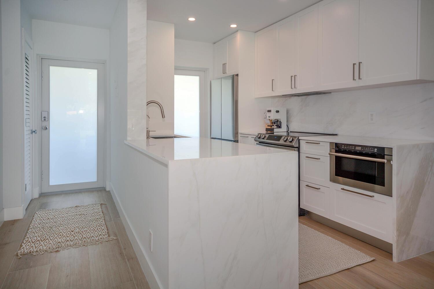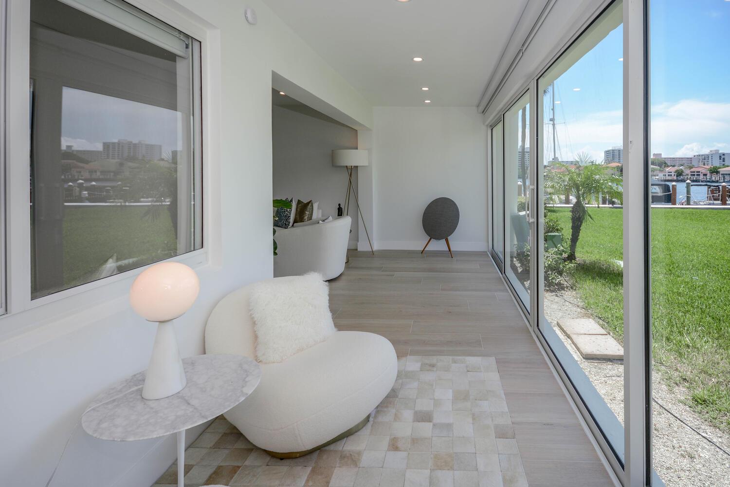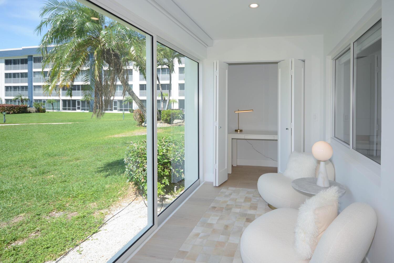 This luxurious 2-bed, 2-bath, fully renovated 55+ condo in Delray Beach offers high-end finishes throughout. Features include smart LED lighting, brand new appliances, marble kitchen & baths, impact windows and doors throughout, Italian tile floors, real wood cabinets, and a reverse osmosis water filter. Both bedrooms have blackout shades, custom closets and the living room has electric privacy shades. Additional include in-unit washer/dryer, smart locks, new A/C, and a small enclosed office/storage space. Enjoy water views, boat dockage available for only $3/ft per month. Condo fee covers cable, water, exterior maintenance, water views and more. Amenities include a gym, 2 pools, library, clubhouse, shuffleboard, BBQ area and game room. Available furnished or unfurnished. Must see!