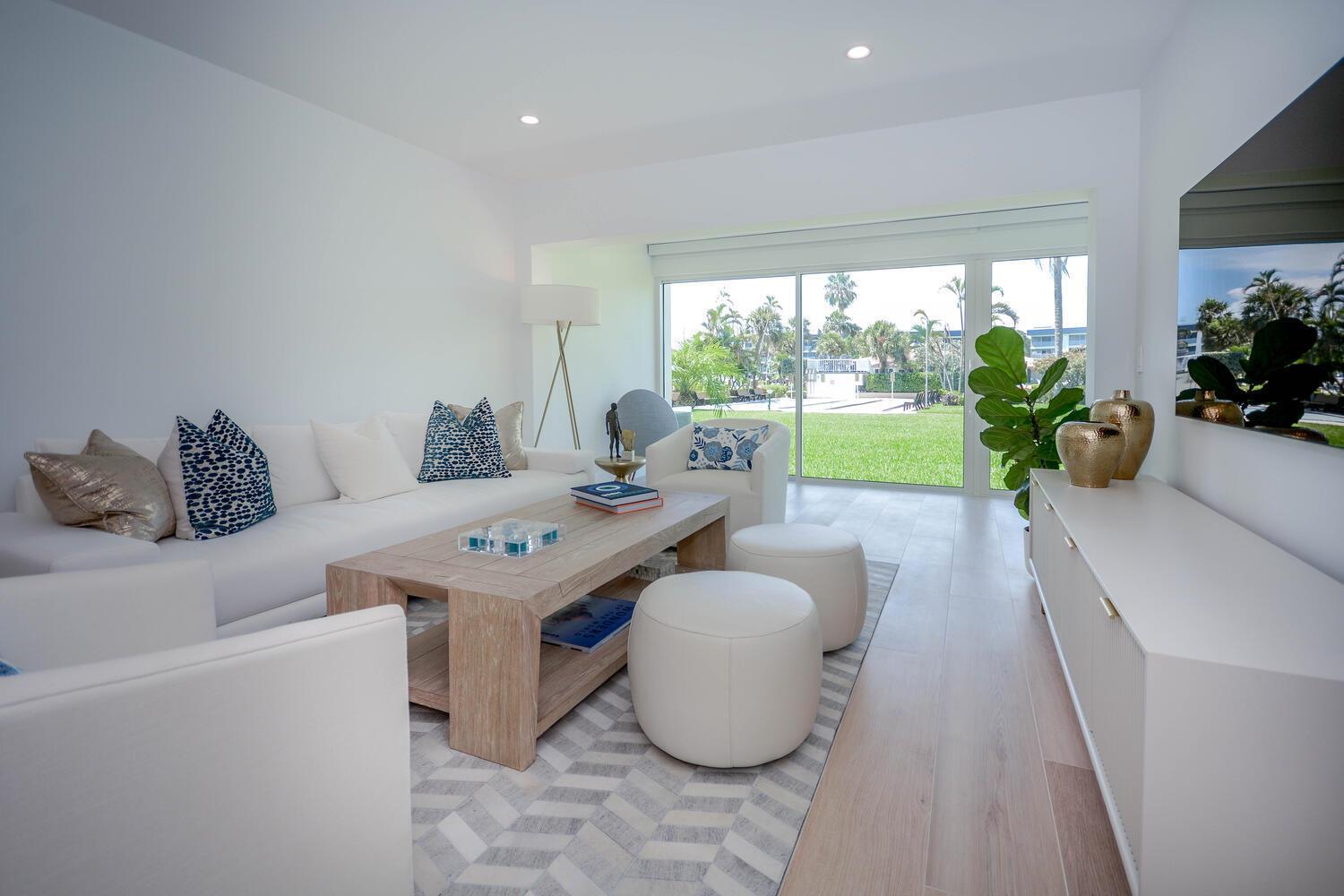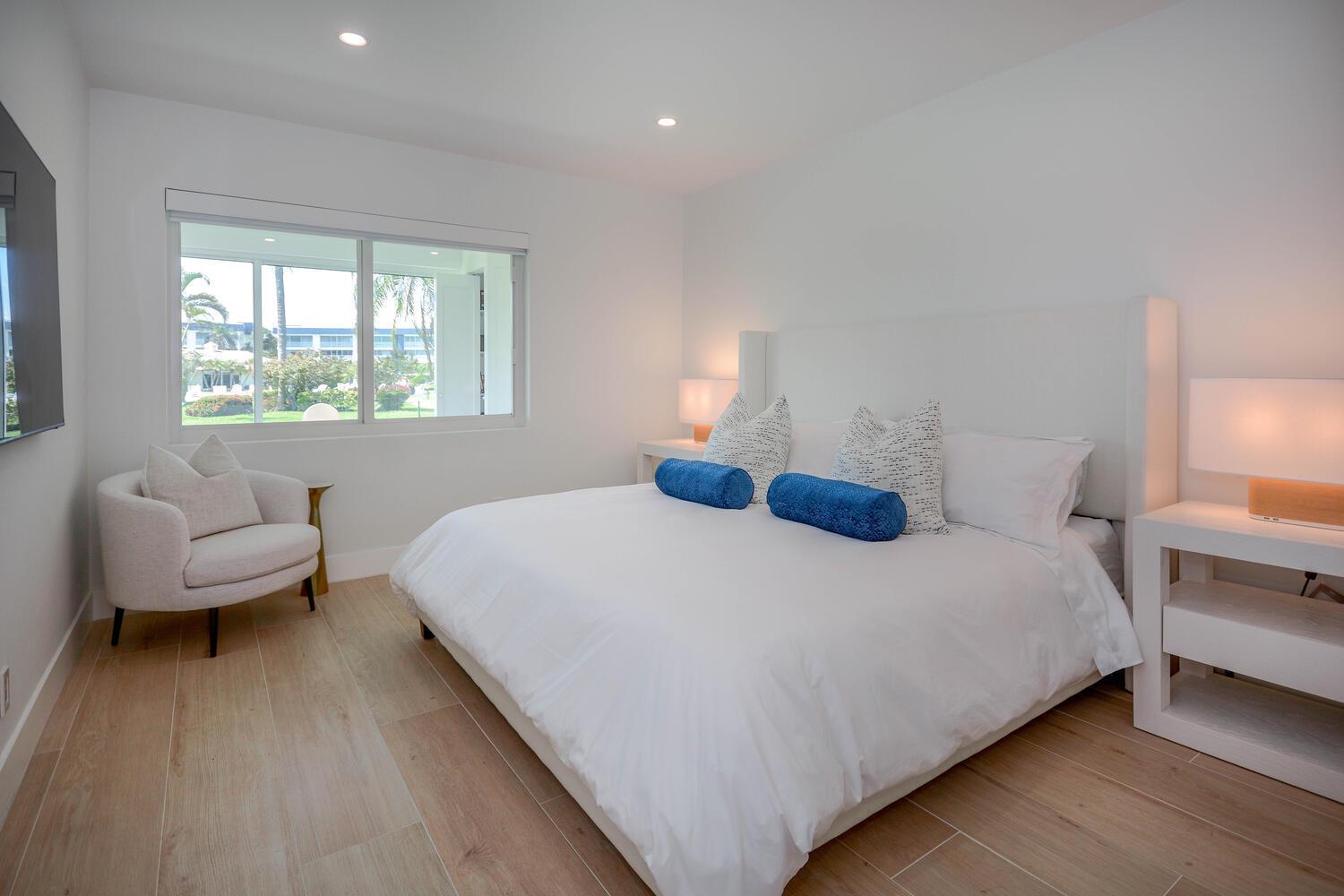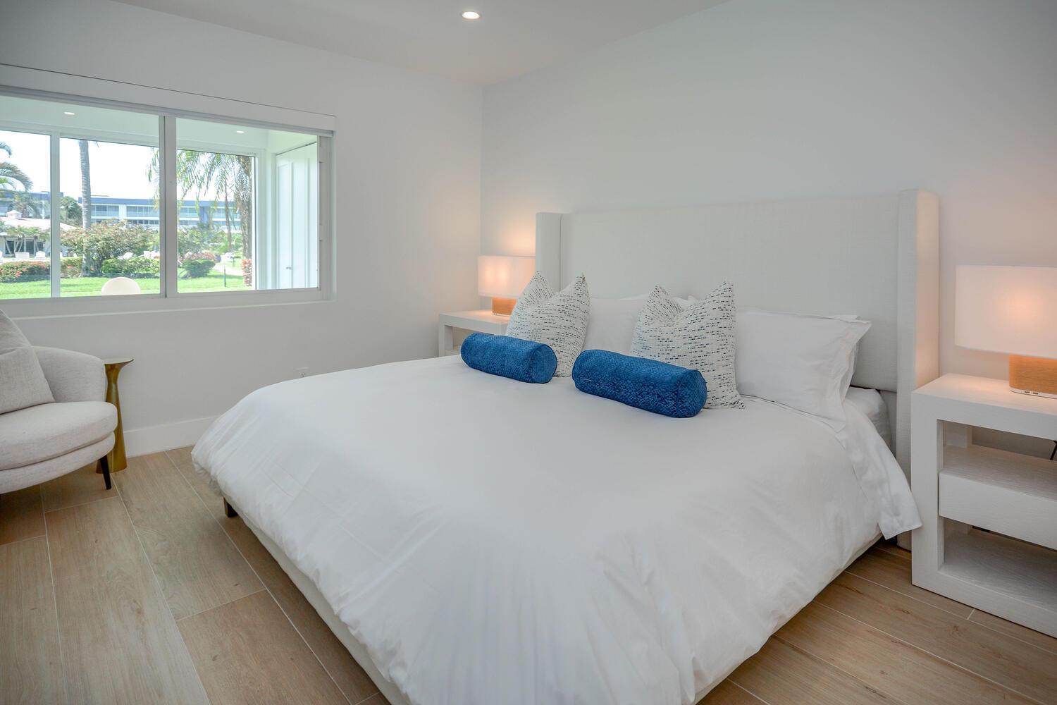 This luxurious 2-bed, 2-bath, fully renovated 55+ condo in Delray Beach offers high-end finishes throughout. Features include smart LED lighting, brand new appliances, marble kitchen & baths, impact windows and doors throughout, Italian tile floors, real wood cabinets, and a reverse osmosis water filter. Both bedrooms have blackout shades, custom closets and the living room has electric privacy shades. Additional include in-unit washer/dryer, smart locks, new A/C, and a small enclosed office/storage space. Enjoy water views, boat dockage available for only $3/ft per month. Condo fee covers cable, water, exterior maintenance, water views and more. Amenities include a gym, 2 pools, library, clubhouse, shuffleboard, BBQ area and game room. Available furnished or unfurnished. Must see!
