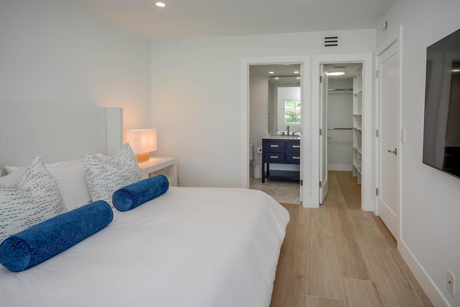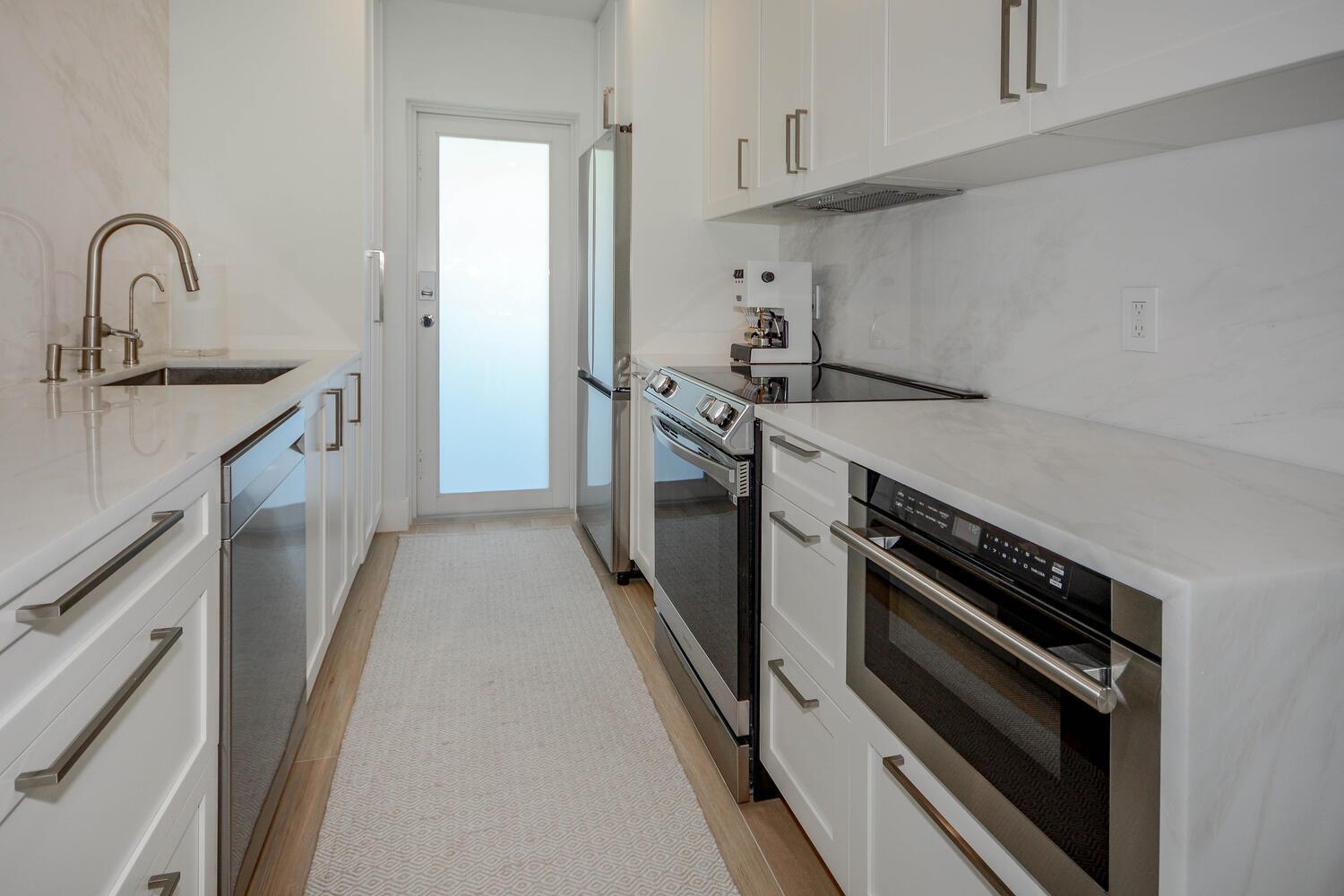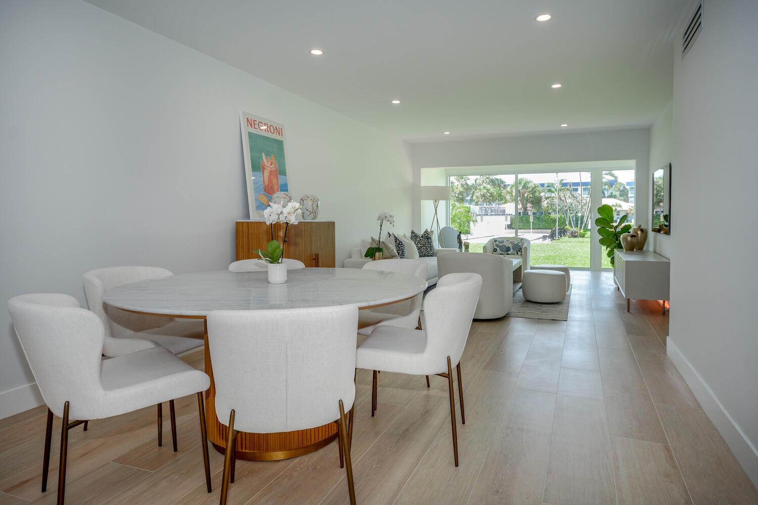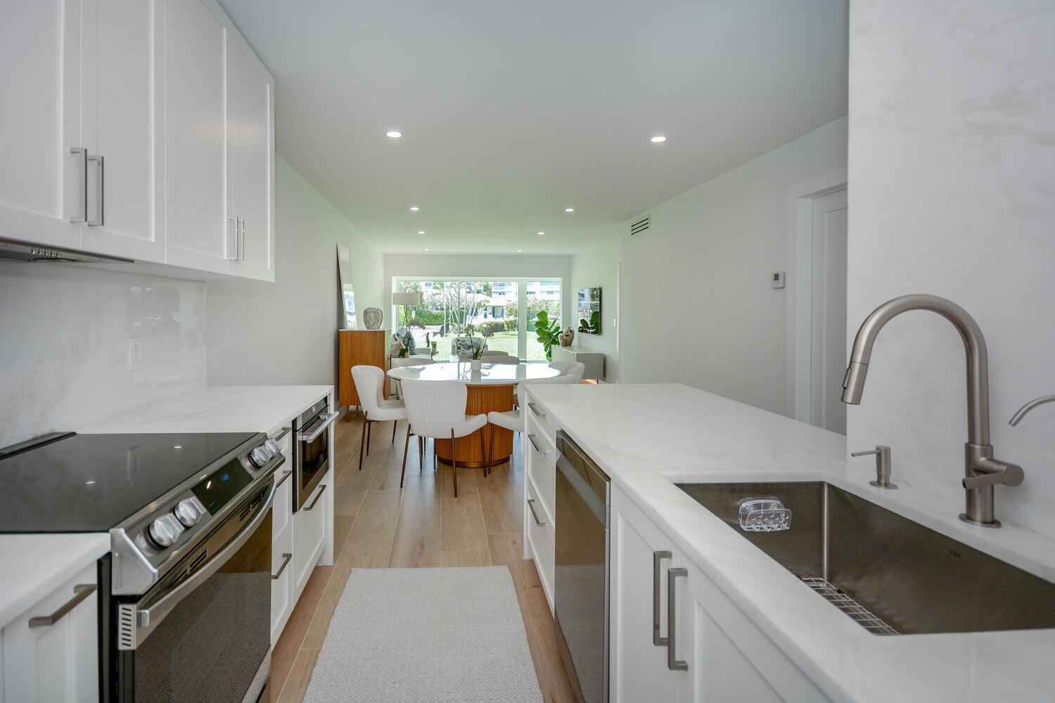 This luxurious 2-bed, 2-bath, fully renovated 55+ condo in Delray Beach offers high-end finishes throughout. Features include smart LED lighting, brand new appliances, marble kitchen & baths, impact windows and doors throughout, Italian tile floors, real wood cabinets, and a reverse osmosis water filter. Both bedrooms have blackout shades, custom closets and the living room has electric privacy shades. Additional include in-unit washer/dryer, smart locks, new A/C, and a small enclosed office/storage space. Enjoy water views, boat dockage available for only $3/ft per month. Condo fee covers cable, water, exterior maintenance, water views and more. Amenities include a gym, 2 pools, library, clubhouse, shuffleboard, BBQ area and game room. Available furnished or unfurnished. Must see!