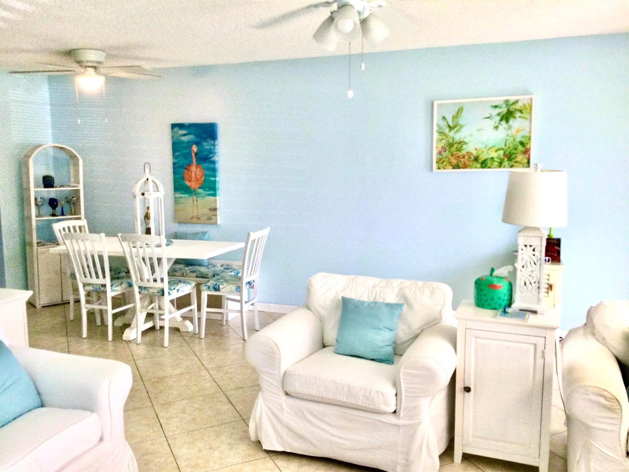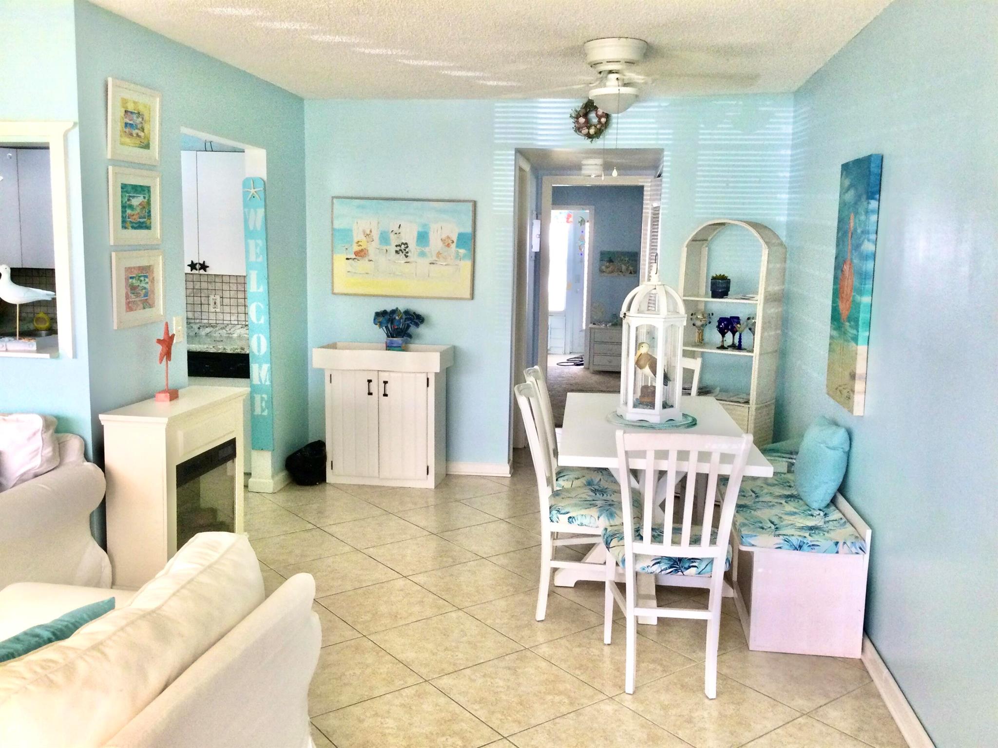 This bright & charming renovated coastal styled 1 bedroom 1 1/2 bath ground floor condo is ready for a new owner to make it their new home. Sheffield E is a well maintained building that has a lovely patio for the residents to enjoy. The Kitchen has been updated with white cabinets & appliances. Both bathrooms have been renovated. The full bath is also located in the Master bedroom & the half bath is located in the hall across from the pantry/linen closet. The Florida room is located off of the Master bedroom and has a additional storage area, door that leads to a back paver patio to relax & enjoy. Century Village West Palm Beach is an active 55+ Gated Community which is located close to Shopping, Restaurants, Airport, Golf, Boating, Tennis, Turnpike Hwy, Beaches, Fishing & so much more