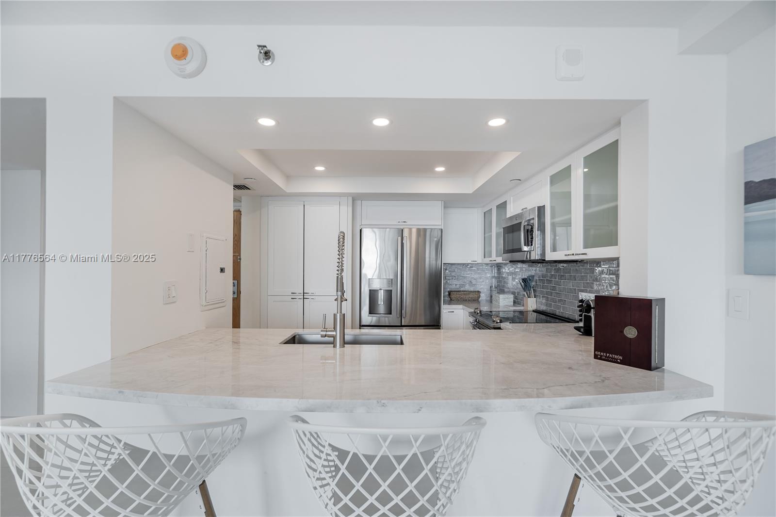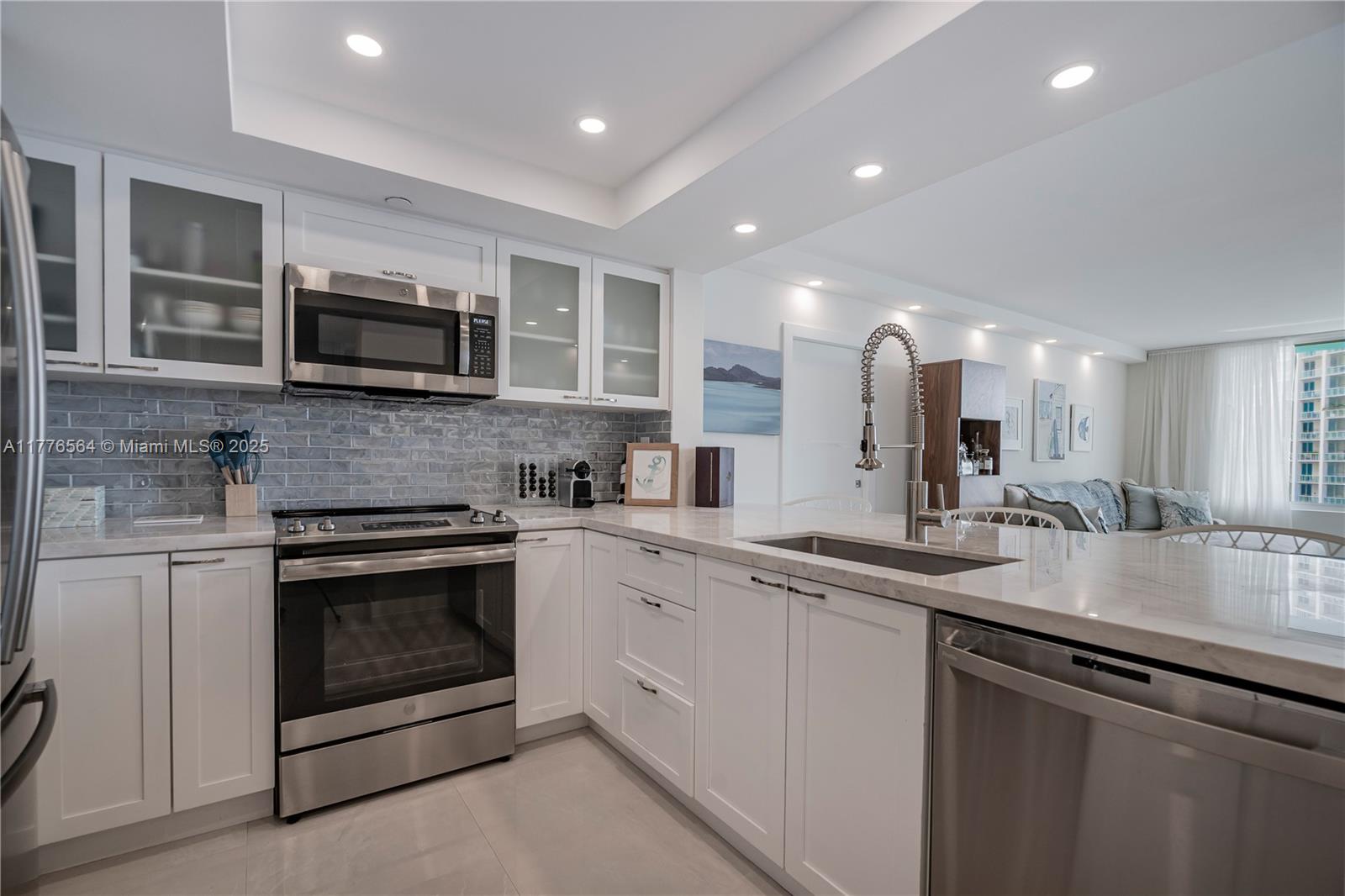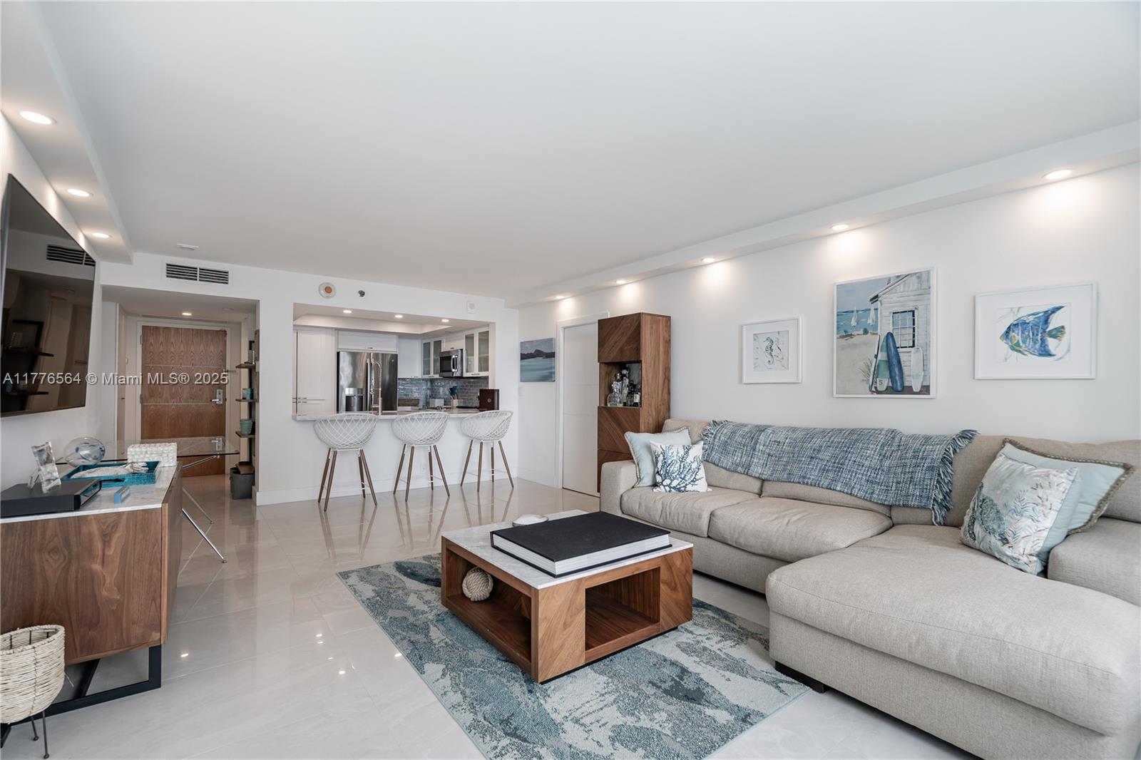 Beautiful and renovated 2beds/2bath with amazing views of the ocean and city. Located in South of Fifth neighborhood, 1,169/sqft under a/c area + open balcony. All new impact windows/doors. Features include light 24x42 Porcelain tiles, renovated kitchen with quartz counters, new S.Steel appliances, washer & dryer inside kitchen cabinets, designer doors, new bathrooms, split floor plan, ample custom-made closets throughout + pantry , large balcony with access from living and bedroom. Unit comes with 1 parking space. Full-service building with security, valet and resort style amenities including fitness center, business center, 2 pools. Walkability to the best restaurants, shops, entertainment, parks, pier, boardwalk and marina...Broker/Agents (go-to broker's remarks).