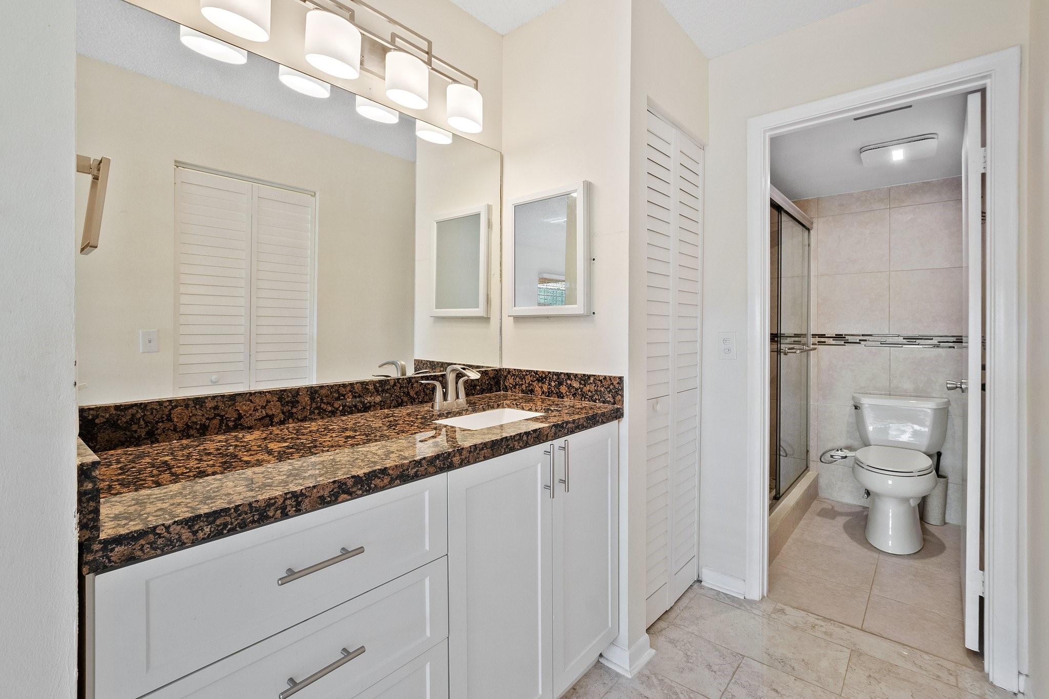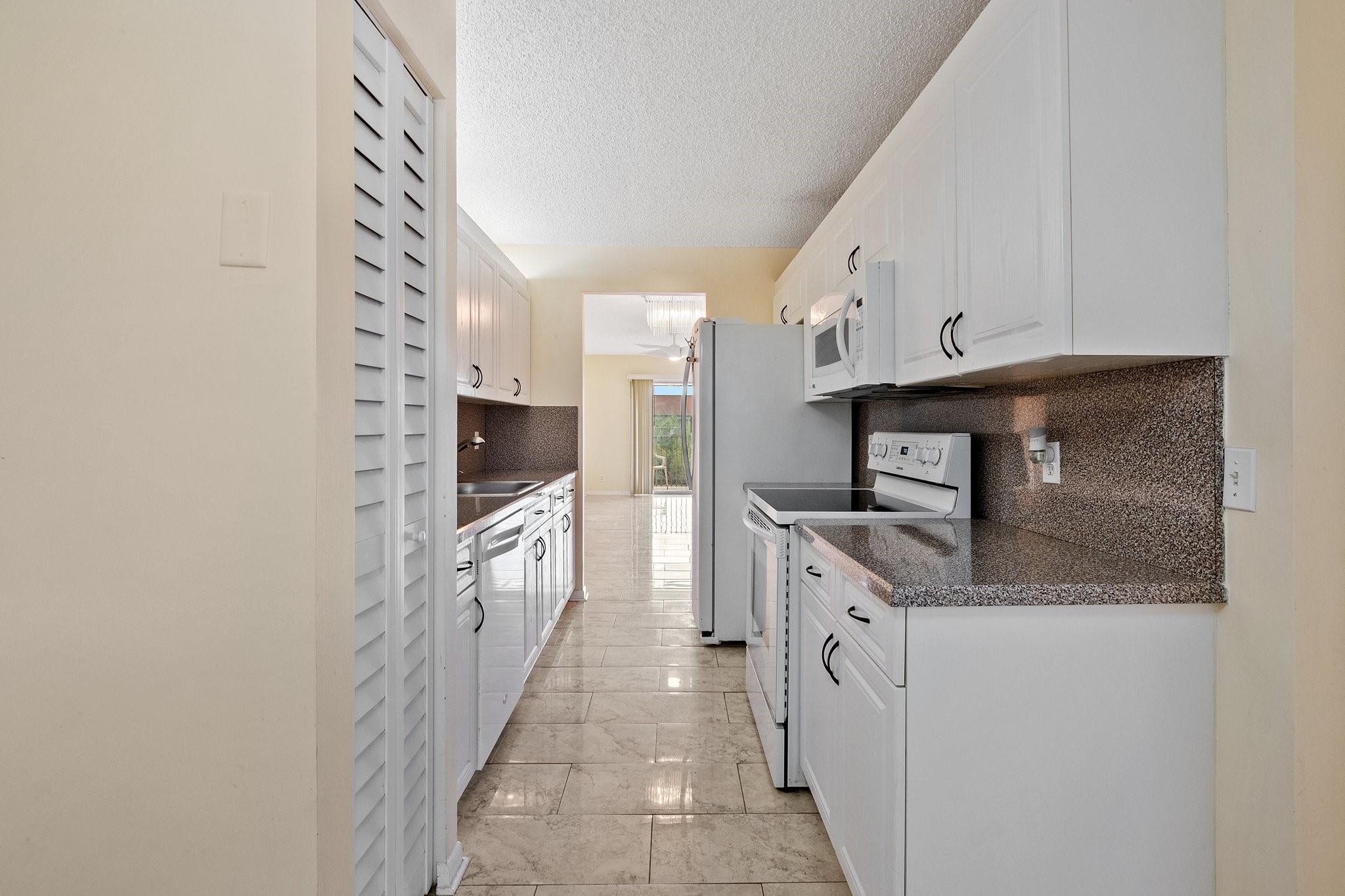 INVESTOR FRIENDLY! Remodeled 2 bedroom 2 bath apartment with washer/dryer in unit. Updated floors and bathrooms. Owners' bedroom has large built out walk-in closet and bonus a/c unit in bedroom. Tankless water heater keeps your electric bill low. Building exterior recently painted and roof replaced last year, NO UPCOMING ASSESMENTS! Century Village is a resort style amenities community for seniors that includes resort style clubhouse, indoor and outdoor pools, theater, fitness gym, tennis courts and more. Your monthly dues incl. water, cable, internet, and access to all amenities. Association is a 55+ community & requires minimum 650 credit score.