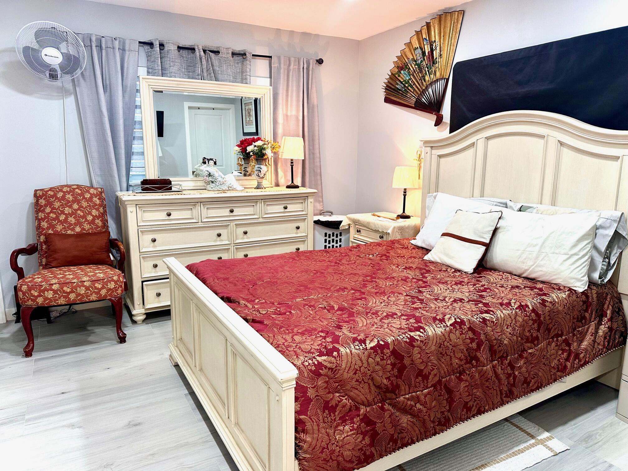 This stunning unit boasts an updated kitchen complete with stainless steel appliances. Every detail has been thoughtfully updated. Both bathrooms showcase modern ceiling-to-floor tile finishes. Enjoy energy-efficient LED recessed lighting throughout in the kitchen and living room to set the perfect mood. Additional upgrades include a 4 year old A/C unit and water heater, stylish Zebra blind window treatments. Impact-resistant windows have been installed in the kitchen, bedroom, and both bathrooms for added peace of mind. Step outside to a beautifully updated patio area with newly installed pavers. This immaculate unit is a must-see and won't be on the market for long!