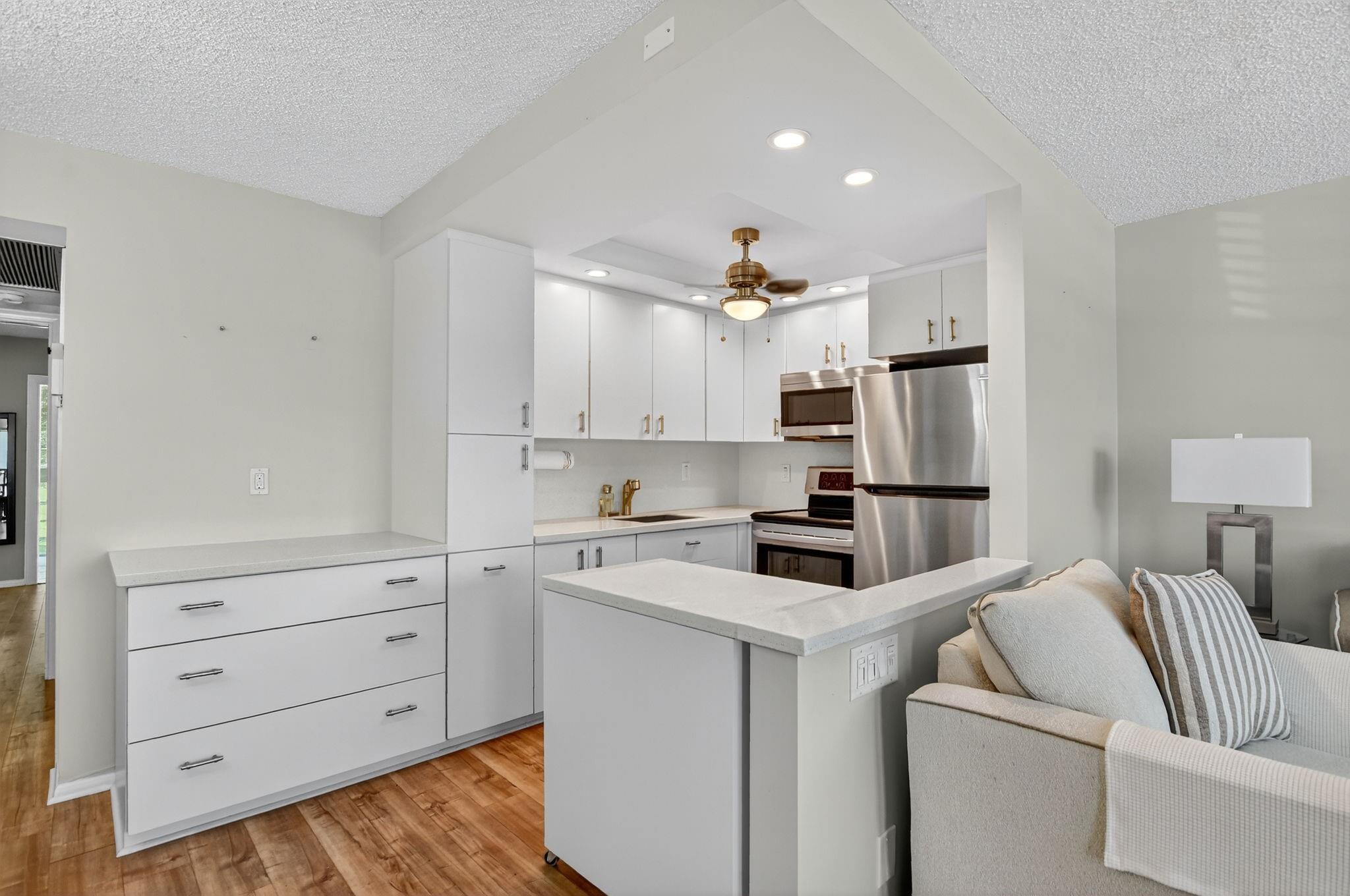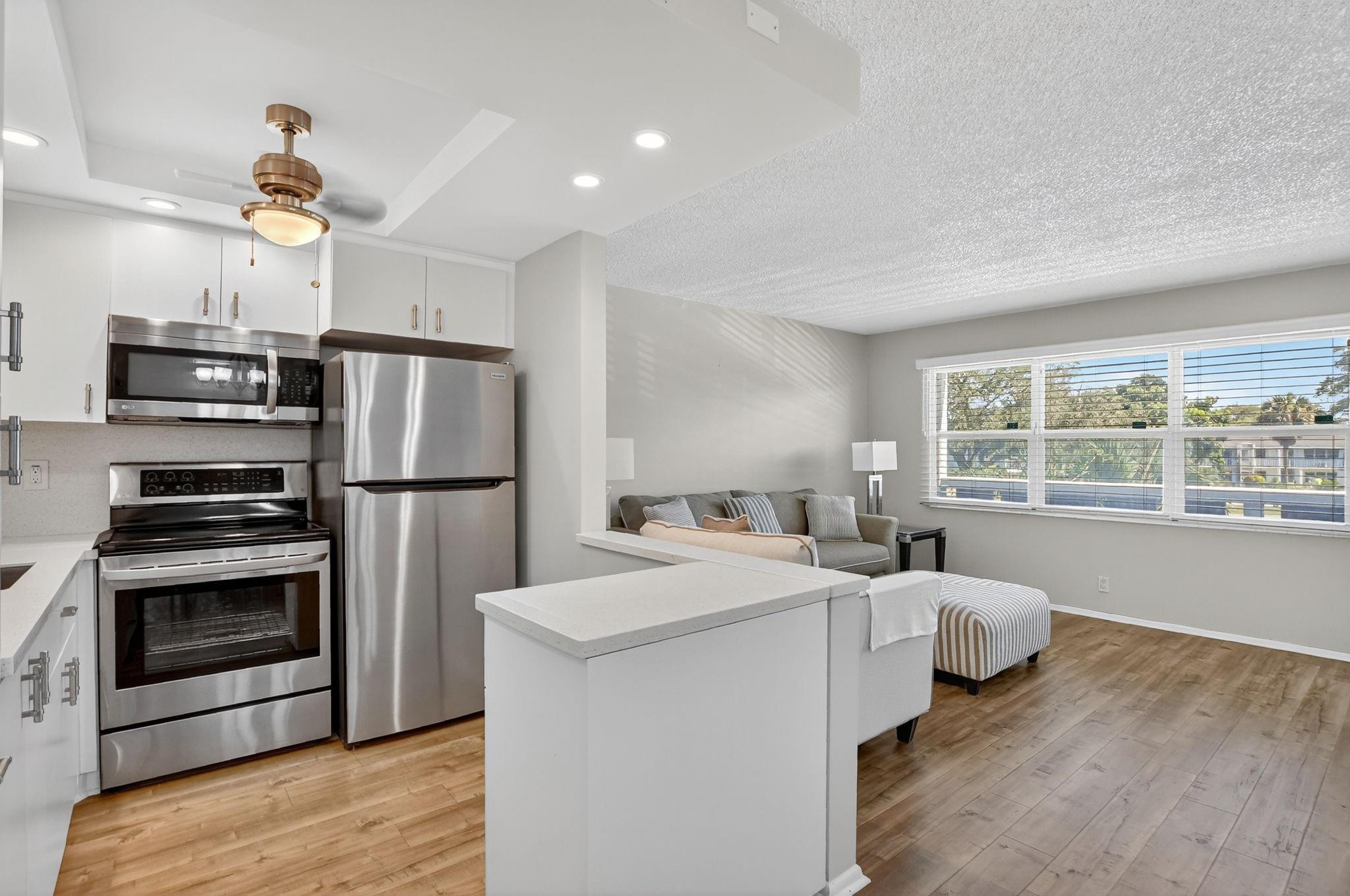 Beautiful,Charming. Completely Renovated One Bedroom,Bath &Half Bath Condo. The Open floor plan Blends Seamlessly with its Magnificent Color Scheme. You'll Love the Custom Kitchen Cabinetry and Stainless Steel Appliances and Beautifully Designed Full Bathroom in this Condo. Wood plank flooring runs throughout the Living area through to the Bedroom. The Sunroom with its Magnificent Custom Wall of Hurricane Windows is a breathtaking experience, Meticulously Adorned with Custom Sun Draw Shades and Custom Drapes. Enjoy an Everyday at the Berkshire pool Located Right behind this Condo. Condo is located only foot steps from the Clubhouse and all activities. CVE is an Active 55+Community offering,Free Movies,Free Buses, Pools,Tennis, Shuffle Board& other Activities. Condo is Partially Furnished.