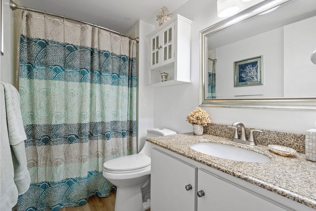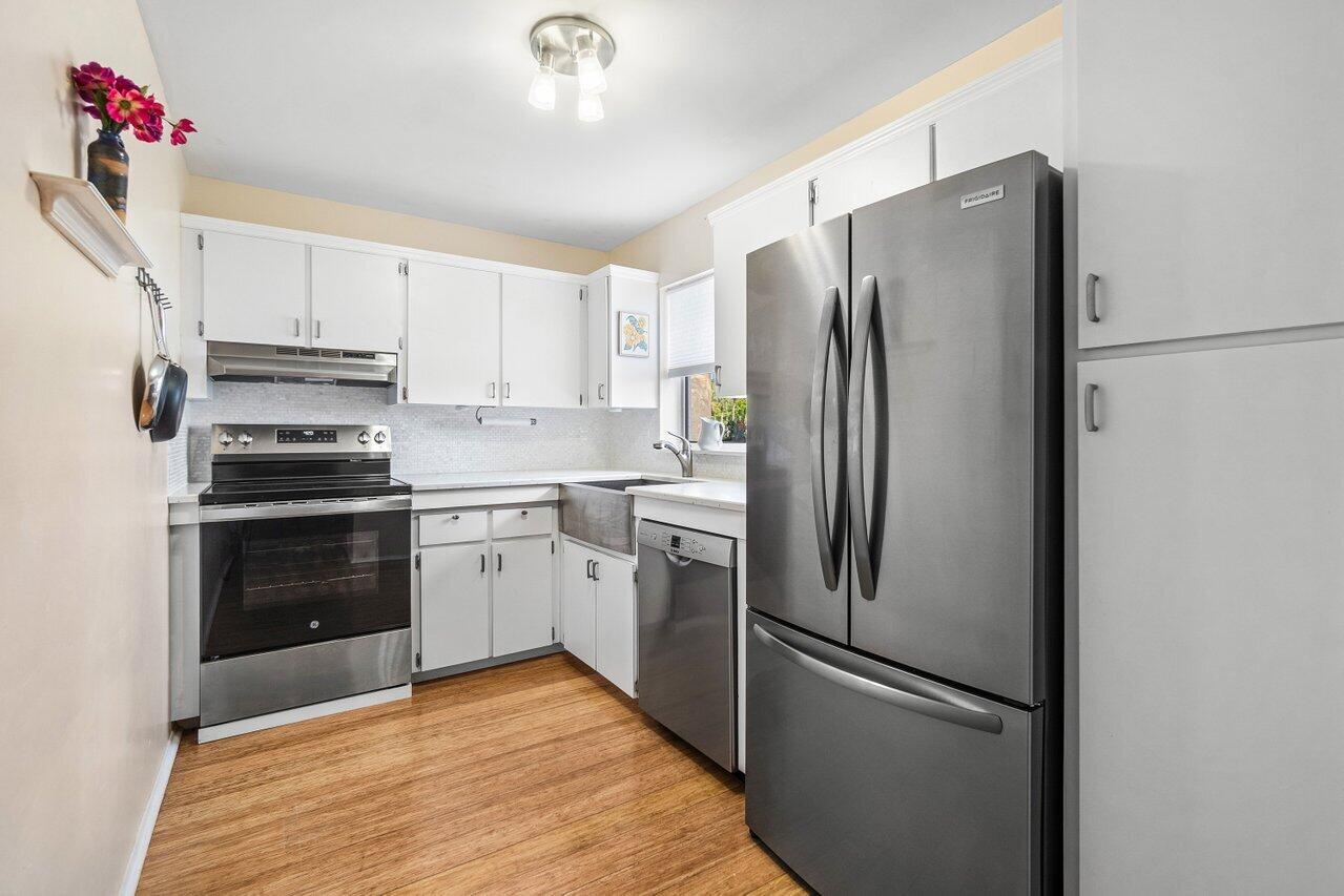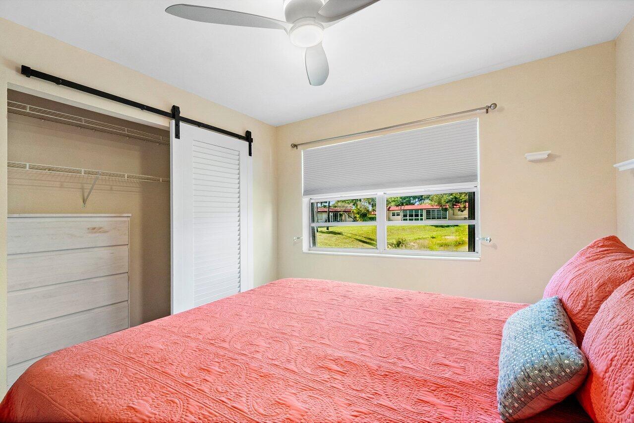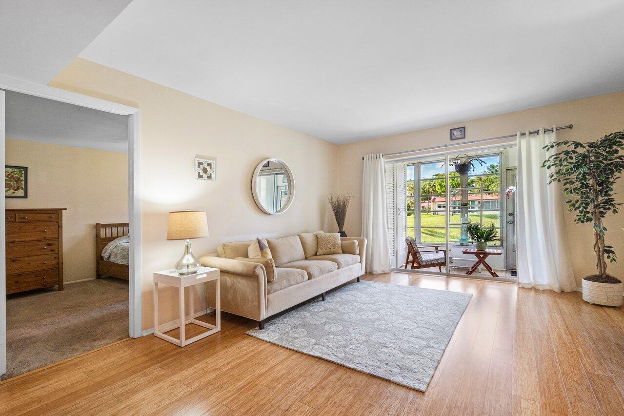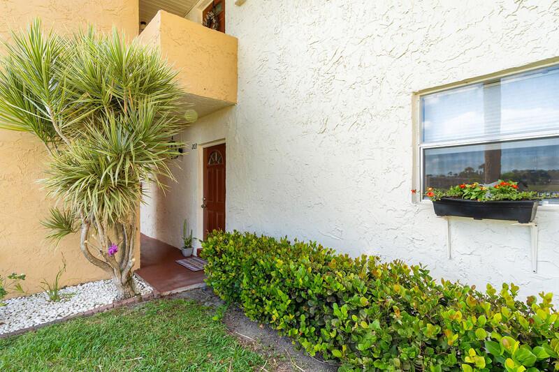 Unique opportunity to own a 1st floor 2/2 with in-unit laundry on one of the most desirable streets in Golden Lakes! Close to the rear gate and in a low-density area with ample parking. Feel the ease of less neighbors and wide-open green space. Enjoy glistening lake views on your private lanai. Owners have lovingly renovated. Kitchen has white cabinetry, Quartz counters, glass backsplash, farmhouse apron sink, 2024 appliances & pantry. Washer/dryer in unit! Split bedroom plan provides complete privacy. Primary bedroom is a generous size - room for a King bed - and has a huge walk-in closet. Primary bathroom has stand-up shower w/ glass sliding door, tile accent, granite vanity tops & newer fixtures.