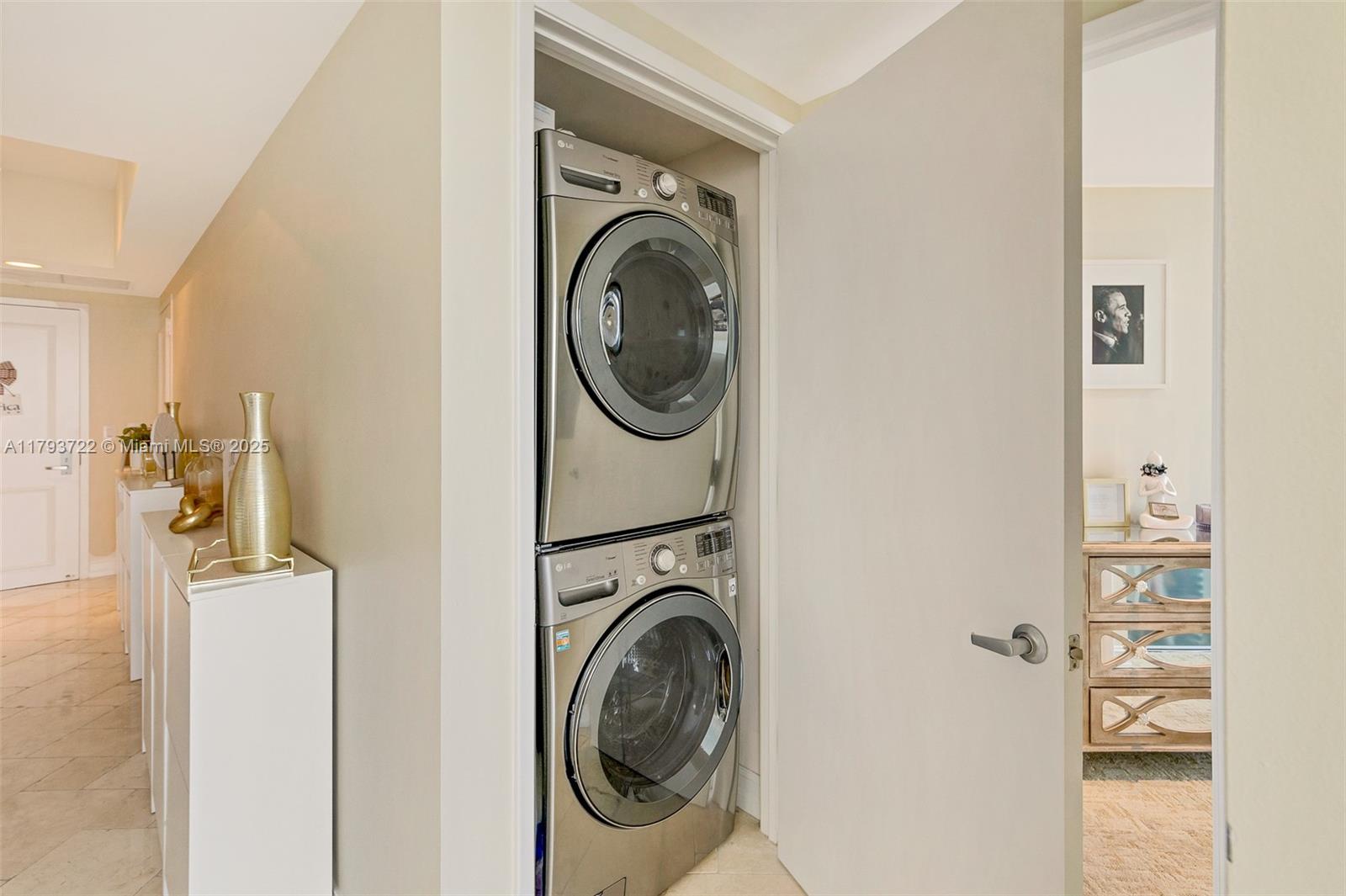 Welcome to the Las Olas River House – Where Location Meets Modern Luxury. Perched high on the 24th floor, this stunning 2-bedroom, 2-bathroom residence offers breathtaking views of the New River and Downtown Fort Lauderdale. Ideally located just off the elevator lobby, this unit provides convenience, comfort, and style the moment you arrive. Step inside to discover elegant marble tile flooring that flows throughout the main living, dining, and kitchen areas. To your right, the open-concept kitchen is designed to impress, featuring granite countertops, upgraded cabinetry, and stainless steel appliances – perfect for entertaining or enjoying a quiet night in. Floor-to-ceiling windows flood the space with natural light and frame the expansive skyline and river views,