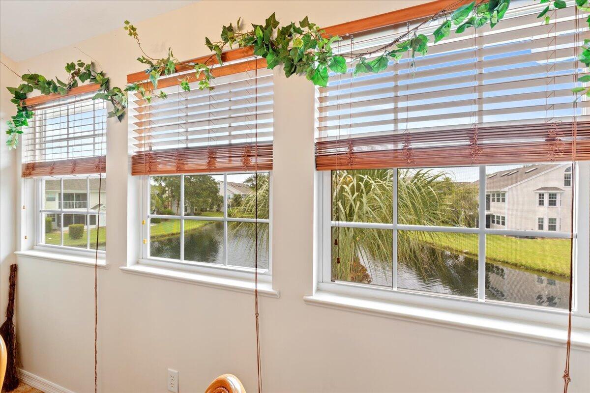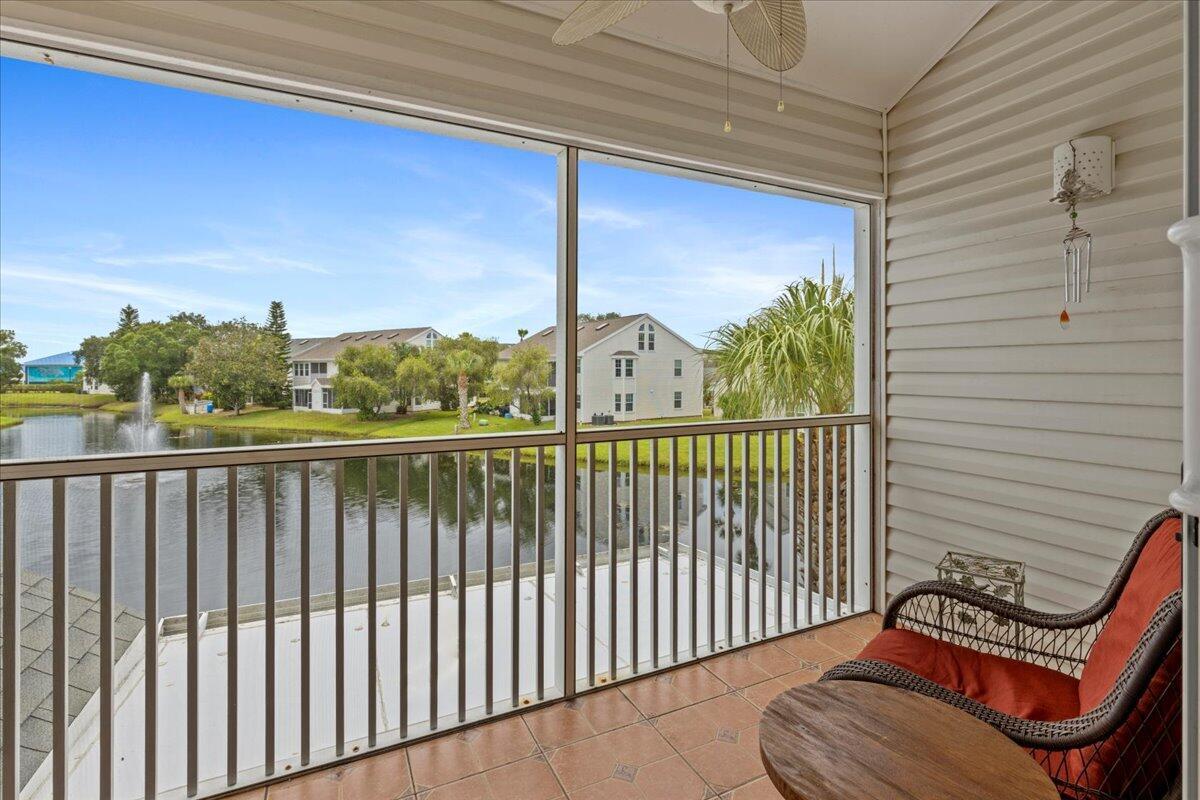 Awesome lake views from this 3BR/3BA condo with loft! Built in 2009. Beautiful oak kitchen with granite, soft-close drawers & glass front upper cabinets! 25' x 16' multi-purpose loft with full bath! Walk-in closets! Impact windows! New AC 2023. Roof 2018. Screened porch with terracotta tile floor overlooking lake & fountain! New blinds throughout 2025! Olympic-sized, heated community pool, plus pickle ball/ tennis courts, racquetball court. All conveniently located near I-95, shopping & restaurants, but only 8 miles to the beach! (Note:tax sq ft is incorrect)