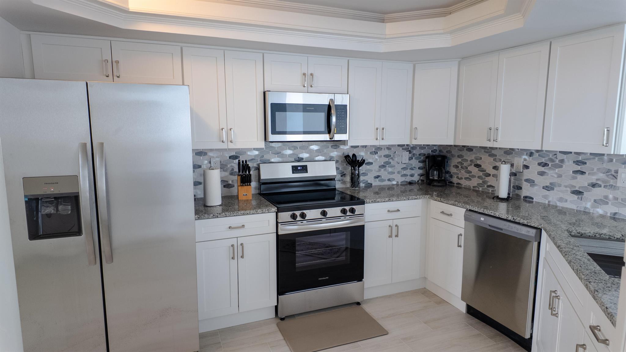 Welcome to your dream condo nestled in the charming atmosphere of Jensen Beach!. This freshly painted listed two bedroom, two bathroom condominium offers the perfect blend of comfort and convenience. Imagine waking up each morning and cooling off with a quick dip in the tranquil ocean waters, easily accessible with just a short drive. Amazing Ocean View!! Brand New balcony hurricane shutters, new appliances, new kitchen cabinets.All measurements are approximately