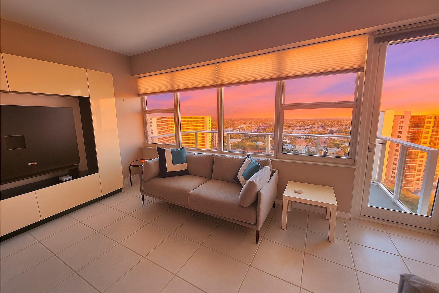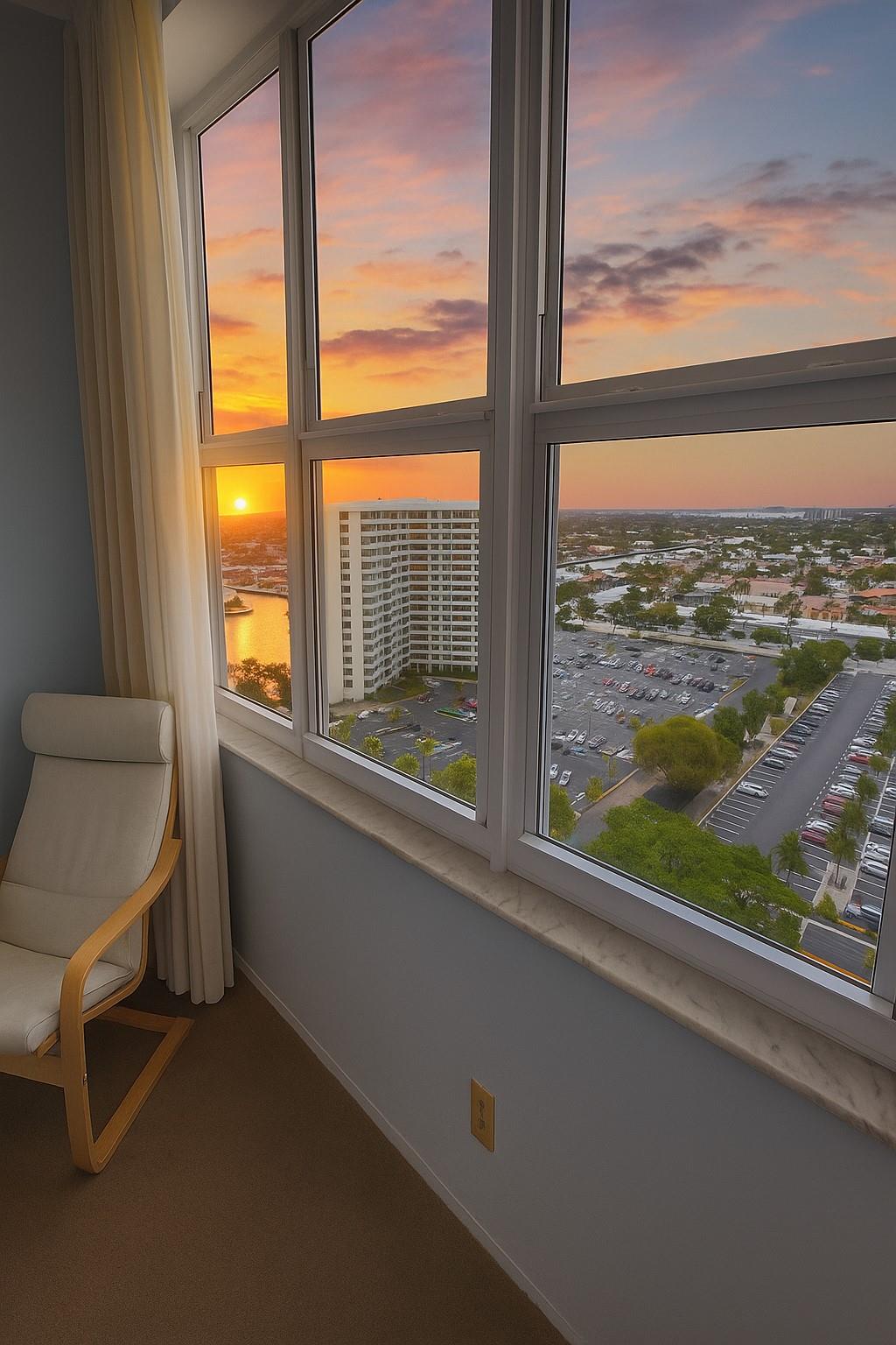 Experience luxury living and breathtaking views of the Intracoastal city skyline and patial ocean view. This meticulously maintained building has undergone extensive renovations and upgrades, including: New hurricane impact windows throughout Newer roof installation for long term peace of mind Fire sprinkler and alarm systems installed throughout common areas, upgraded parking lot lighting for improved nighttime safety Contemporary glass balconies replacing old concrete for a sleek look, Fob entry system and security cameras installed Inside, you'll find a modern kitchen with stainless steel appliances, a pantry, and instant hot water. Enjoy resort-style amenities including a heated pool, fitness center, library, onsite management, and more. This home combines comfort and security