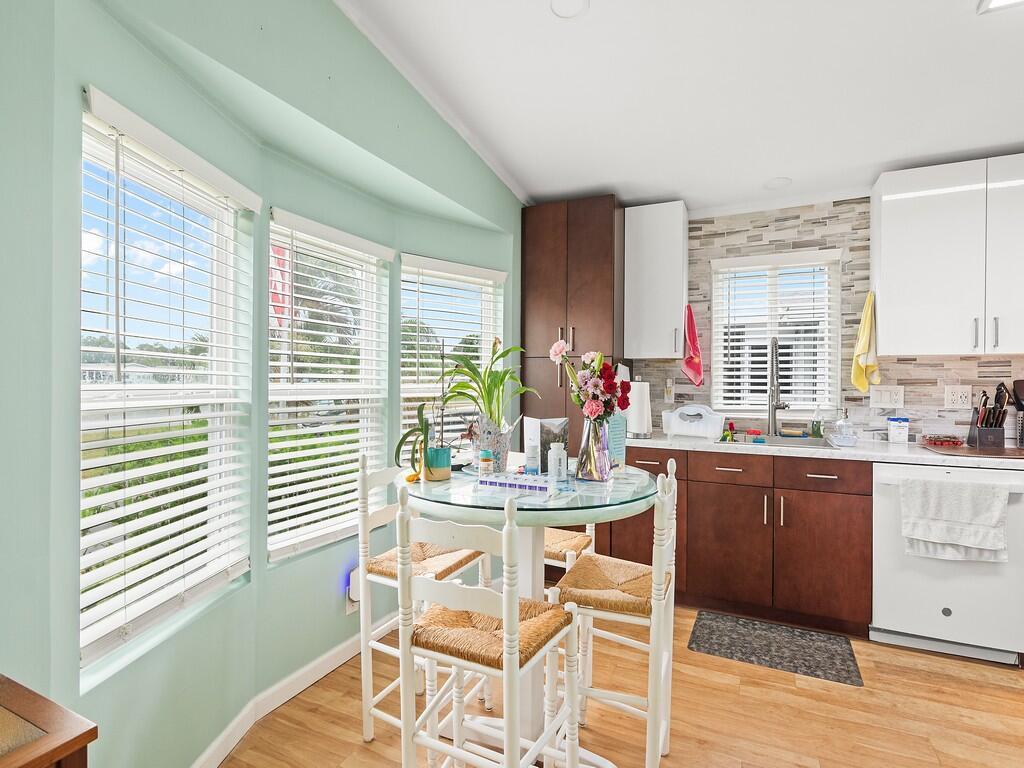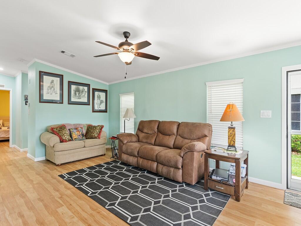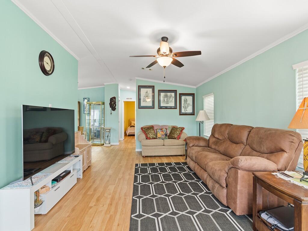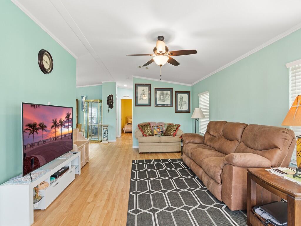 Beautiful 2/2 mobile home for sale in a 55+ community. This home features bright and open floor plan with updated flooring throughout. Modern kitchen with updated appliances. Newer washer and dryer. Metal roof. Generously sized bedrooms. This home has a large, screened patio with breathtaking lakefront view. A host of amenities. Low lot rent and much more!LAND LEASE HOME.