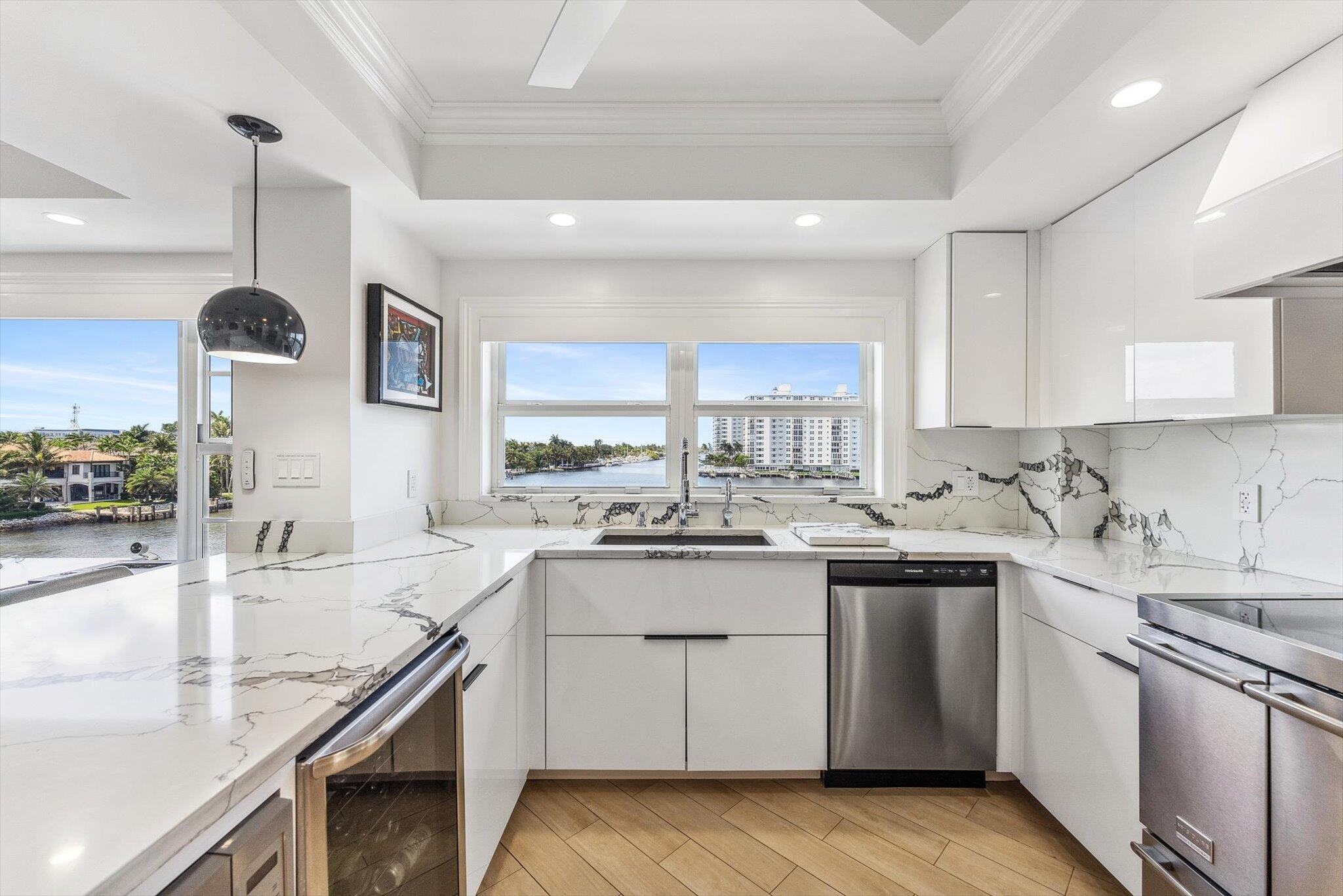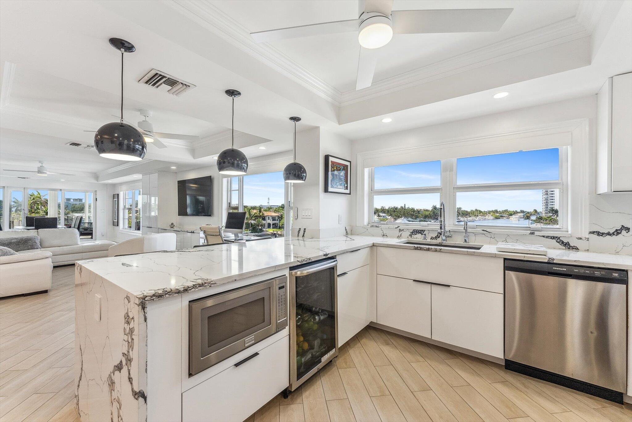 A rare opportunity to own a fully designer renovated 2BR/2BA luxury condo directly on the Intracoastal in East Delray Beach's sought-after Seagate area--just one block from the ocean and between Atlantic Ave and Linton Blvd. This sunlit corner unit offers stunning water views from every room, a sleek open layout, a gourmet kitchen with waterfall island, new appliances, full-impact windows, in-unit washer/dryer, and an oversized balcony to enjoy breathtaking sunsets. It features abundant custom contemporary cabinetry for plenty of storage, and 2 walk-in closets. Perched on a private peninsula, the building has completed its recertification with no assessments. Enjoy free dockage for boats up to 50', plus storage & bike space--an unbeatable lifestyle opportunity in a prime coastal location.