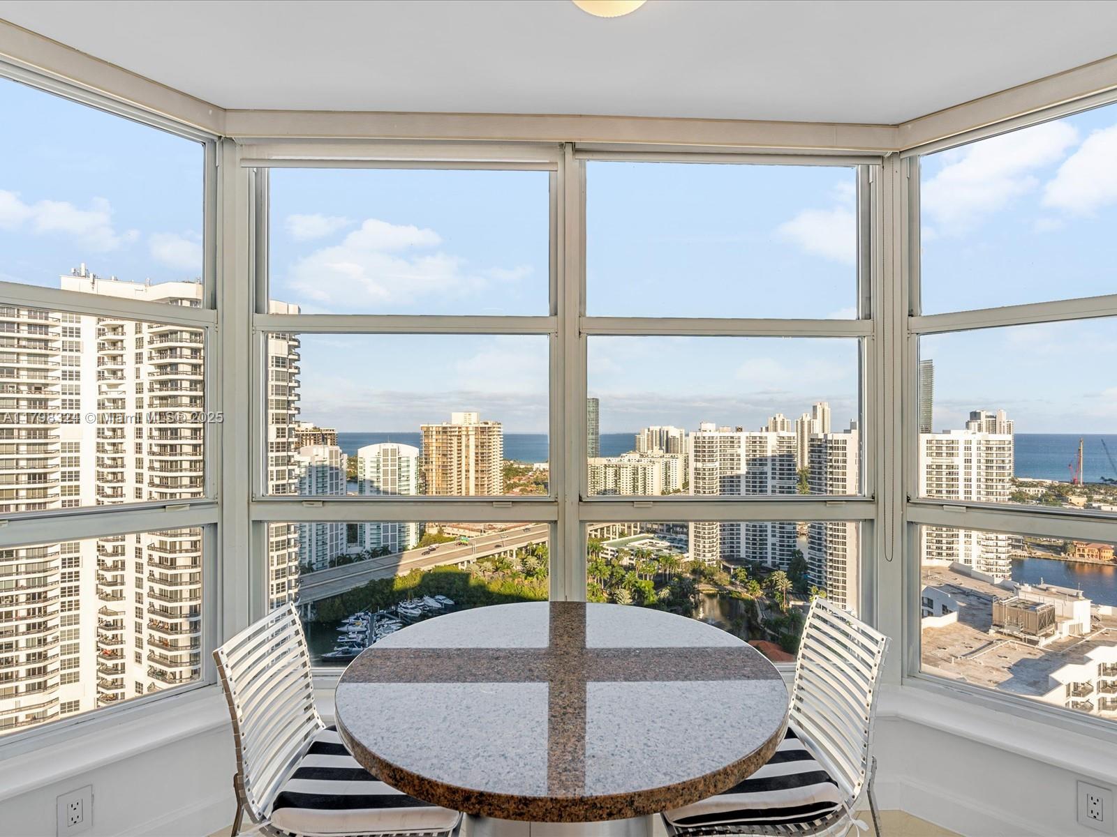 Welcome to Mystic Pointe 500, located in the vibrant city of Aventura, Florida. This distinguished corner-unit lower penthouse offers an expansive 1,447 square feet of living space, featuring two bedrooms and two bathrooms. Designed for both comfort and functionality, the residence boasts panoramic Intracoastal and ocean views, enhancing the open-concept living area with abundant natural light. The modern kitchen seamlessly integrates with the spacious living area, ideal for both relaxation and entertaining. Residents of Mystic Pointe 500 enjoy a suite of premium amenities, including a pool, spa/hot tub, and gym, ensuring a lifestyle of convenience and leisure. The property is equipped with central air conditioning and heating, tile flooring, and includes a private balcony for outdoor enjoyment. An assigned garage space provides secure parking, while the building offers covered access and elevator service for added convenience. Situated in a prime Aventura location, this property combines luxury with accessibility, making it an excellent choice for discerning buyers. Experience the unique blend of serene views and urban living at 3530 Mystic Pointe Dr, Apt. LPH10. This residence is a testament to the exceptional living standards available in Aventura.