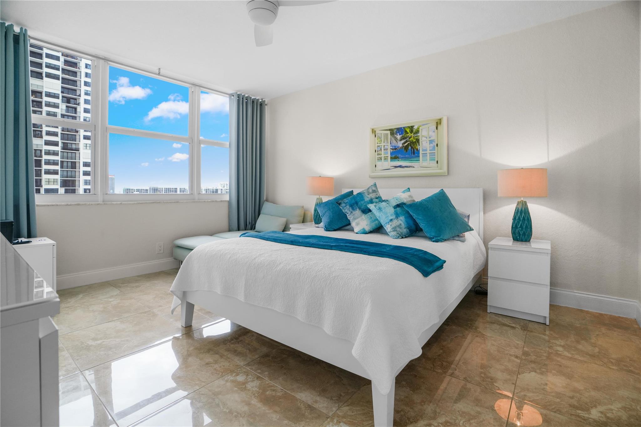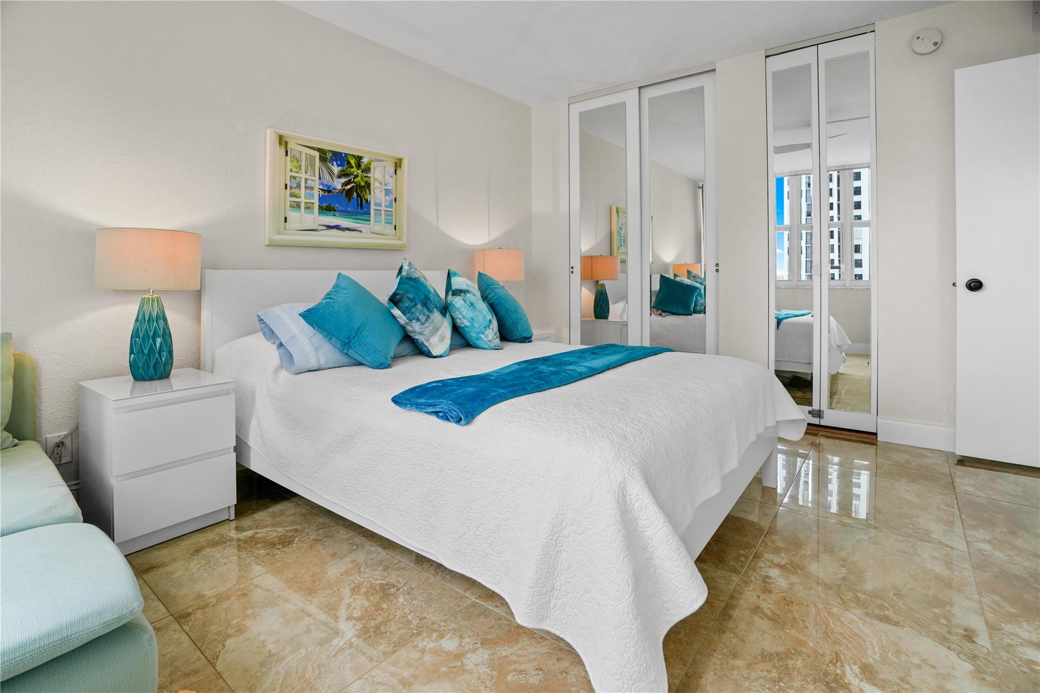 Beautiful and elegant 2 Bed, 2 Bath apartment, meticulously maintained with large wraparound balcony. Kitchen cabinets and bathroom vanities have been updated to complement luxurious granite countertops, with the floor being porcelain tile throughout. Updated with new hurricane impact windows and doors for improved safety and reduced noise from outside. Also comes with plentiful storage, with a spacious walk-in closet in the primary bedroom and 2 personal storage lockers just outside the unit on the same floor. Furniture negotiable. Complex is directly by the ocean. Amenities include: beach service, onsite restaurant, 2 heated pools, 2 fitness centers, a sauna, 24-7 security, valet, business center, billiard and ping-pong room, library, kids play-room and even a golf practice room.