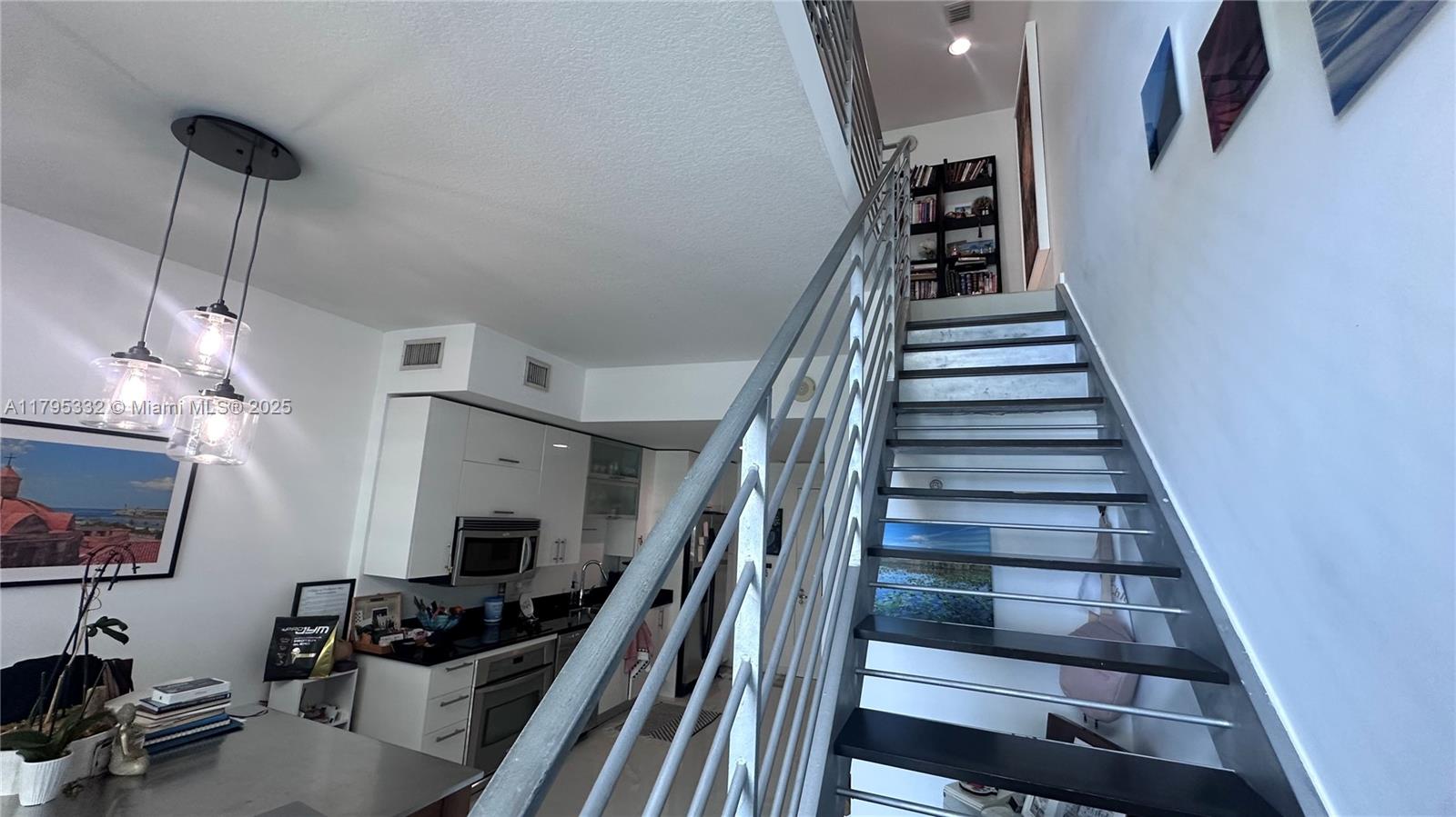 Best location in the heart of Brickell. Unique 2 story loft style 1 Bed/ 1.5 Bath facing East with expansive balcony and panoramic views of the Bay and Miami Skyline. 20 Ft. ceilings, double height windows making for a bright& light apartment. White porcelain tiles throughout, Italian cabinets, granite countertops, stainless steel appliances w/ a downstairs breakfast area & living room. Master Bedroom upstairs with full bath and large walk-in closet. Washer/dryer in unit. 1 garage space. Ideal for End User or Investor. Amenities: Pool, hot tub/Spa, sunset deck, business center, game room, café, 24 hr valet parking, management on site, lobby secured. Walking distance to all shops, restaurants, bars, & grocery stores. TENANT OCCUPIED UNTIL JUNE 1, 2025.
