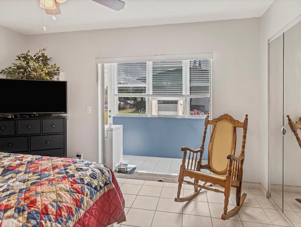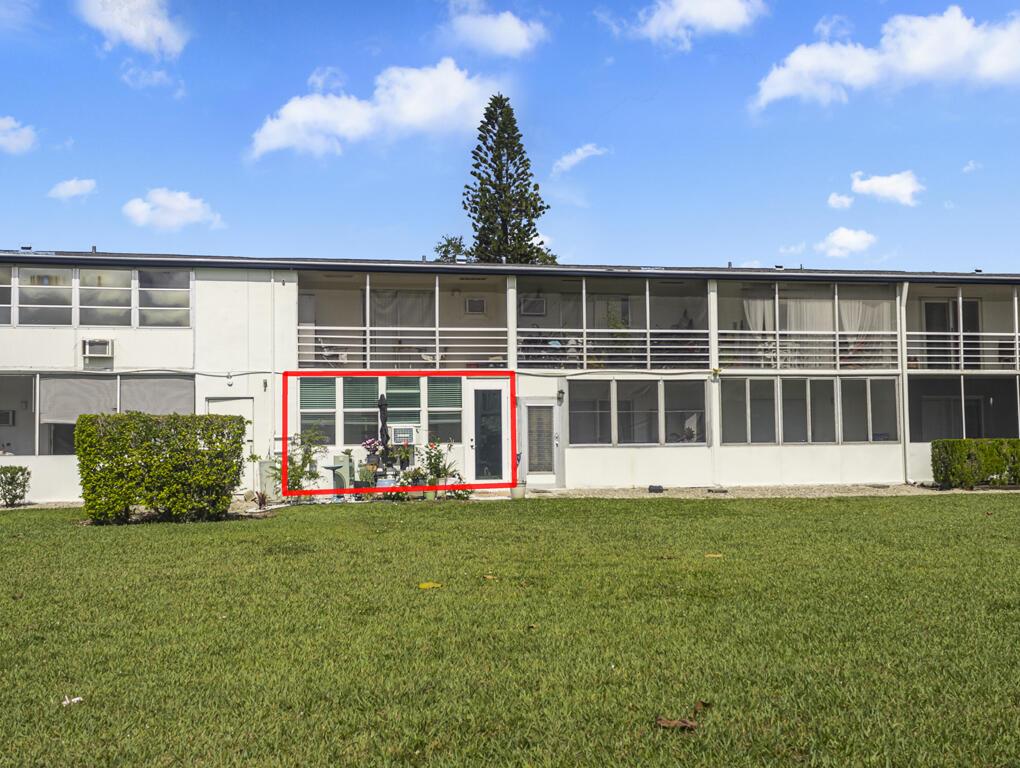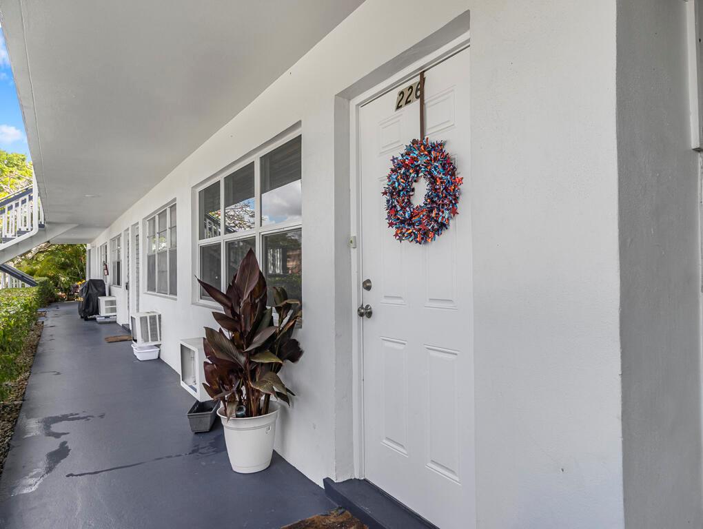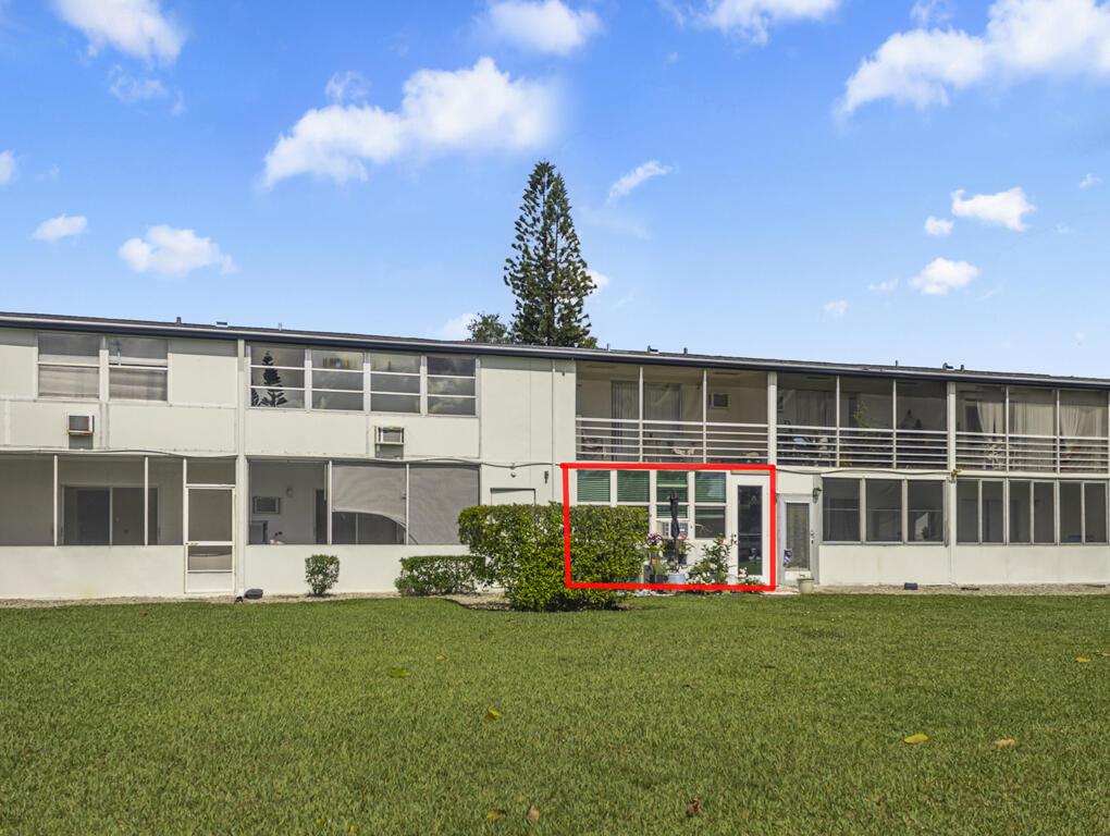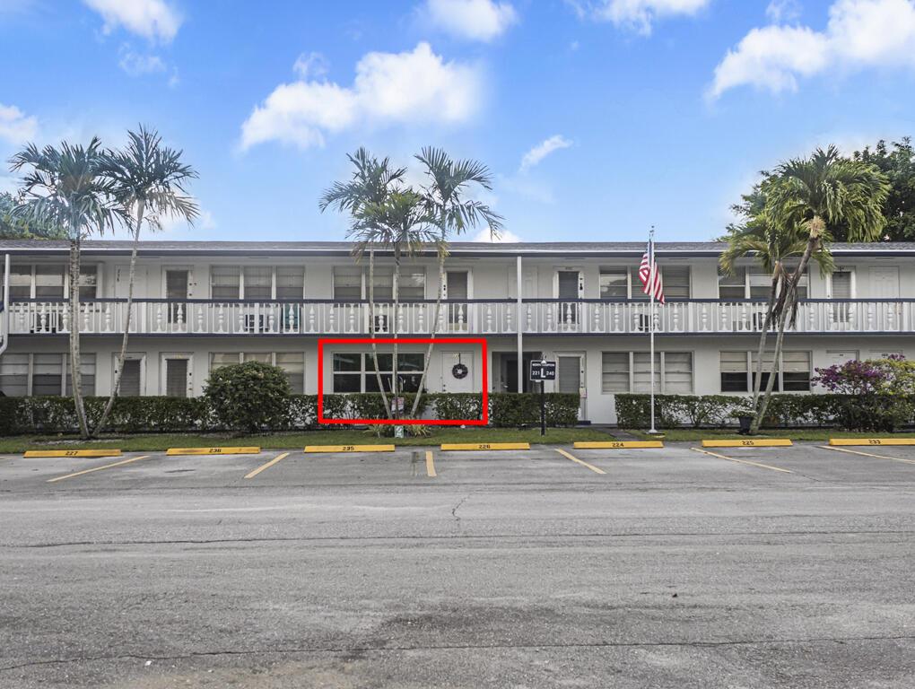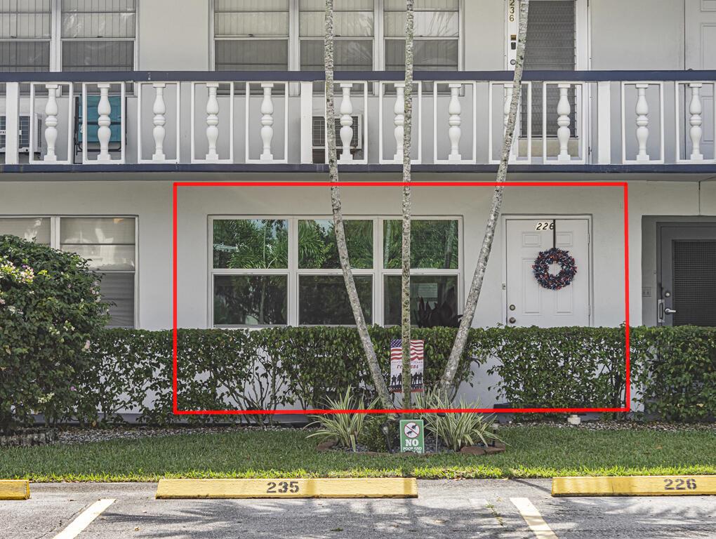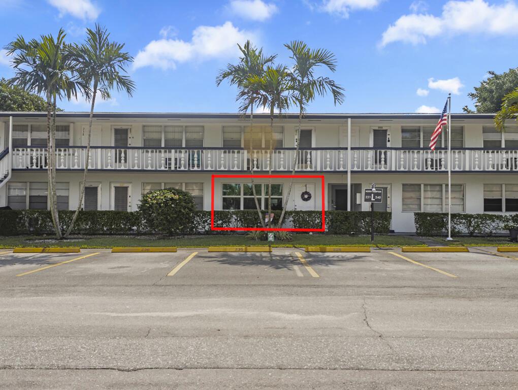 GET READY TO MOVE! PRICE IS FIRM! Check out this gorgeous, renovated 1-bedroom, 1-bath ground floor unit in an active 55+ community! Located just steps from the laundry and mailbox for added convenience. Worry-free living with brand-new front impact windows, plus an enclosed porch featuring impact windows and impact door--perfect for hurricane season. The updated kitchen showcases wood cabinets, granite countertops, and a granite backsplash. The bathroom is elegantly finished with floor-to-ceiling tile, a decorative Listello border, and safety grab bars. Tile flooring runs throughout the unit, and custom closet built-ins maximize storage. This is truly a one-of-a-kind must-see unit! All building work is complete--NO SPECIAL ASSESSMENTS.