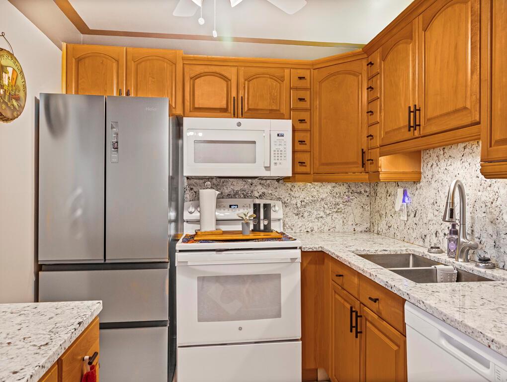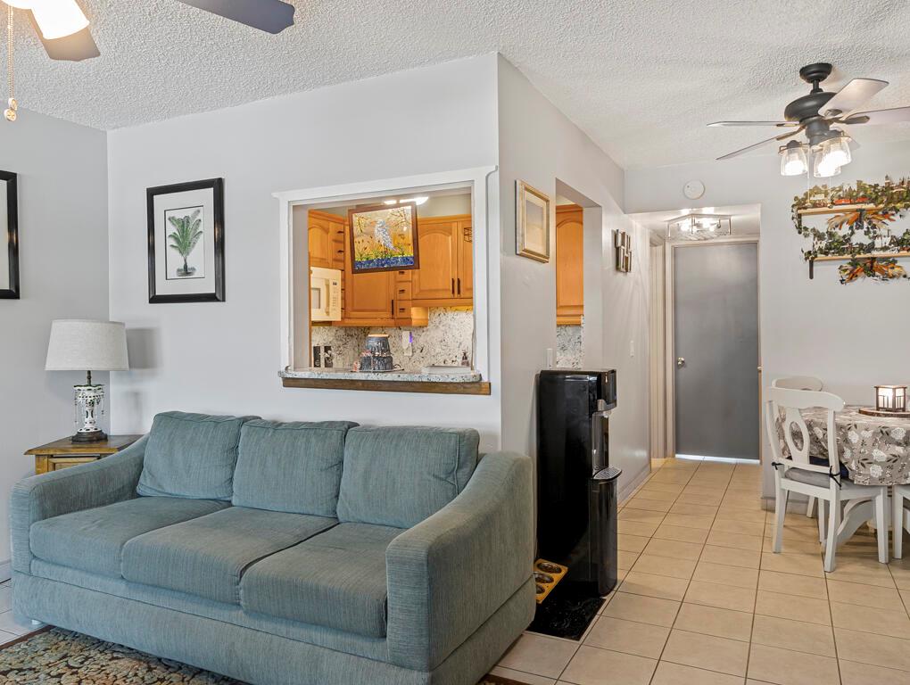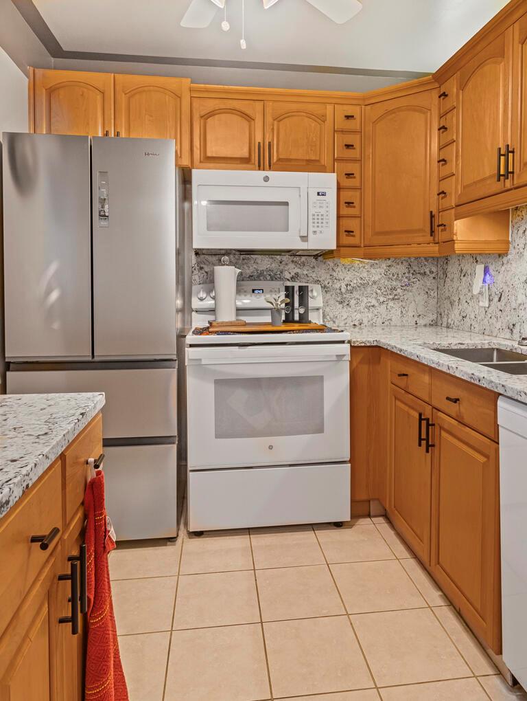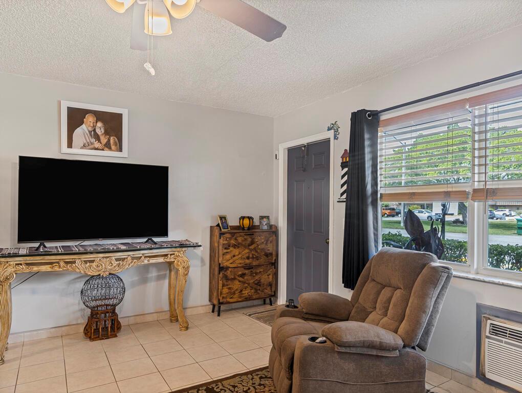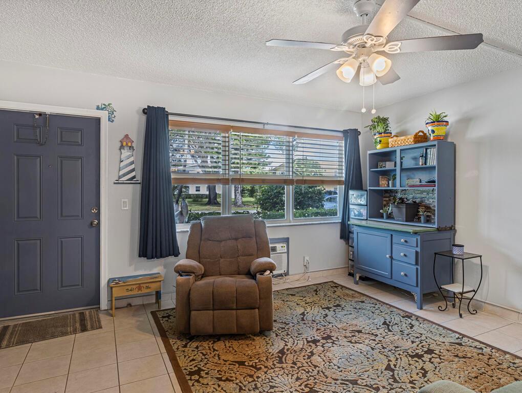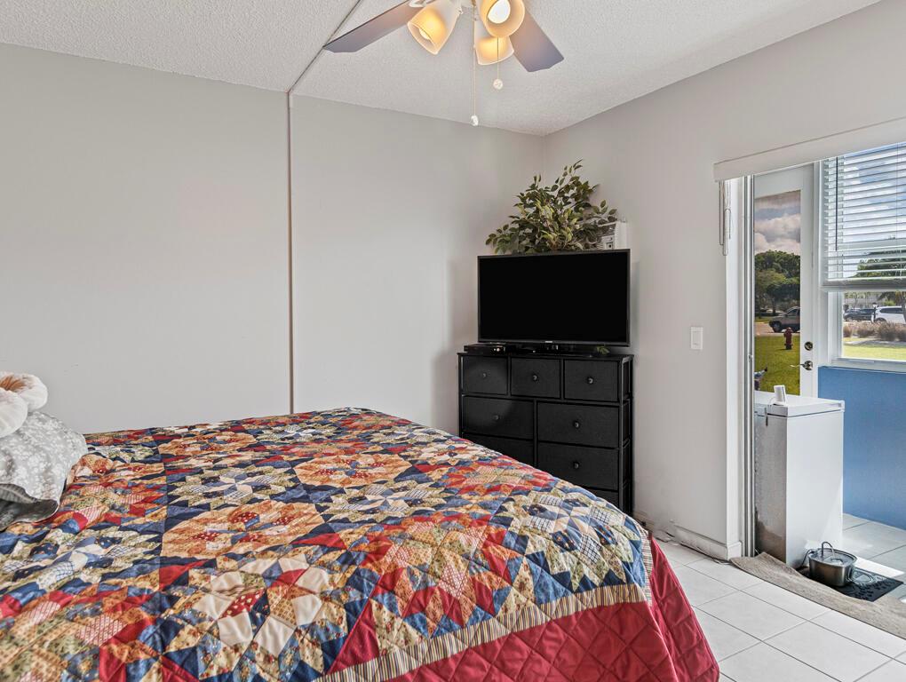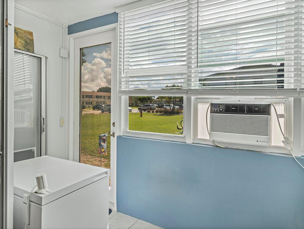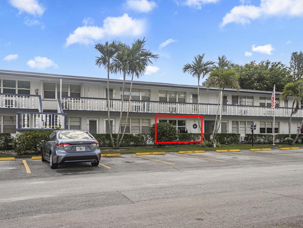 GET READY TO MOVE! PRICE IS FIRM! Check out this gorgeous, renovated 1-bedroom, 1-bath ground floor unit in an active 55+ community! Located just steps from the laundry and mailbox for added convenience. Worry-free living with brand-new front impact windows, plus an enclosed porch featuring impact windows and impact door--perfect for hurricane season. The updated kitchen showcases wood cabinets, granite countertops, and a granite backsplash. The bathroom is elegantly finished with floor-to-ceiling tile, a decorative Listello border, and safety grab bars. Tile flooring runs throughout the unit, and custom closet built-ins maximize storage. This is truly a one-of-a-kind must-see unit! All building work is complete--NO SPECIAL ASSESSMENTS.