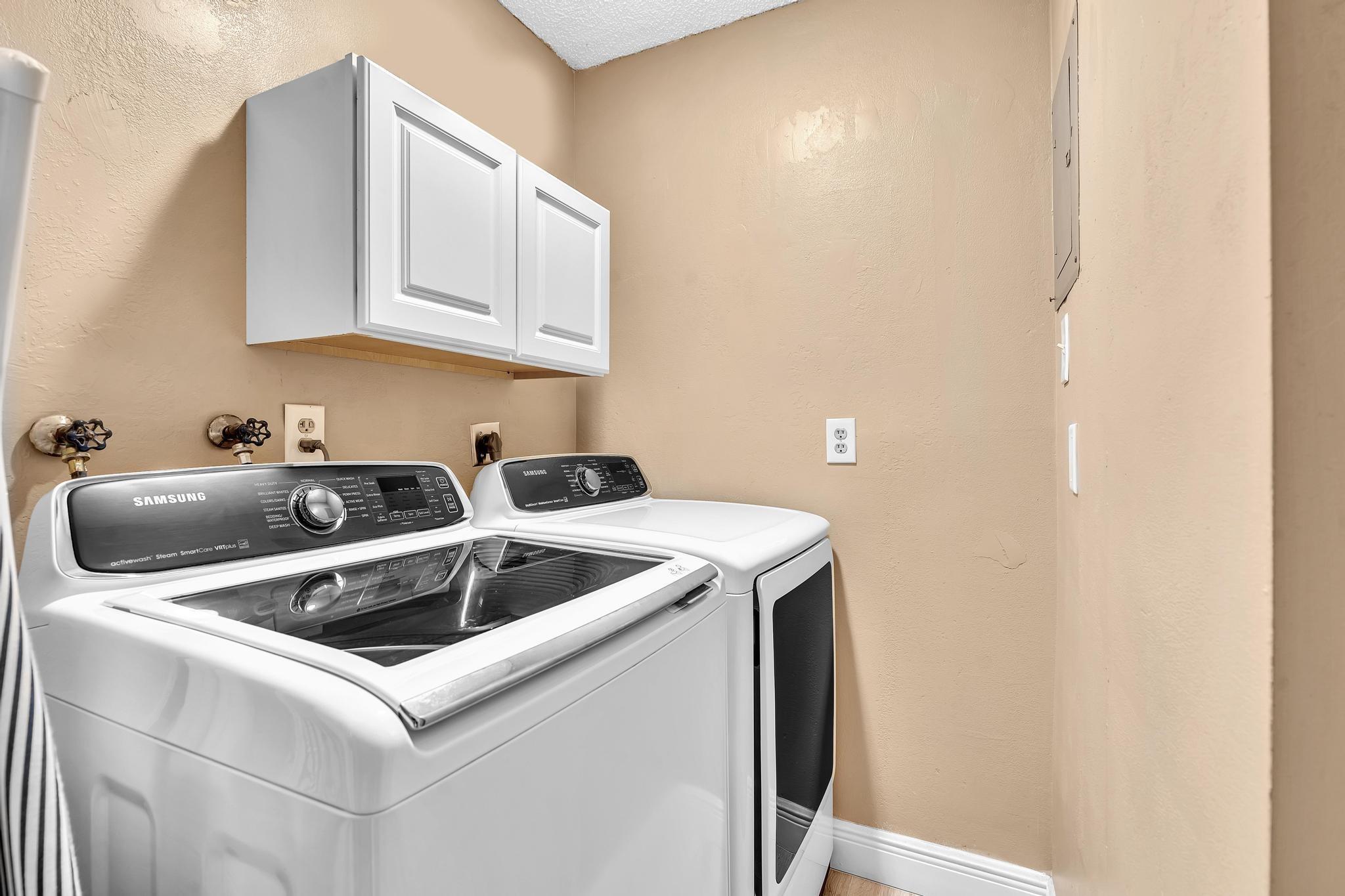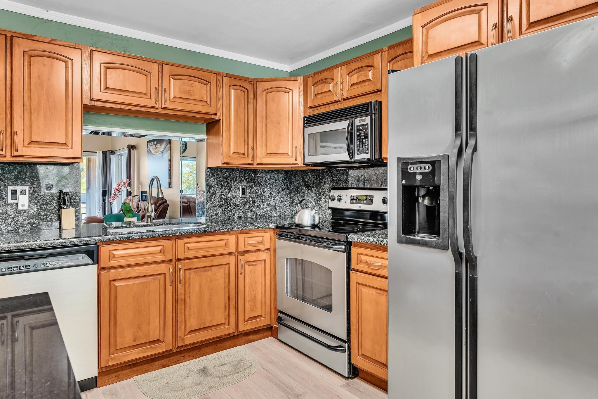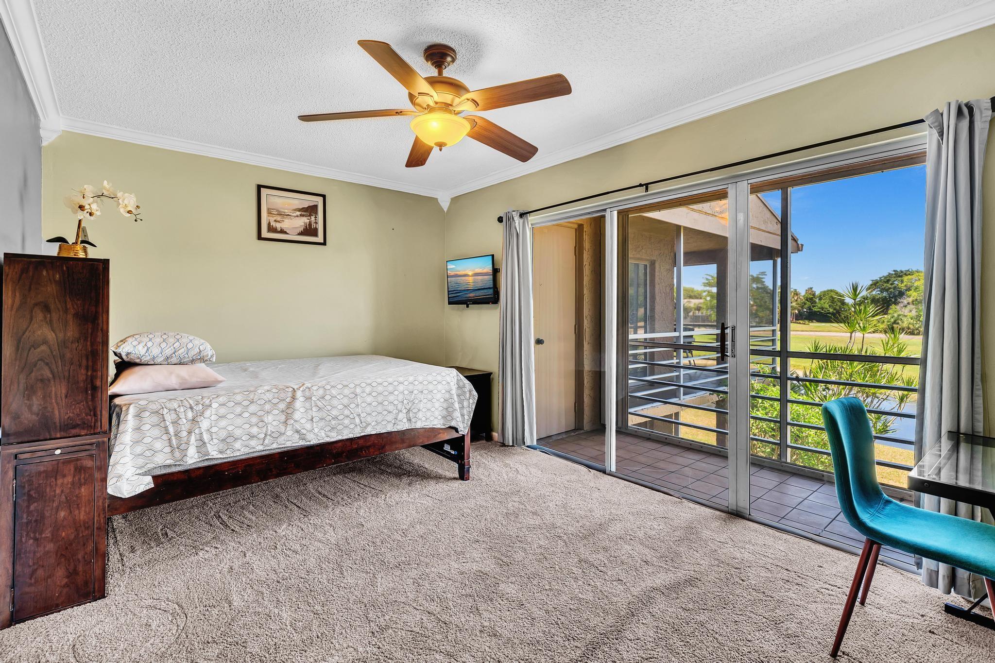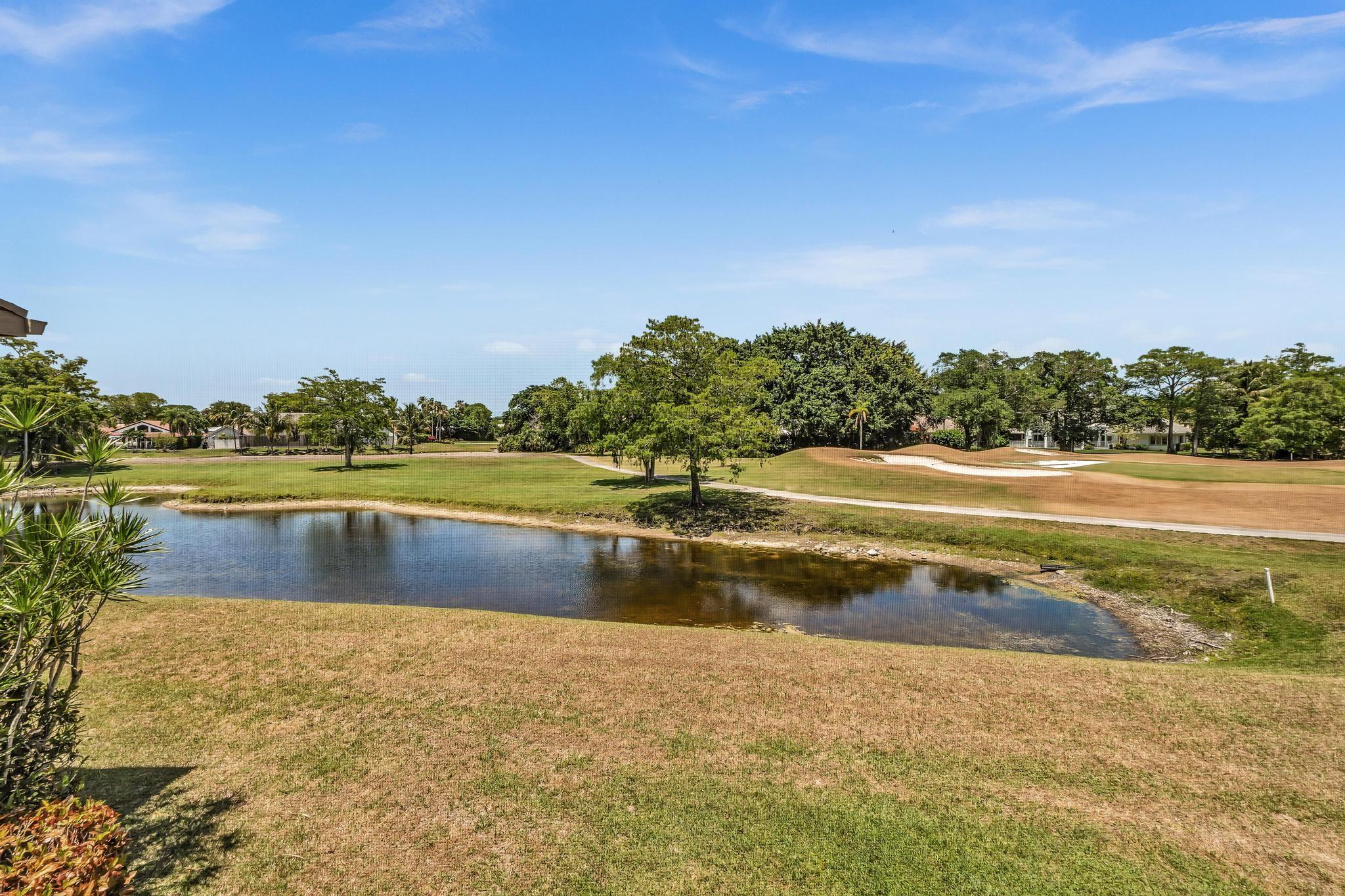 Beautifully remodeled second-floor unit with stunning golf course and lake views! This spacious residence features two ensuite bedrooms, each with its own private bathroom—perfect for privacy and comfort. Enjoy indoor-outdoor living on the tiled, screened-in wraparound balcony, ideal for relaxing or entertaining. The updated kitchen boasts wood cabinetry, granite countertops, and stainless steel appliances. Both suites offer a large walk-in closet, and the convenience of an in-unit washer and dryer adds to the home's functionality. Complete with hurricane shutters for peace of mind, this unit combines style, comfort, and practicality.