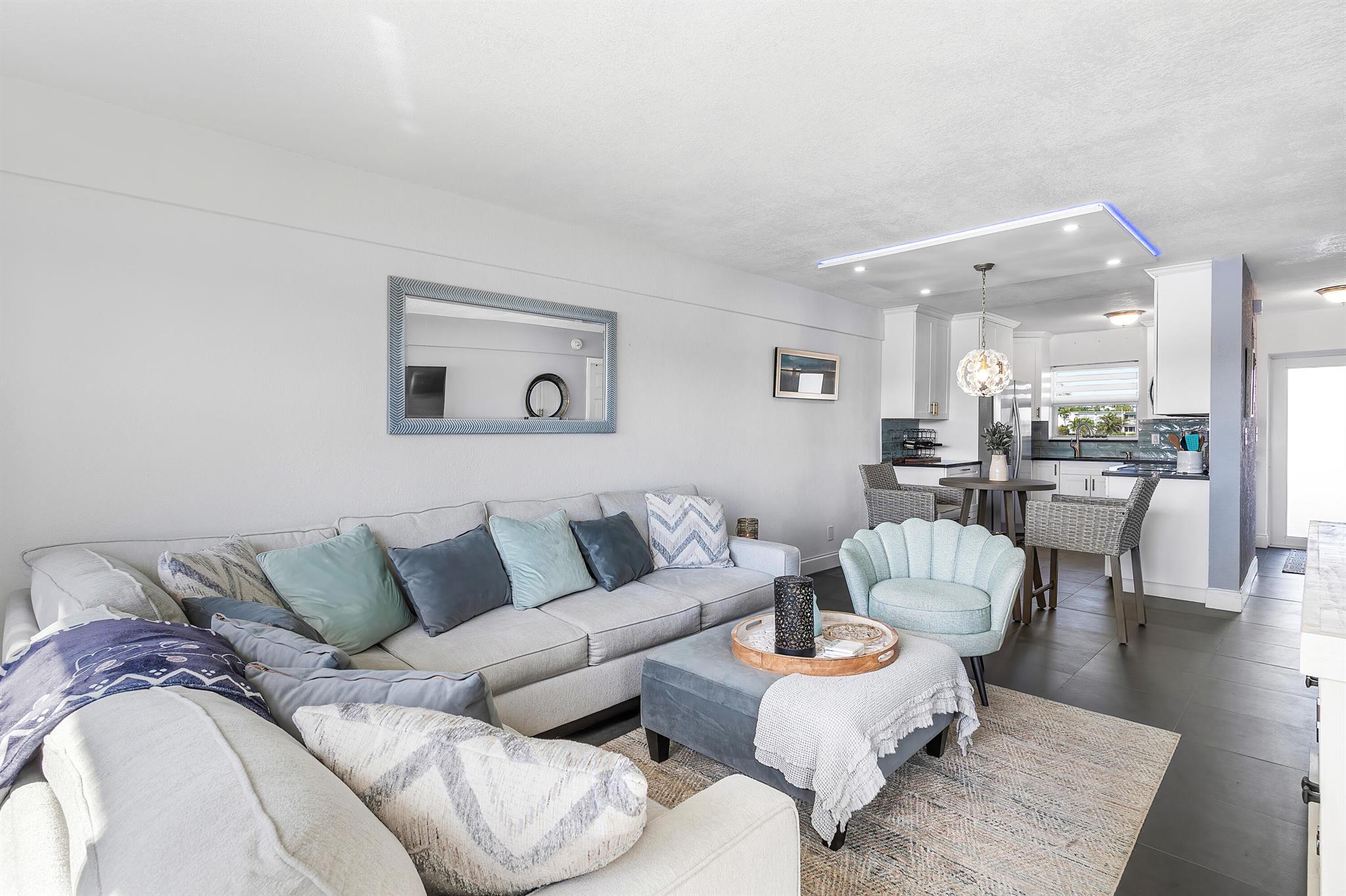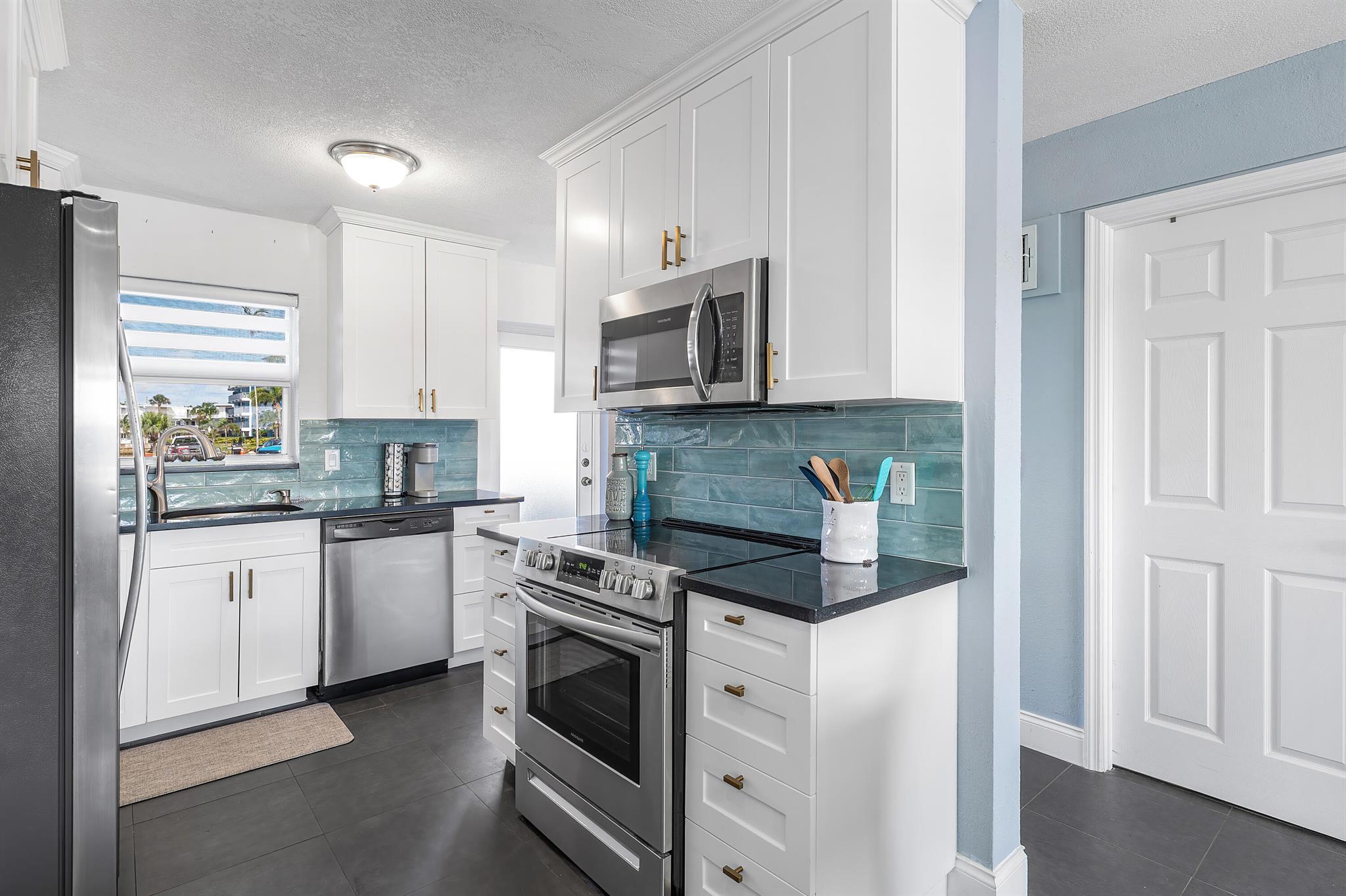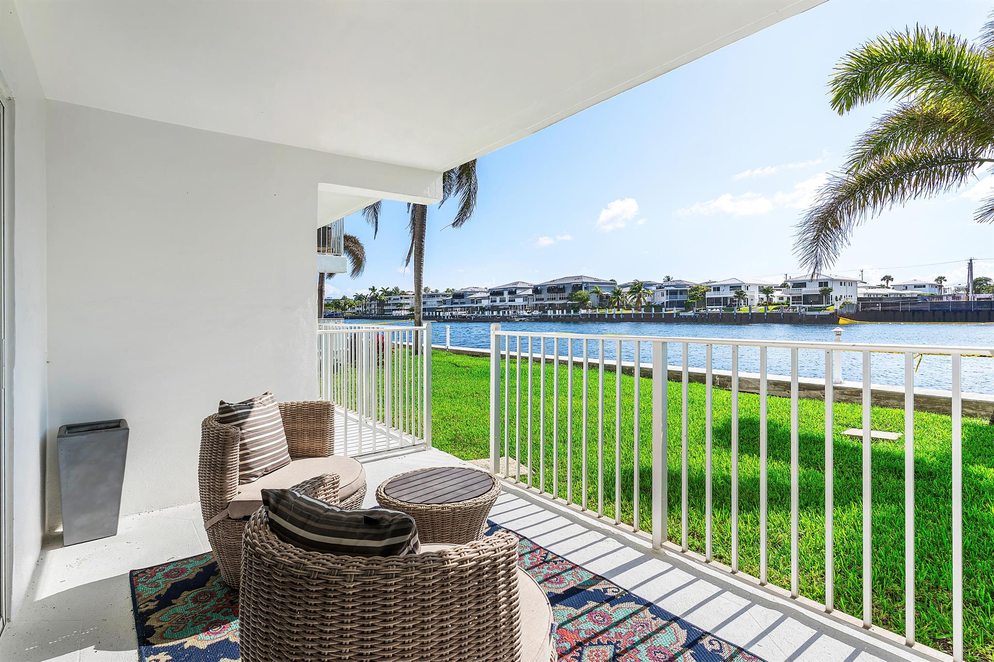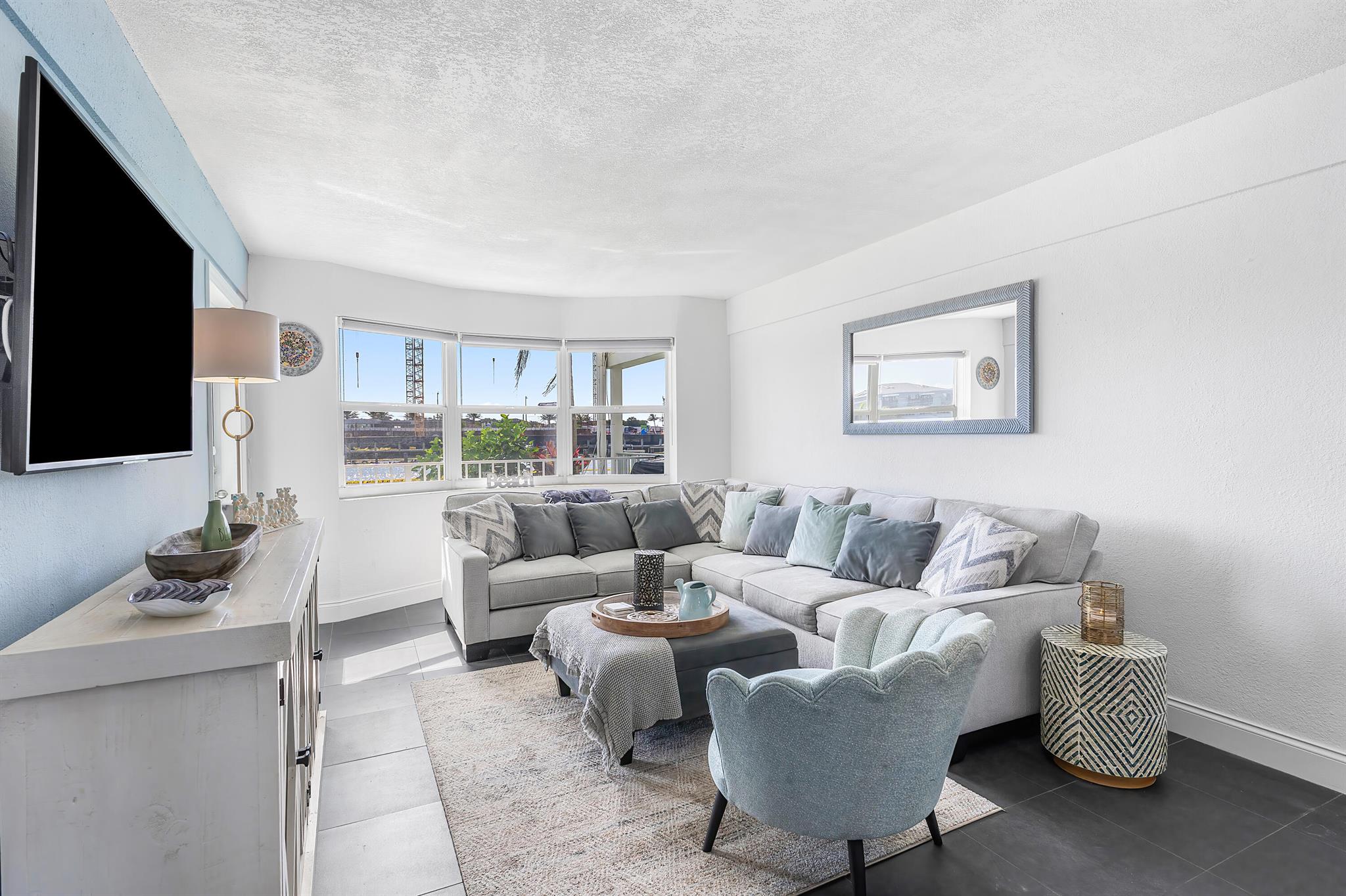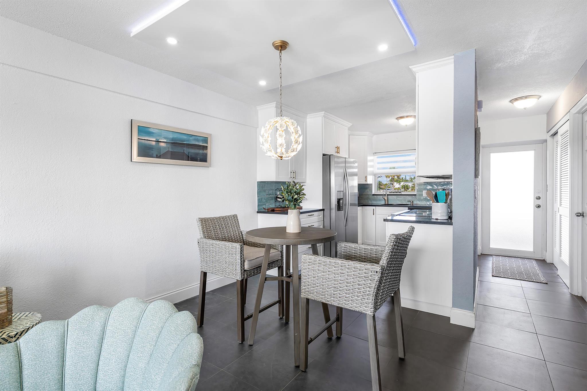 Perfect time to get into this building! You'll benefit from a new roof, new seawall, concrete restoration complete, whole building painted, new plumbing - all things pertaining to the building through the association that needed attention have been taken care of!Stepping inside, this condo has been beautifully renovated and located on the first floor, right on the intracoastal, where your back patio faces the beautiful sunrises with option to keep your boat at the boat dock (with a reasonable waiting period).The layout of this condo perfectly optimizes the use of the space. The kitchen and bathrooms are newly renovated, with a high degree of detail, featuring upgraded lighting over the dinette that you can change the color of depending on your mood. Tile flooring spans the unit.