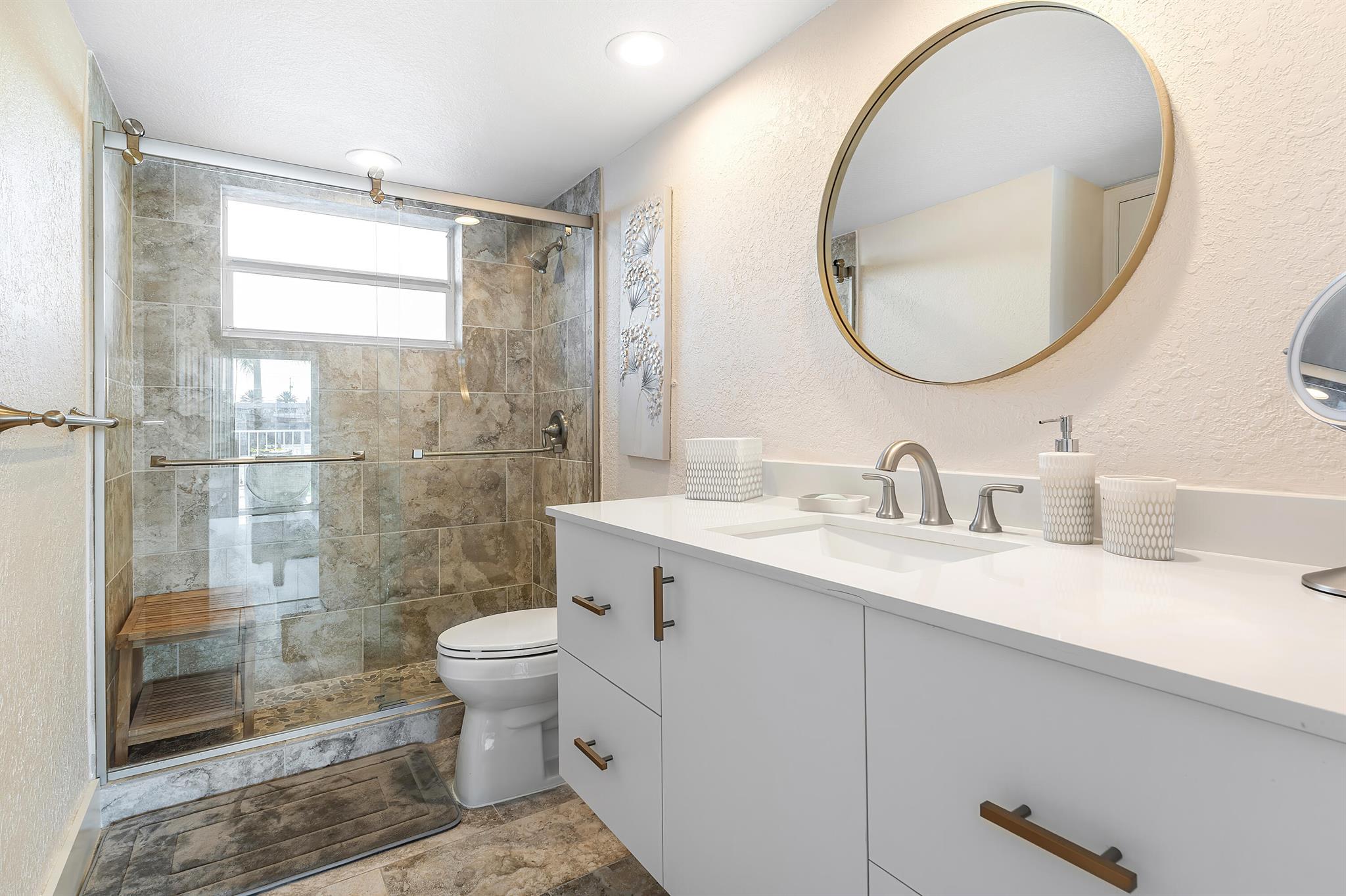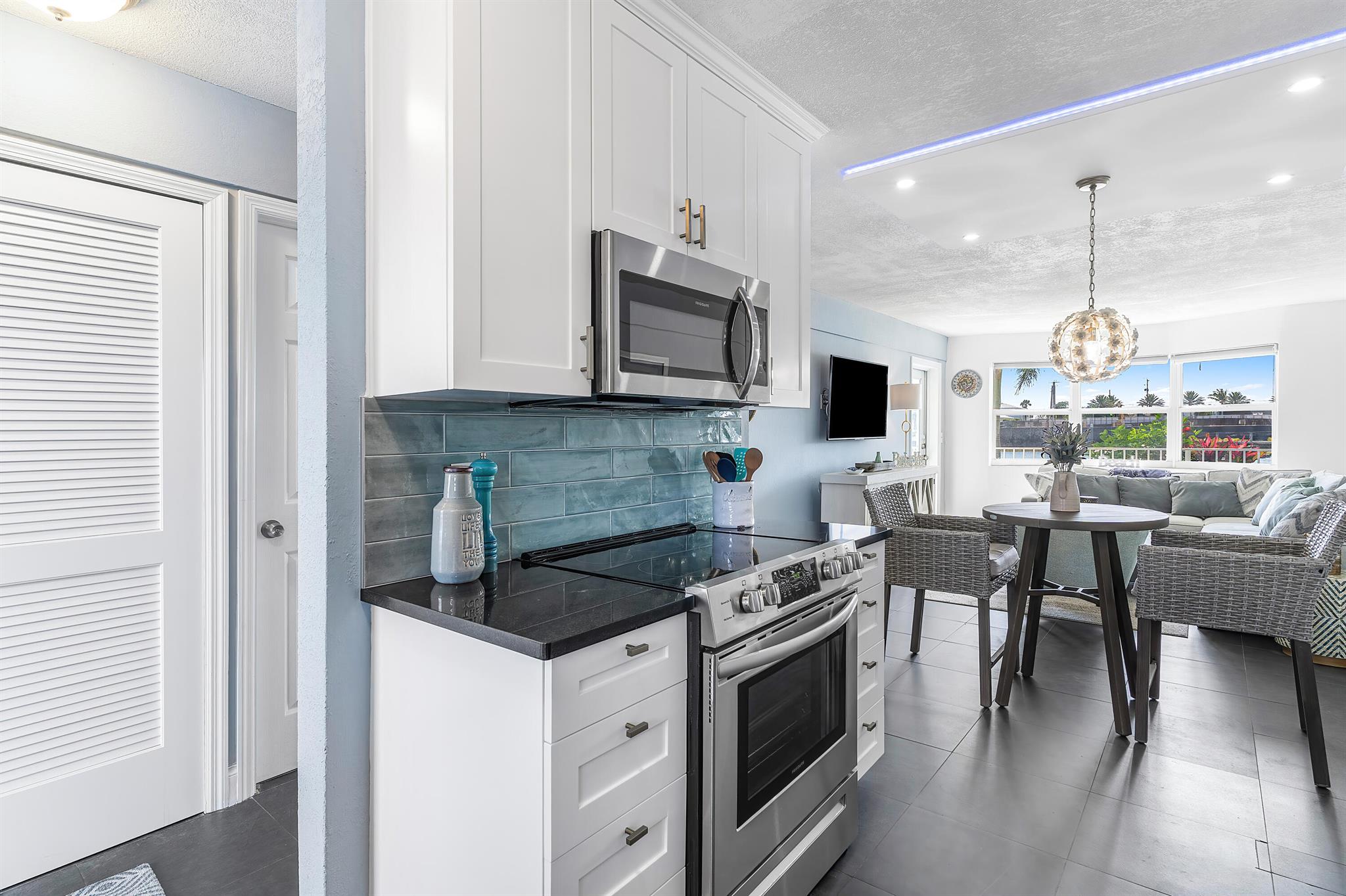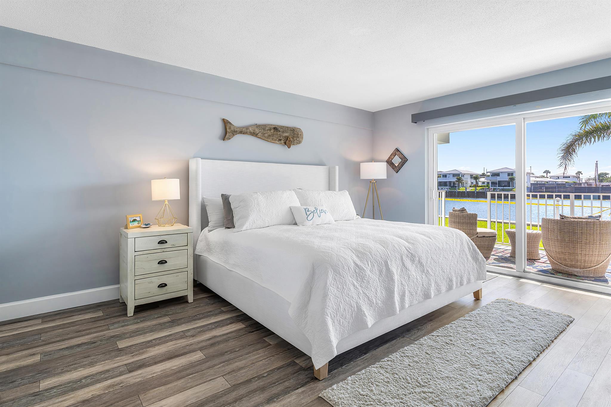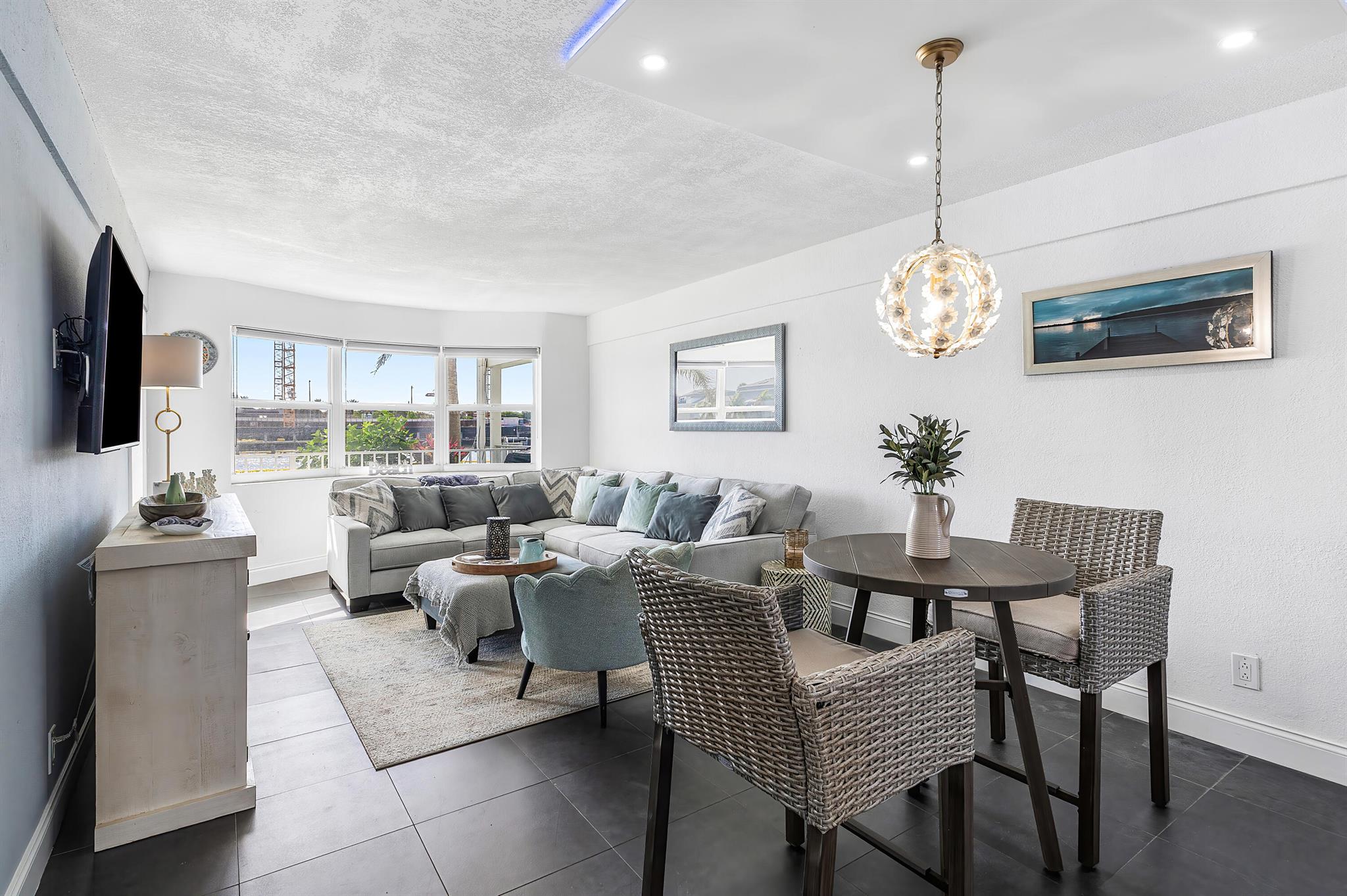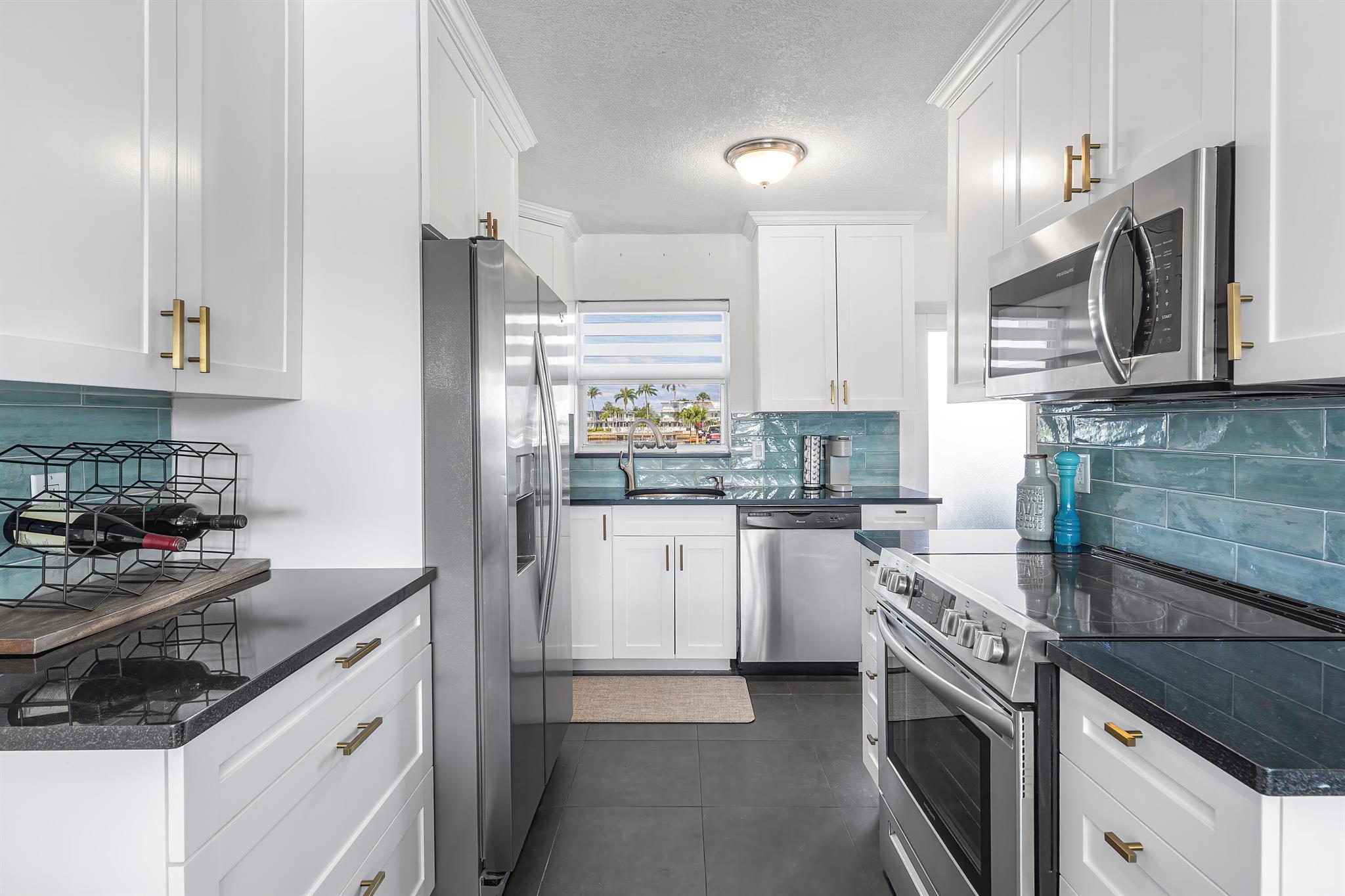 Perfect time to get into this building! You'll benefit from a new roof, new seawall, concrete restoration complete, whole building painted, new plumbing - all things pertaining to the building through the association that needed attention have been taken care of!Stepping inside, this condo has been beautifully renovated and located on the first floor, right on the intracoastal, where your back patio faces the beautiful sunrises with option to keep your boat at the boat dock (with a reasonable waiting period).The layout of this condo perfectly optimizes the use of the space. The kitchen and bathrooms are newly renovated, with a high degree of detail, featuring upgraded lighting over the dinette that you can change the color of depending on your mood. Tile flooring spans the unit.