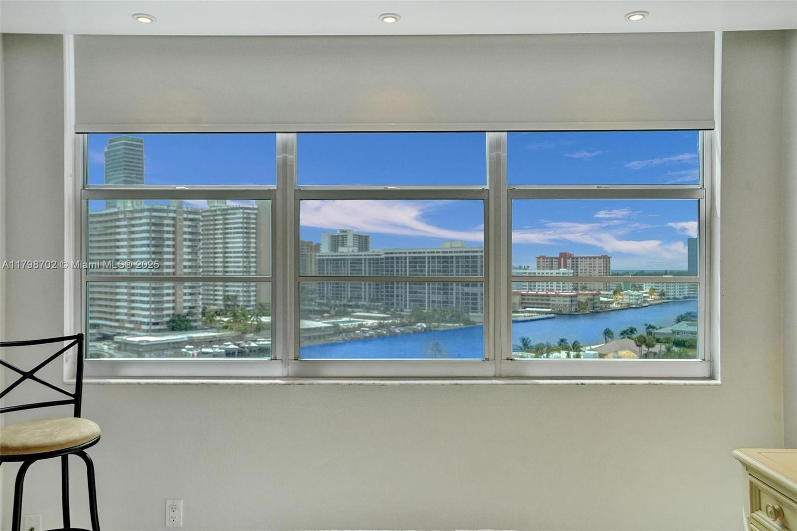 Welcome to your sanctuary in the exclusive Golden Isles community! This renovated unit offers over 1,300 sq ft of sun-filled space with sweeping views of the Intracoastal, Atlantic Ocean, and city skyline from every room. Enjoy coffee or sunsets from your expansive private balcony as boats cruise by. Interior features include an open kitchen with granite countertops, stainless steel appliances, spacious bedrooms with custom closets, split floor plan, tile flooring, impact windows, and updated bathrooms. The well-maintained renovated building offers boat dock slips, heated pool, BBQ area, covered parking. Building passed 50-year recertification, no assessments. Just minutes to the beach, shopping, dining, Gulfstream Park, Aventura Mall, and both Miami and Fort Lauderdale airports.