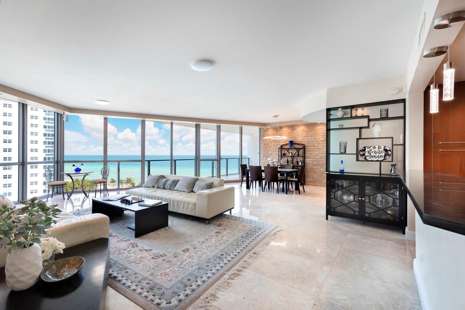 WOW! TAKE YOUR PRIVATE ELEVATOR TO THE 9TH FLOOR, WHERE WELCOMING OCEAN VIEWS LET THE VIBES OF THE ATLANTIC OCEAN SURROUND YOU! THIS IMPECCABLY CLEAN CONDO HAS AN OPEN FLOOR PLAN. BOASTING MARBLE FLOORS W/ FLOOR TO CEILING IMPACT GLASS WINDOWS AND DOORS. THE KITCHEN HAS SNAIDERO CABINETRY .THE DEN (3rd bed) OFF THE DINING ROOM, HAS CONTEMPORARY GLASS BARN DOORS WITH AN ARCHITECTURAL CURVE IN THE CEILING ABOVE. ENJOY THE PHOTOS WITH THE COUCH OPENED & CLOSED. BRAZILIAN HARDWOOD FLOORS ARE IN THE PRIMARY AND 2ND BEDROOM. BED 2 HAS ENSUITE BATHROOM. AMENITIES INCLUDE 2 STORY EXERCISE ROOM, TENNIS COURT, CLUB ROOM -WHERE YOU CAN ENJOY COFFEE EVERY MORNING. THE INFINITY POOL OVERLOOKING THE OCEAN IS TRULY THE PRIZE IN THIS BUILDING, CHAIR & TOWEL SERVICE PROVIDED.