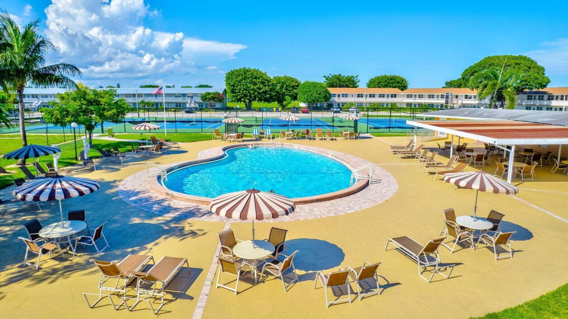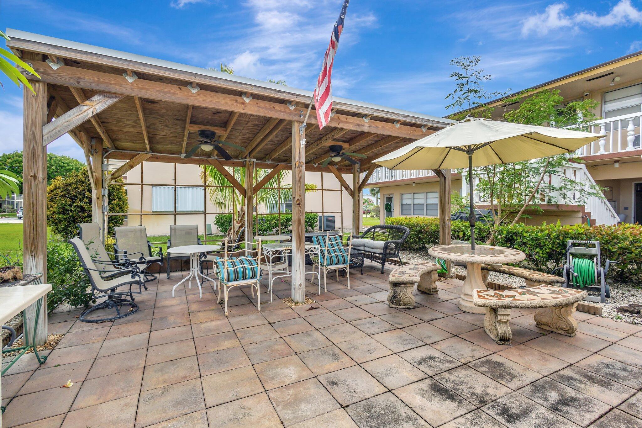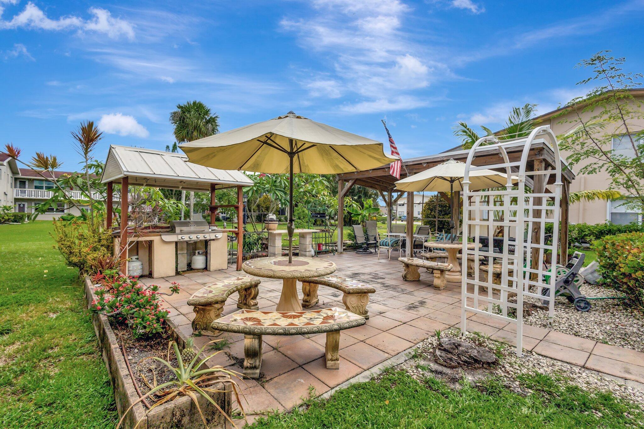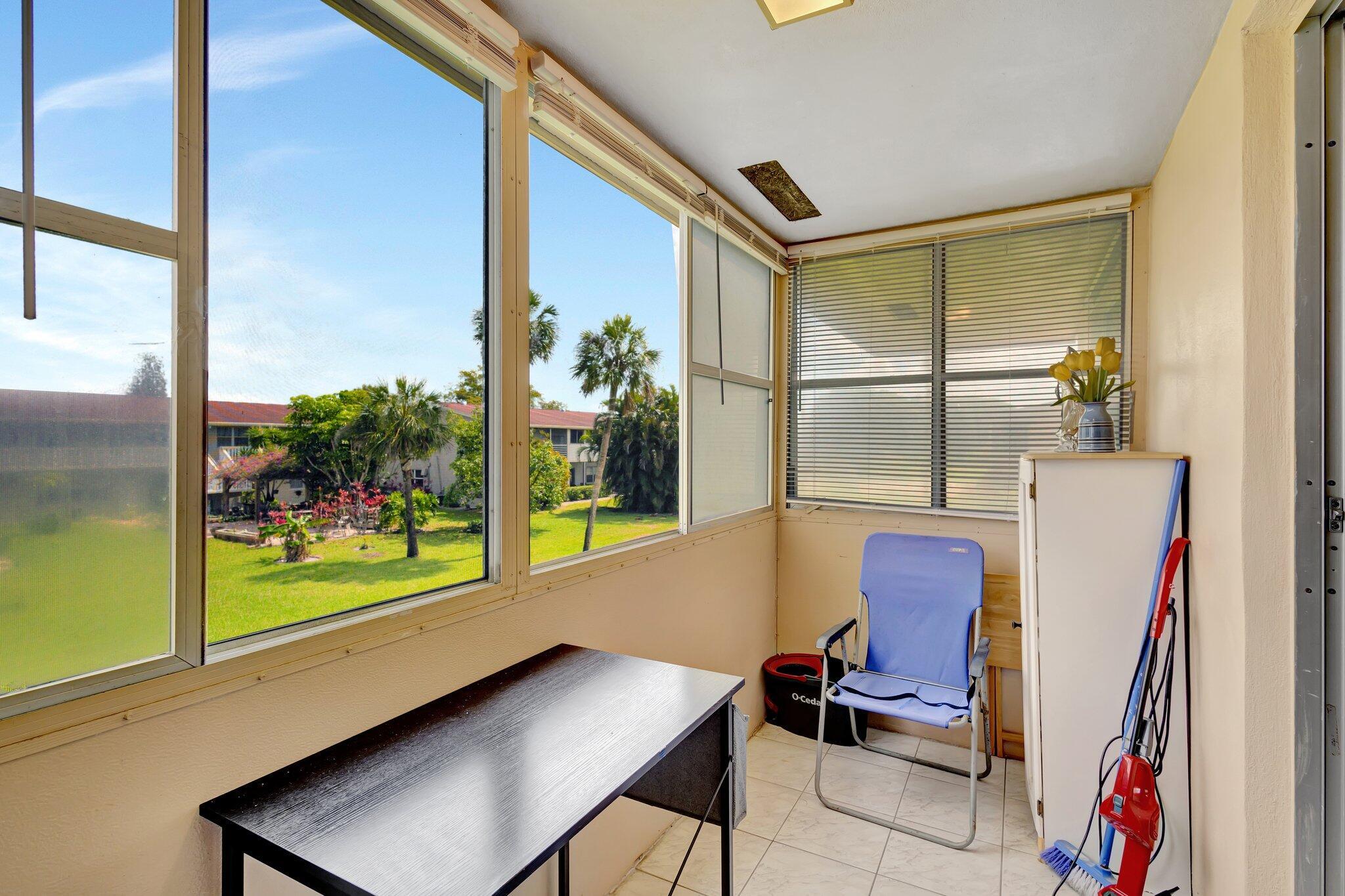 LIGHT& BRIGHT 2 BED 1.5 BATH CORNER UNIT COMPLETELY UPDATED PARTIALLY FURNISHED TILED FLOORING FEATURES EXTRA SUNLIGHT. CENTRAL AIR EXTRA WINDOWS , KITCHEN FEATURES SHAKER CABINETS, GRANIT COUNTERS & STAINLESS STEEL APPLIANCES UPDATED TILED BATHROOM. ASSOCIATION HAS PRIVATE PATIO TO SIT OUT AND RELAX ON. GREAT LOCATION CLOSE TO HAVERHILL GATE, THE CLUBHOUSE AND HASTINGS FITNESS CENTER WELL MANAGED ASSOCIATION.Roomy closets (one walk-in), screened-in patio, laundry room, assigned parking spot plus visitor parking available; local bus for errands/shopping both within & outside The Village;. COME AND ENJOY RESORT STYLE LIVING IN THIS GATED COMMUNITY FOR ADULTS 55+. Clubhouse with theater, shows, movies, craft and card rooms, billiards, aerobics, yoga, and dance classes. GREAT LOCATION: