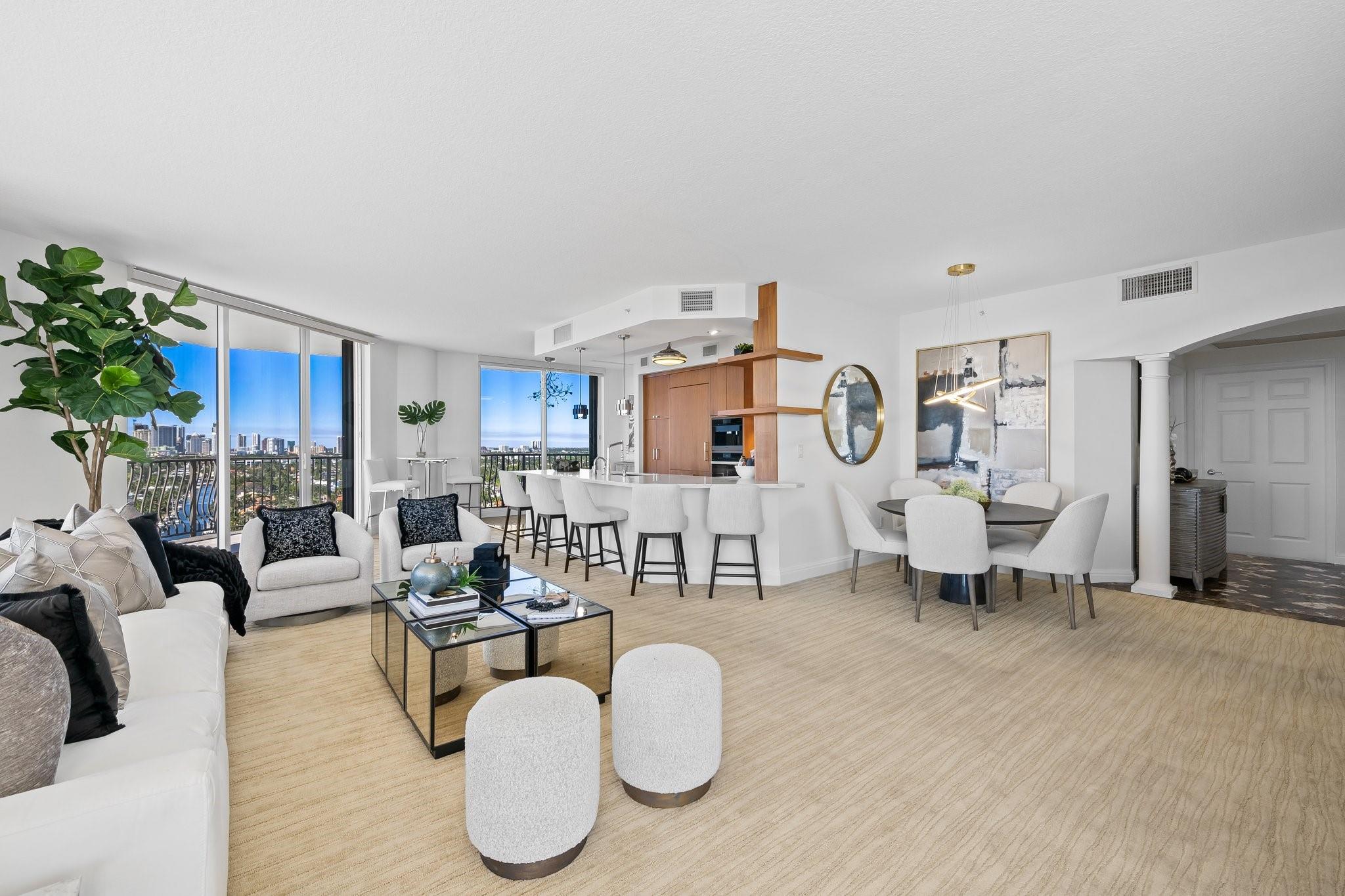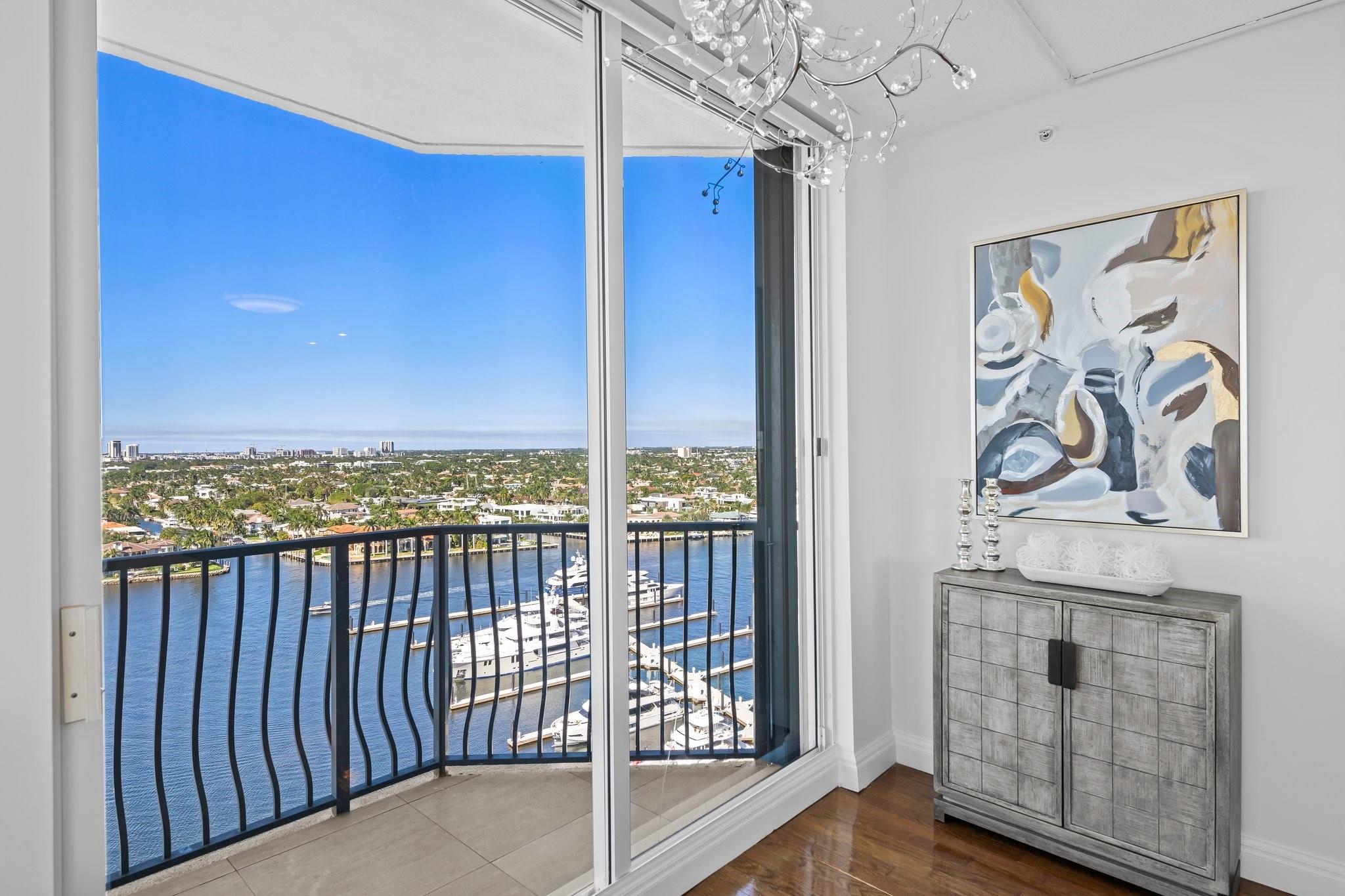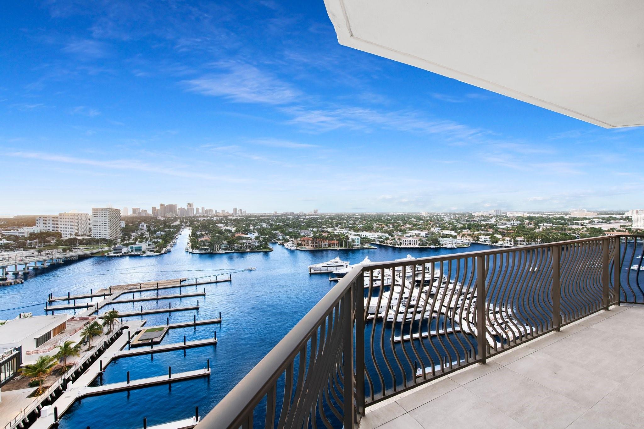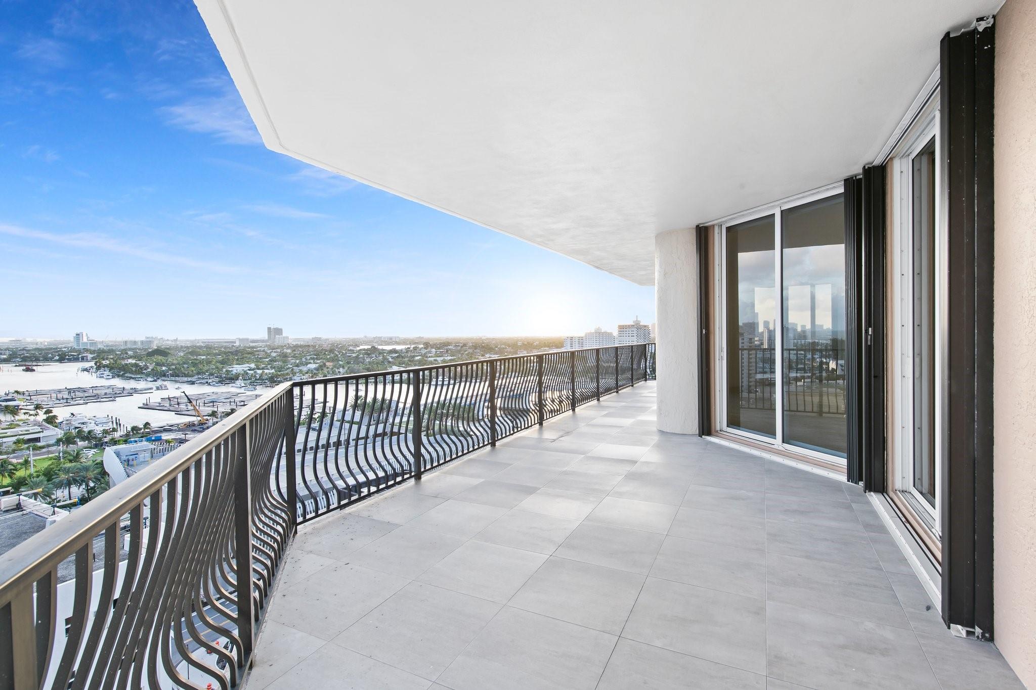 Incrrdible opportunity to own this rarely available SW corner true 3 BR, 2.5 BA residence with breathtaking views of the Intracoastal, ocean, and city and overlooking the new Las Olas Marina-the home to Mega Yachts. The newly renovated kitchen features premium Miele appliances, and the new primary bathroom ensures modern comfort. Floor-to-ceiling sliding glass doors connect indoor and outdoor spaces, creating an open, airy ambiance. Incredible oversized 715 SF wraparound terrace is great for sunset watching, relaxing and entertaining. A direct elevator access from the garage into a private foyer, provides both privacy & ease of access. The pet-friendly building offers amenities like a doorman, gym, heated pool, valet parking, and more, with additional parking space available for purchase.