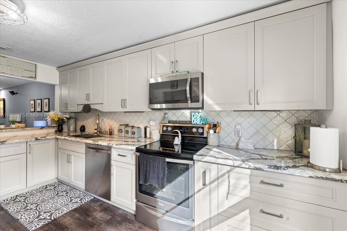 Serene lakeside living in Pembroke Pines, this turnkey ready, corner unit condo boasts 3 bedrooms, 2.5 bathrooms, remodeled kitchen w/ granite countertops, stainless-steel appliances, NEW ROOF & laminate wood flooring. Newly remodeled bathrooms. Primary suite shower has sleek, glass doors. Daikin AC only 6 months old. Enjoy the tranquil lake from your screened patio w/ stamped concrete floors, perfect for relaxing and entertaining. Condo is equipped w/ Accordion Shutters for added convenience. Great amenities including private community pool & handball courts. Association includes roof/roof repairs, insurance, building exterior, landscaping/lawn maintenance, common area, cable, internet, pool service, and trash removal. Located minutes from local parks, schools, and shopping.