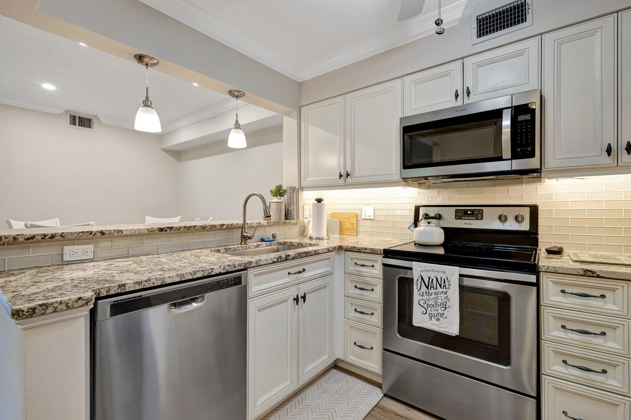 Very Clean freshly painted unit with new modern flooring. Remodeled bathrooms, and remodeled expanded kitchen. BRAND NEW A/C with 10 year transferrable warranty. Lake view. Patio overlooks lake. First floor unit. Ok for pet. Pet friendly community. White cabinets in kitchen. Just minutes to downtown Atlantic Ave. beaches, and Publix Supermarket. Just 5 minutes to Florida Turnpike. Move right in and enjoy Florida sunshine from your patio