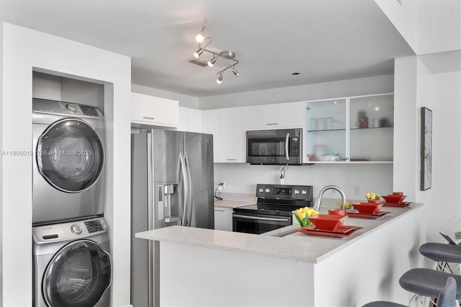 Stylish 1-bed 1-bath condo unit in full-service boutique building in Miami's vibrant Edgewater neighborhood. Open kitchen with quartz countertops and stainless-steel appliances is perfect for the home chef. 10-foot volume ceilings, floor-to-ceiling impact glass, oversized bathroom, full-size washer/dryer inside the unit. The building offers top-tier amenities including 24-hour concierge lobby attendant, electric-vehicle charging stations, pool, spa, gym, sauna, club room, billiard room, yoga room, business center, assigned parking, storage space, on-site management. This prime location places you just moments from Wynwood, Midtown, the Design District, Brickell, the airport, and South Beach. This is a rare opportunity to own a chic condo in one of Miami's most sought-after neighborhoods!
