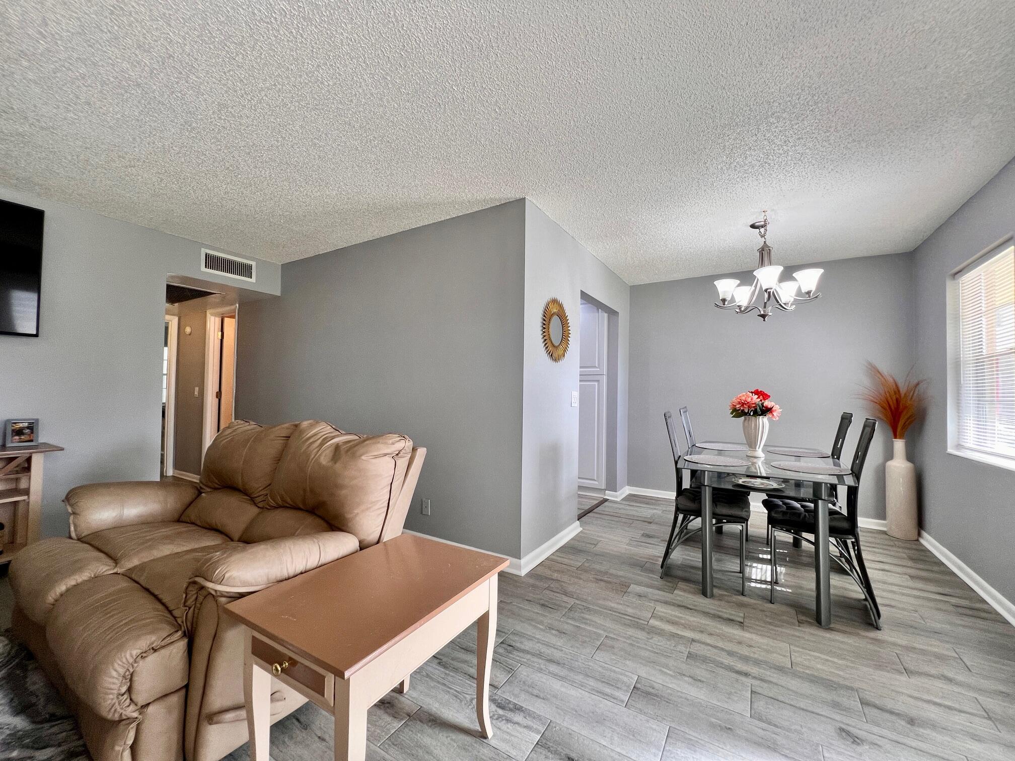 GORGEOUS, LOADED WITH QUALITY UPDATES IN A FANTASTIC LOCATION! Move In Ready 2/1.5 FIRST FLOOR CONDO In the Coveted Chatham Section of 55+ Century Village. Beautiful NEW Sparkling White Kitchen! NEW Ceramic Tile Flooring Throughout! NEW AC! NEW Interior French 6 Panel Doors, Electrical Switches & Sockets! Updated Baths. Freshly Painted. Updated Ceiling Fans In Bedrooms & Lanai. Included In Sale; 3 Wall Mounted Smart TVs & Ring Security Doorbell. Furniture Is Negotiable. Well Maintained Building With New Roof (2020), Reserves, and Lovely Resident Patio With Lush Tropical Landscaping, Grill, and Seating Areas. Quiet & Peaceful Location Close To Hastings Fitness Center and The Main Clubhouse. Century Village is a Resort Style 55+ Community in Vibrant West Palm Beach, FL...