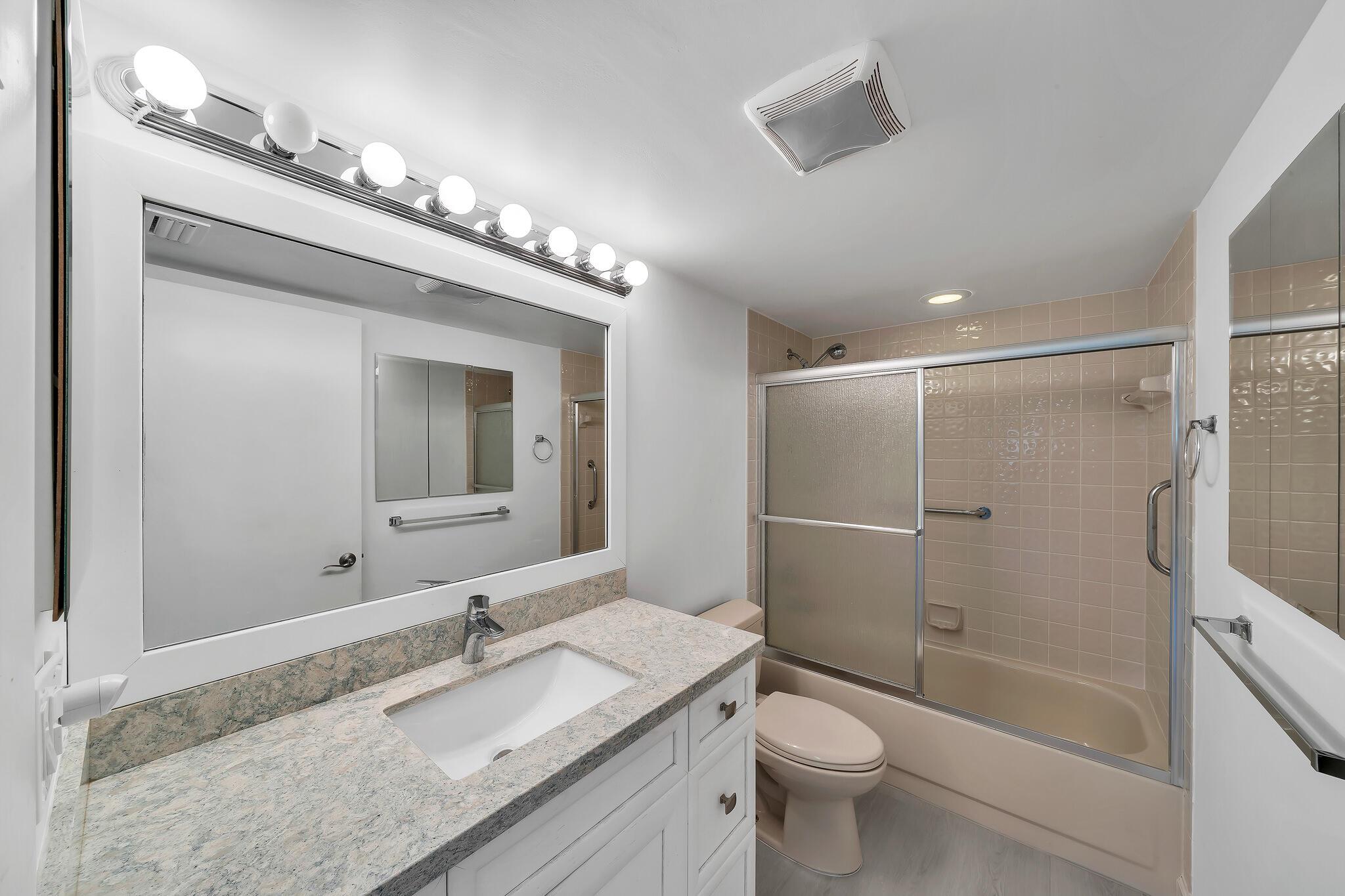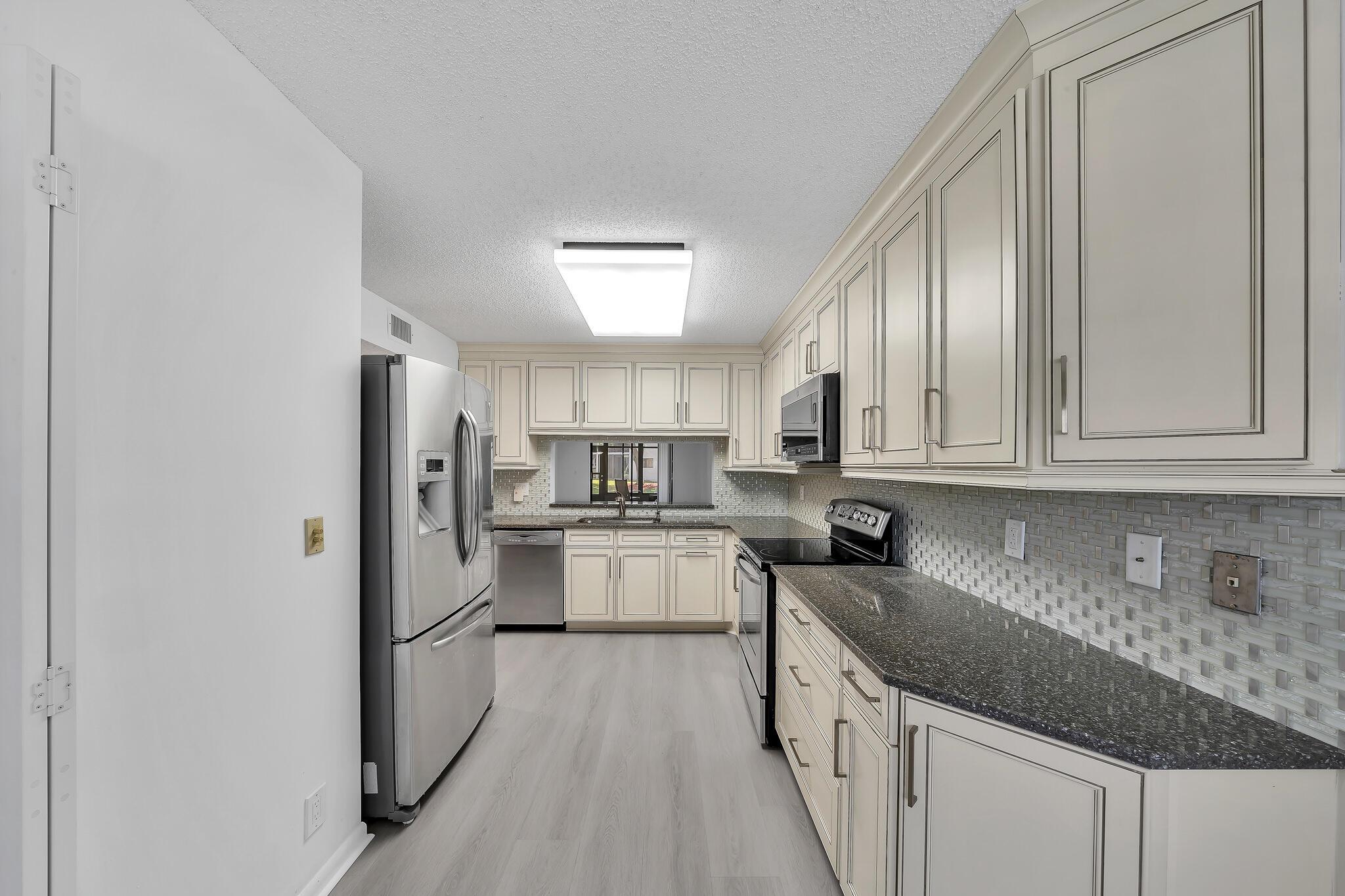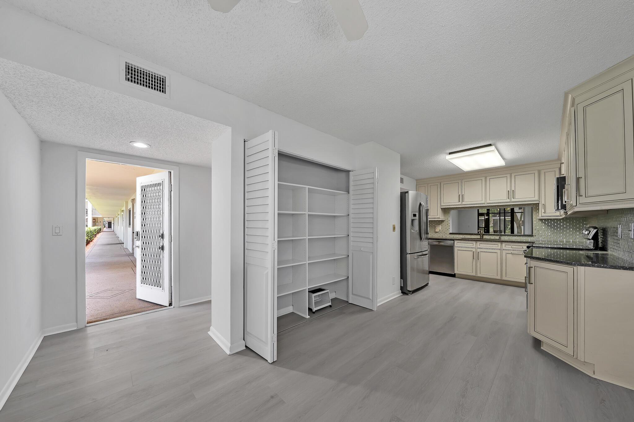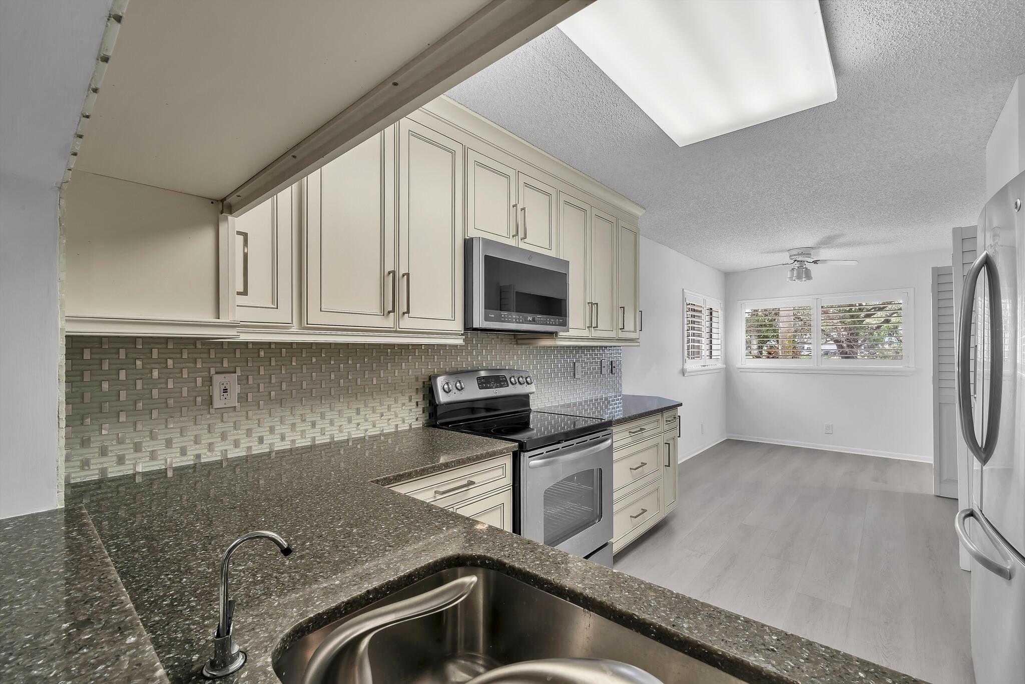 Exquisitely updated, bright, spacious, 2BR 2BA, 1st flr, corner unit in the much-sought-after Lakes of Delray! 1,400+ SF split BR layout. Gorgeous, vinyl plank tile flooring & custom closets. Eat-in-kitchen w/beautiful countertops & stainless steel appliances. Lrg Dining & Living Areas. Lrg Laundry/Storage rm w/washer & dryer. Enclosed Lanai. 2020 HVAC & Water Heater. 2023 Roof! 2022 Elevator! Vibrant lifestyle w/access to 3 pools, XL hot tub, covered BBQ area, men's & women's saunas, pickle-ball, tennis, shuffleboard & basketball courts. Active clubhouse, w/card rms, billiards, multipurpose rm w/kitchen, gym, library, arts & crafts rm, clubs, shows/movies, dances, holiday events & more! Minutes to Downtown, beach, medical offices, shopping & eateries. Motivated Seller! Bring all offers!