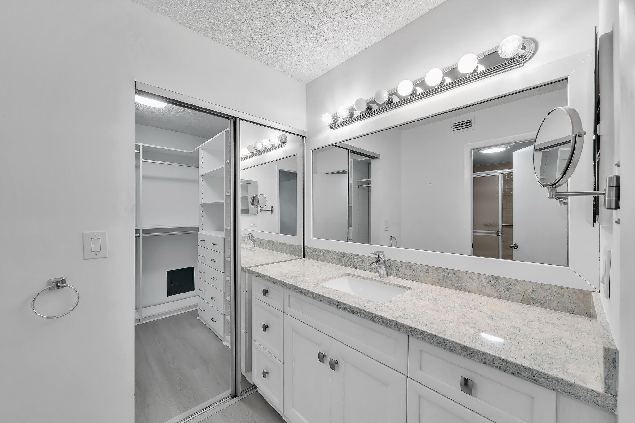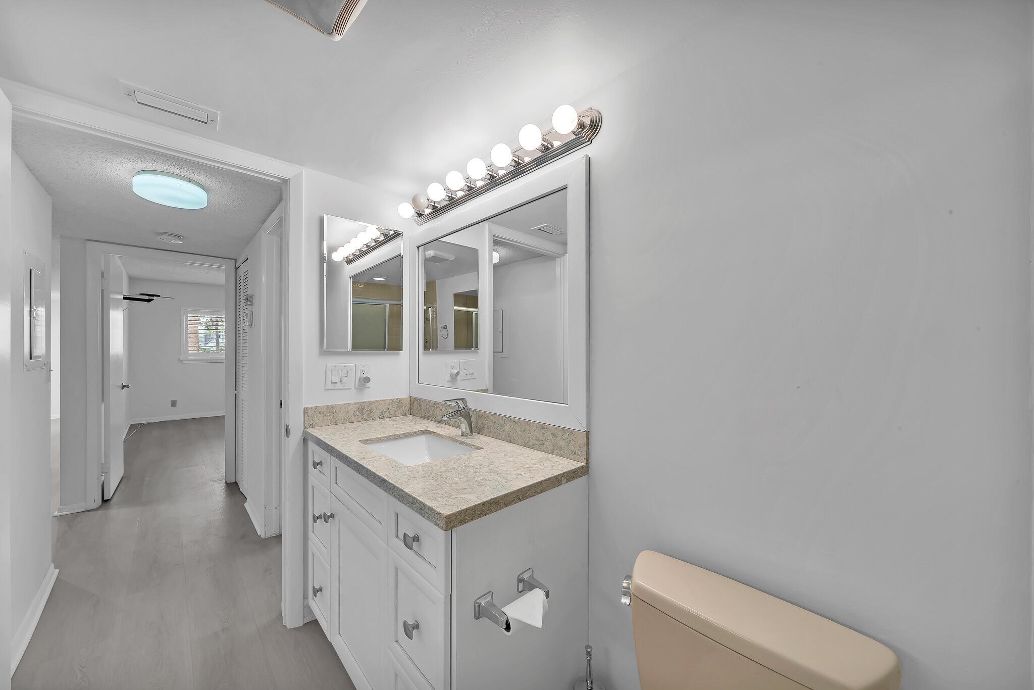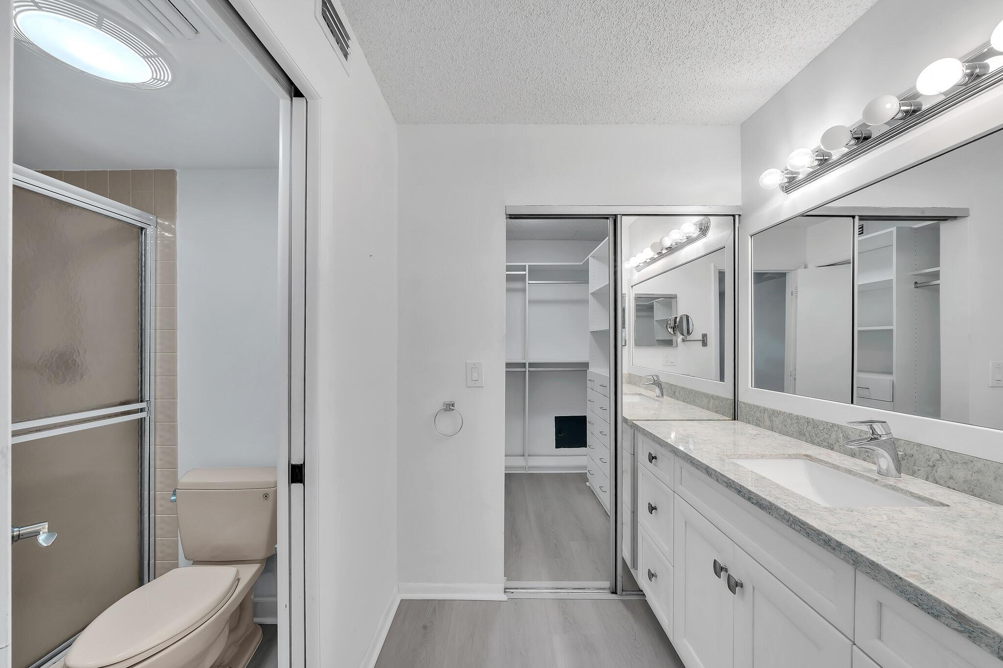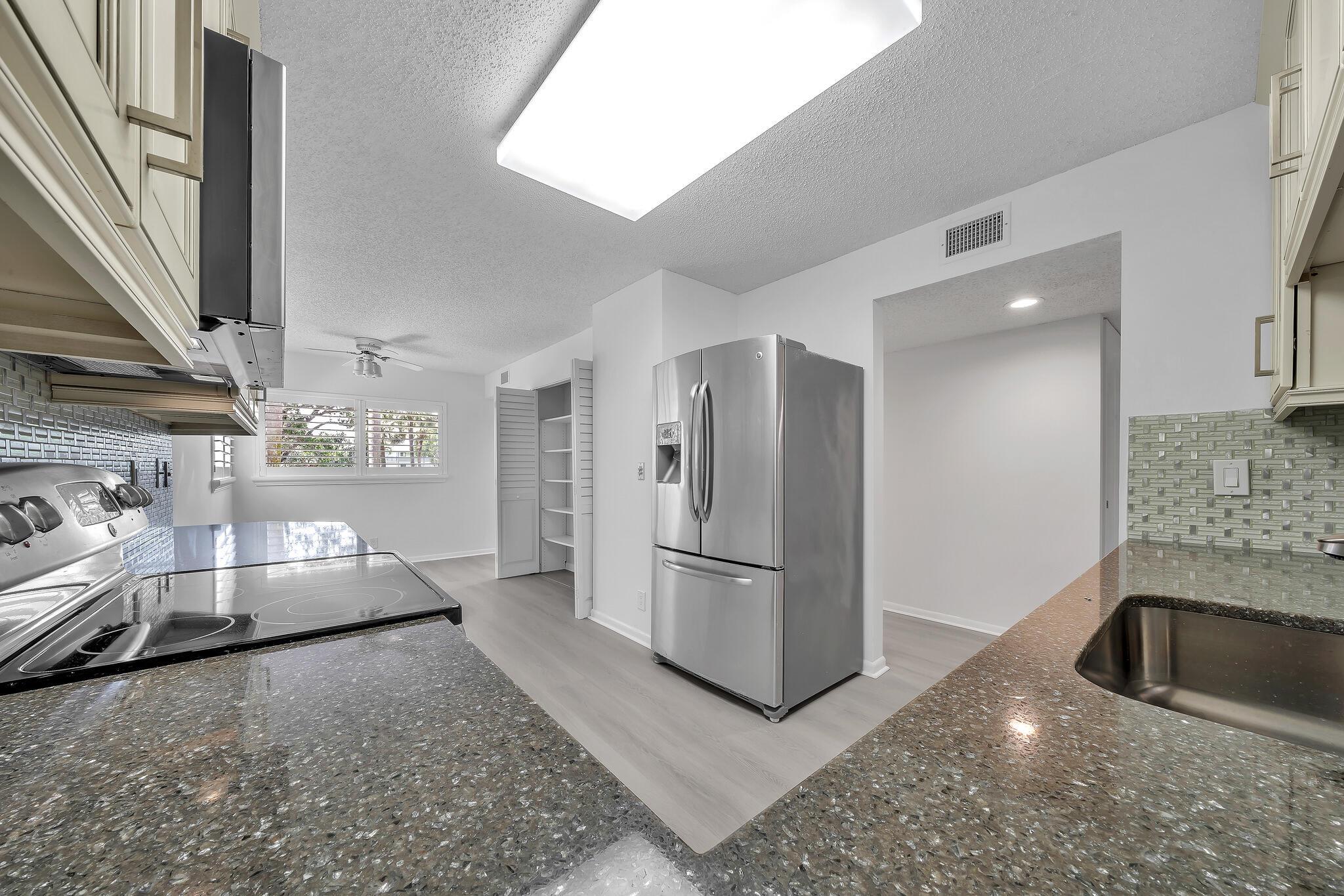 Exquisitely updated, bright, spacious, 2BR 2BA, 1st flr, corner unit in the much-sought-after Lakes of Delray! 1,400+ SF split BR layout. Gorgeous, vinyl plank tile flooring & custom closets. Eat-in-kitchen w/beautiful countertops & stainless steel appliances. Lrg Dining & Living Areas. Lrg Laundry/Storage rm w/washer & dryer. Enclosed Lanai. 2020 HVAC & Water Heater. 2023 Roof! 2022 Elevator! Vibrant lifestyle w/access to 3 pools, XL hot tub, covered BBQ area, men's & women's saunas, pickle-ball, tennis, shuffleboard & basketball courts. Active clubhouse, w/card rms, billiards, multipurpose rm w/kitchen, gym, library, arts & crafts rm, clubs, shows/movies, dances, holiday events & more! Minutes to Downtown, beach, medical offices, shopping & eateries. Motivated Seller! Bring all offers!