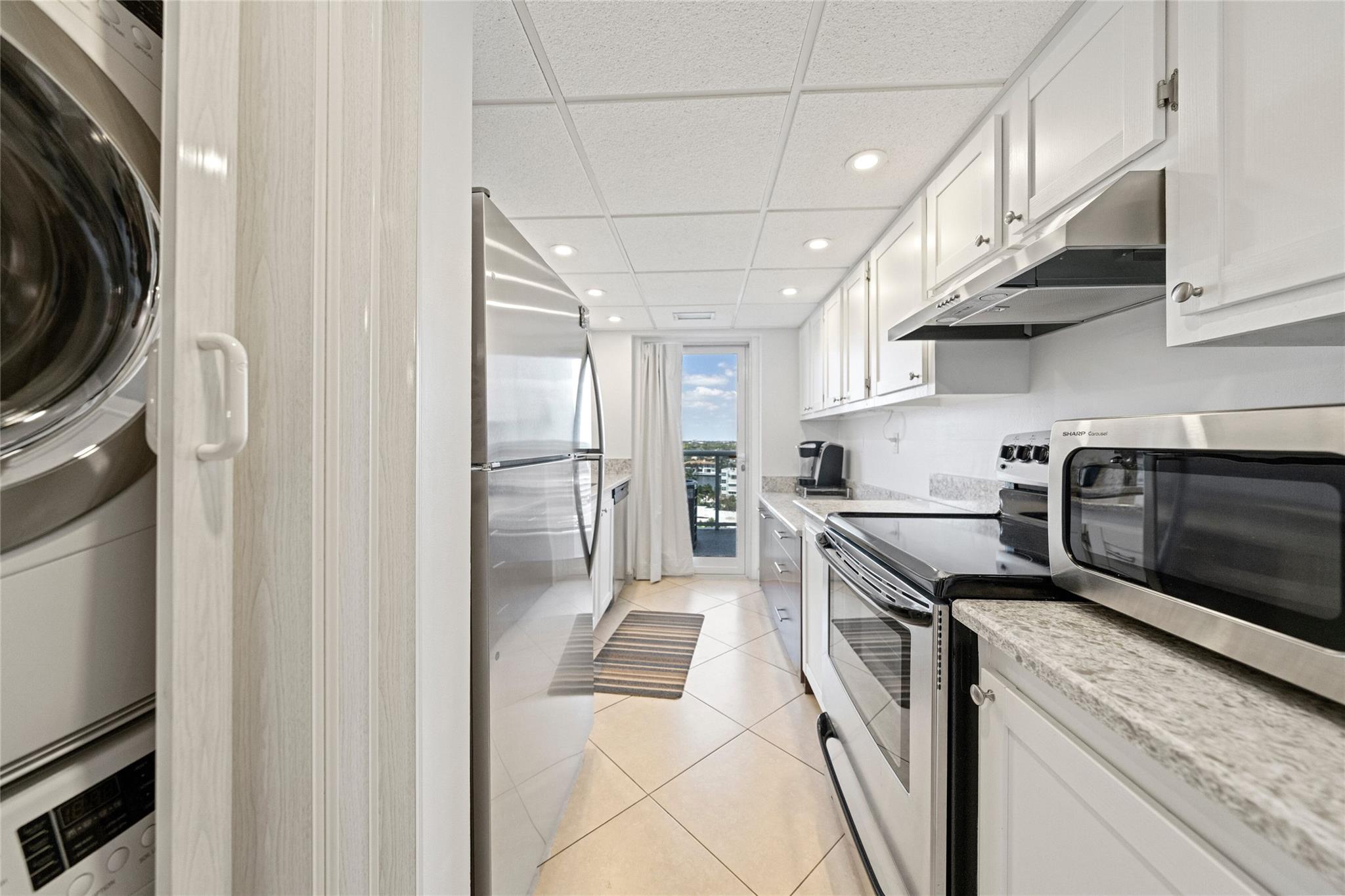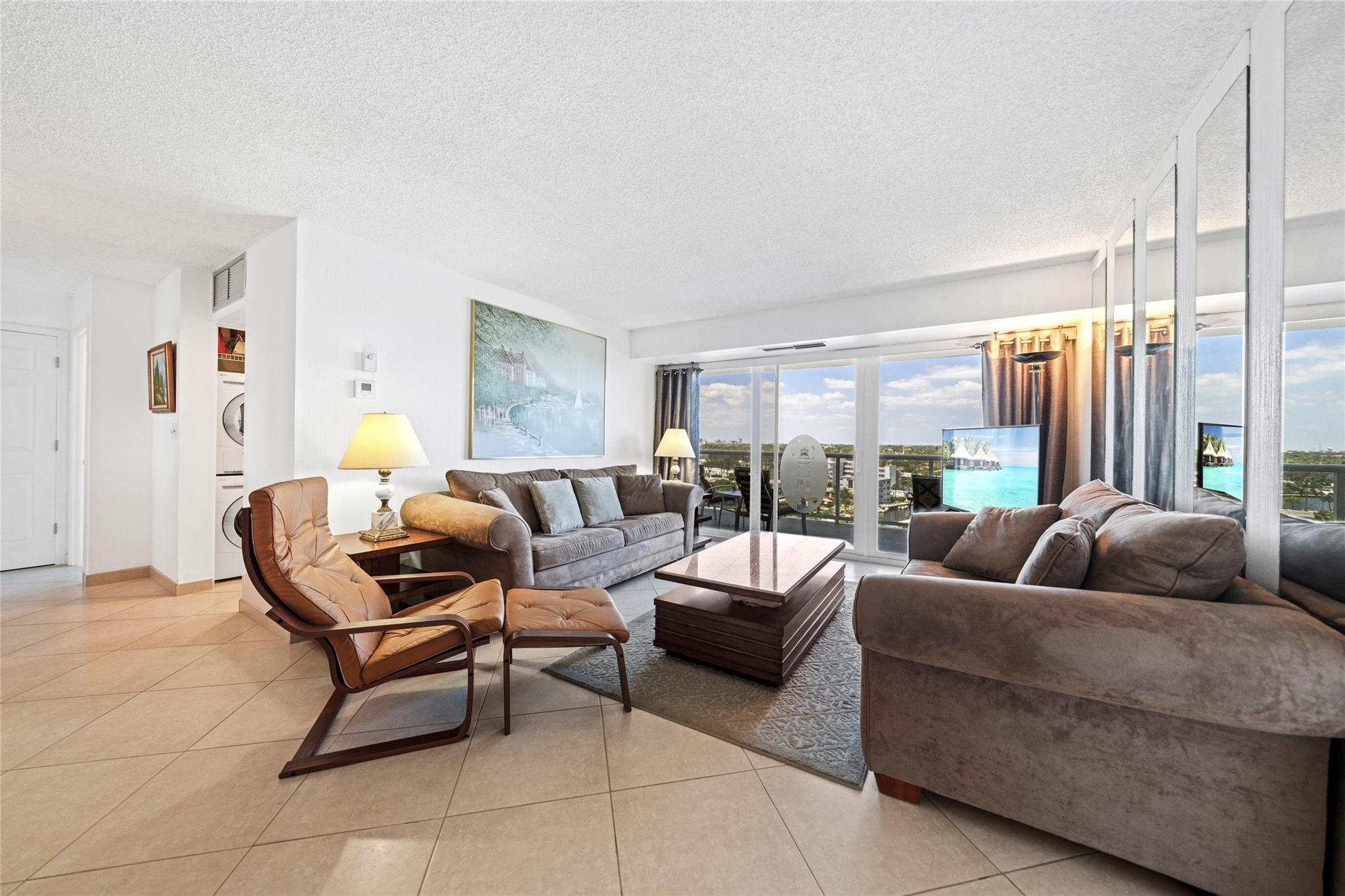 Assessment Paid! - Soak in direct Intracoastal views from every room in this light-filled 2BR/2BA condo at Vantage View. Enjoy a spacious balcony, updated kitchen with quartz counters and stainless appliances, in-unit washer/dryer, and a split-bedroom layout for privacy. Relax at the rooftop heated pool with 360° views of the ocean, Intracoastal, and downtown, plus fitness center, sauna, clubroom, on-site management, and 24-hr security. Covered parking and private storage included. The building is completing major upgrades including concrete restoration and refreshed common areas—an investment in lasting value. Fully funded and ideally located just blocks to the beach, waterfront dining, and the new Publix next door.