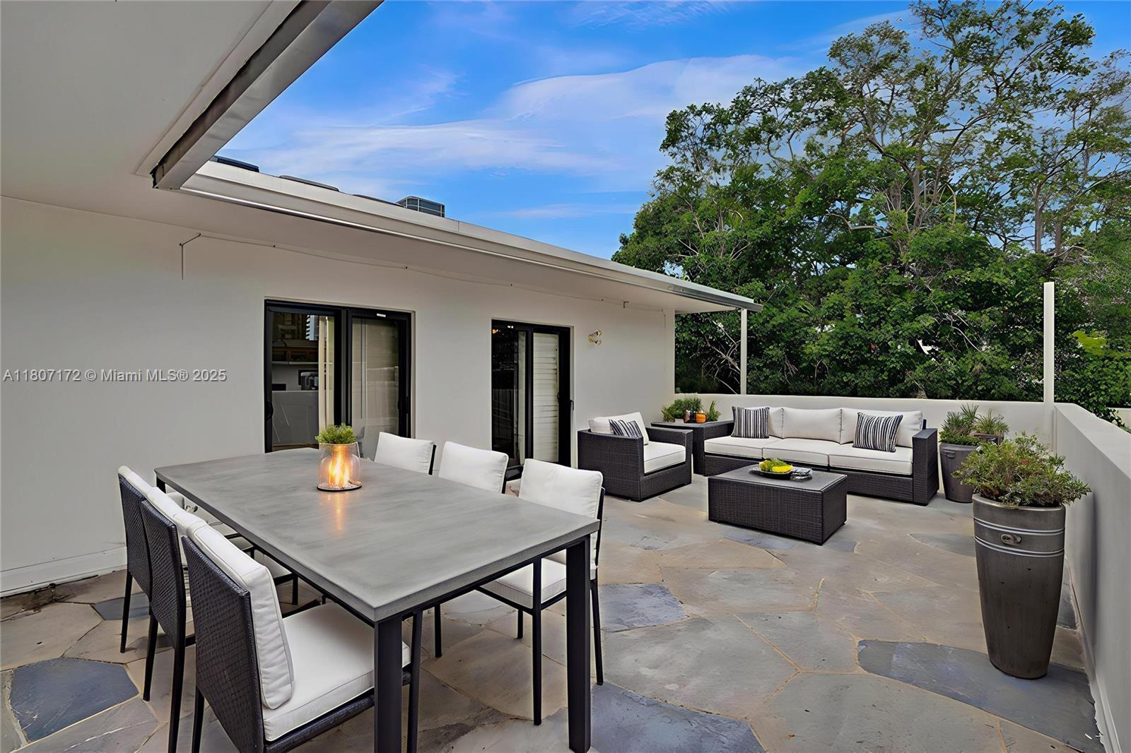 This stunning 2-bedroom historic penthouse in Coconut Grove's iconic 4-story building boasts unparalleled privacy and a sense of community through it's innovative two-wing design. New AC, walking distance to CocoWalk you will be surrounded by vibrant restaurants, shops, and lush landscaping. Large terraces ensuite to each bedroom, combining outdoor living and modern luxury. Terraces are perfect for entertaining with a spacious floorplan and unrivaled views of Miami's skyline. The common areas and garden have been beautifully updated to nature-inspired green spaces, offering serenity, security and natural light throughout. Open on Sunday's, perfect for a young family set on the coveted Coconut Grove, we also offer six-month wash and fold laundry services for the penthouse.