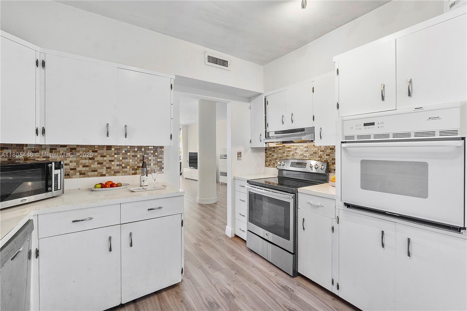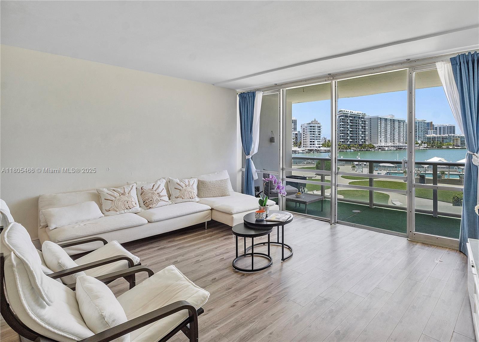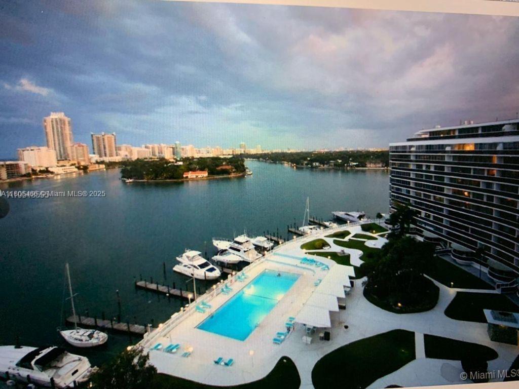 Stunning direct bay views from every room. Extra spacious 1065 sq ft 1/1 & half bath at luxurious King Cole condo, designed by renowned architect Morris Lapidus, Located in the heart of Normandy Village, Miami Beach, this property offers an excellent walkable location. As a full-service building, residents enjoy access to a marina, valet parking, 24-hour security, heated pool, exercise room, party room, kids' indoor play room, library, lounge, storage room and rooftop terrace. Additional amenities include bike and kayak storage rooms. Notably, the building has completed its 60-year recertification process and has no special assessments, making it a fabulous investment. WiFi, electricity and water is all included in the monthly HOA fees. Serenity in Miami.
