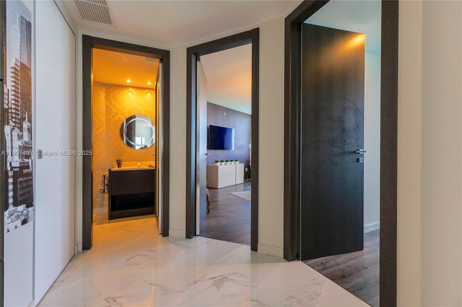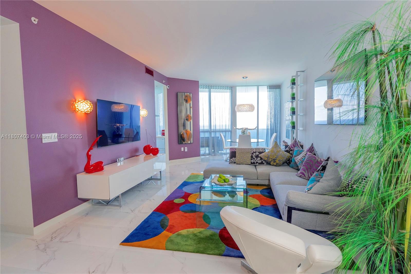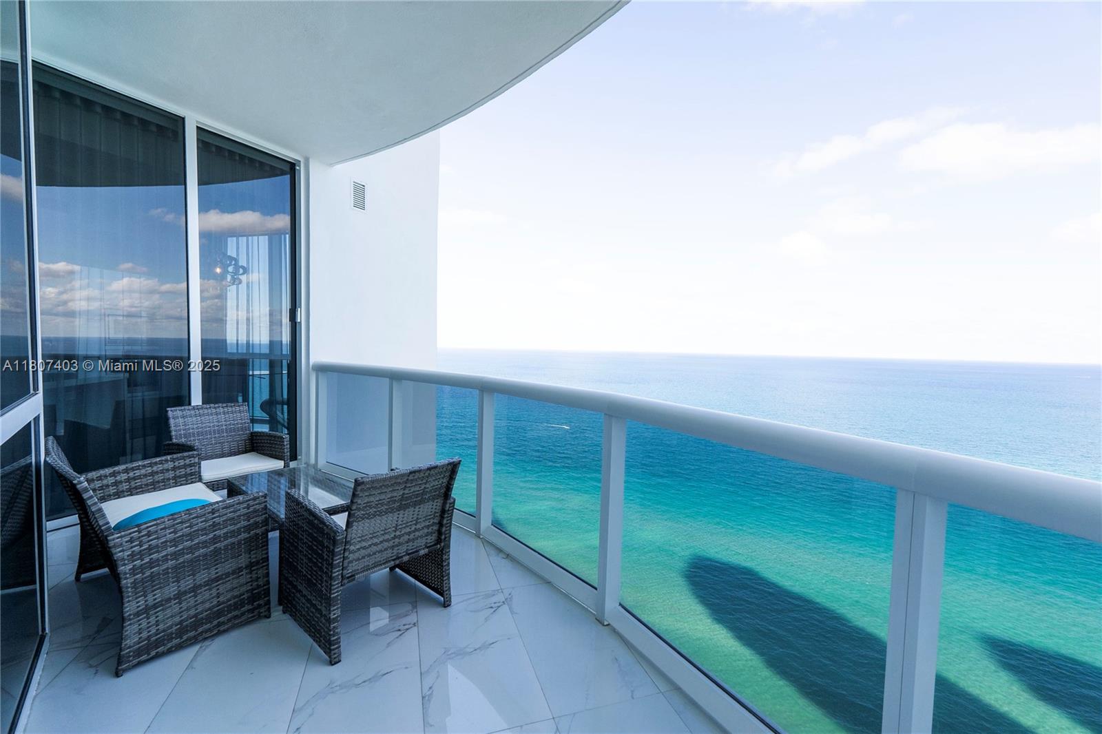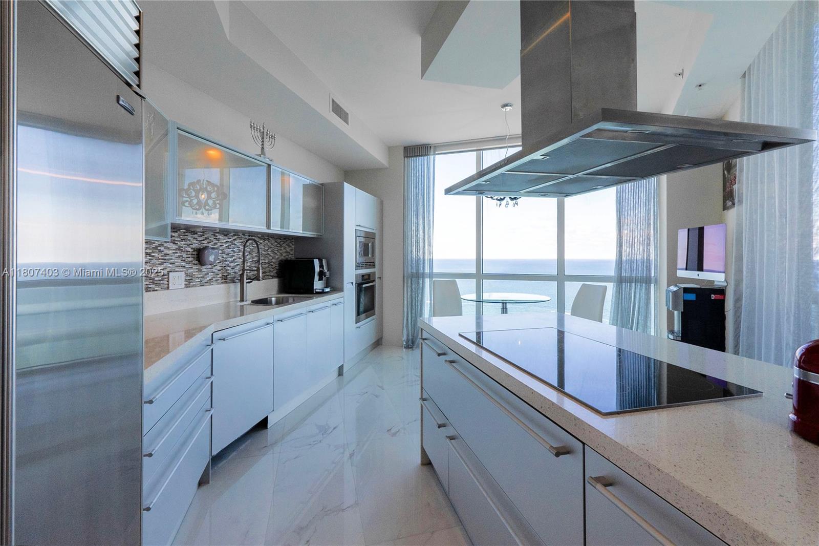 This spectacular 2BR, 2BTH + 1 half-bath/powder room. Direct ocean views from every room. Thoughtfully designed with impeccable attention to detail, the residence features high-end finishes, Roche Bobois furniture, custom closets, decorative lighting, and Italian kitchen with Quartz countertop and Miele appliances. Beautiful wood flooring in bedrooms and marble flooring, extensive wood paneling in the foyer, automated blinds, and brand-new Bosch washer/dryer unit. Private elevator entry. 24-hr concierge, beach access with 1,000 feet of oceanfront, 4 pools, tennis courts, a luxury spa, fitness center, and multiple on-site restaurants. Tropical landscaping,lagoon and lap pools,waterfalls, and a smart building infrastructure. Newer A/C system, new toilets, and updated exhaust fans. Furnished