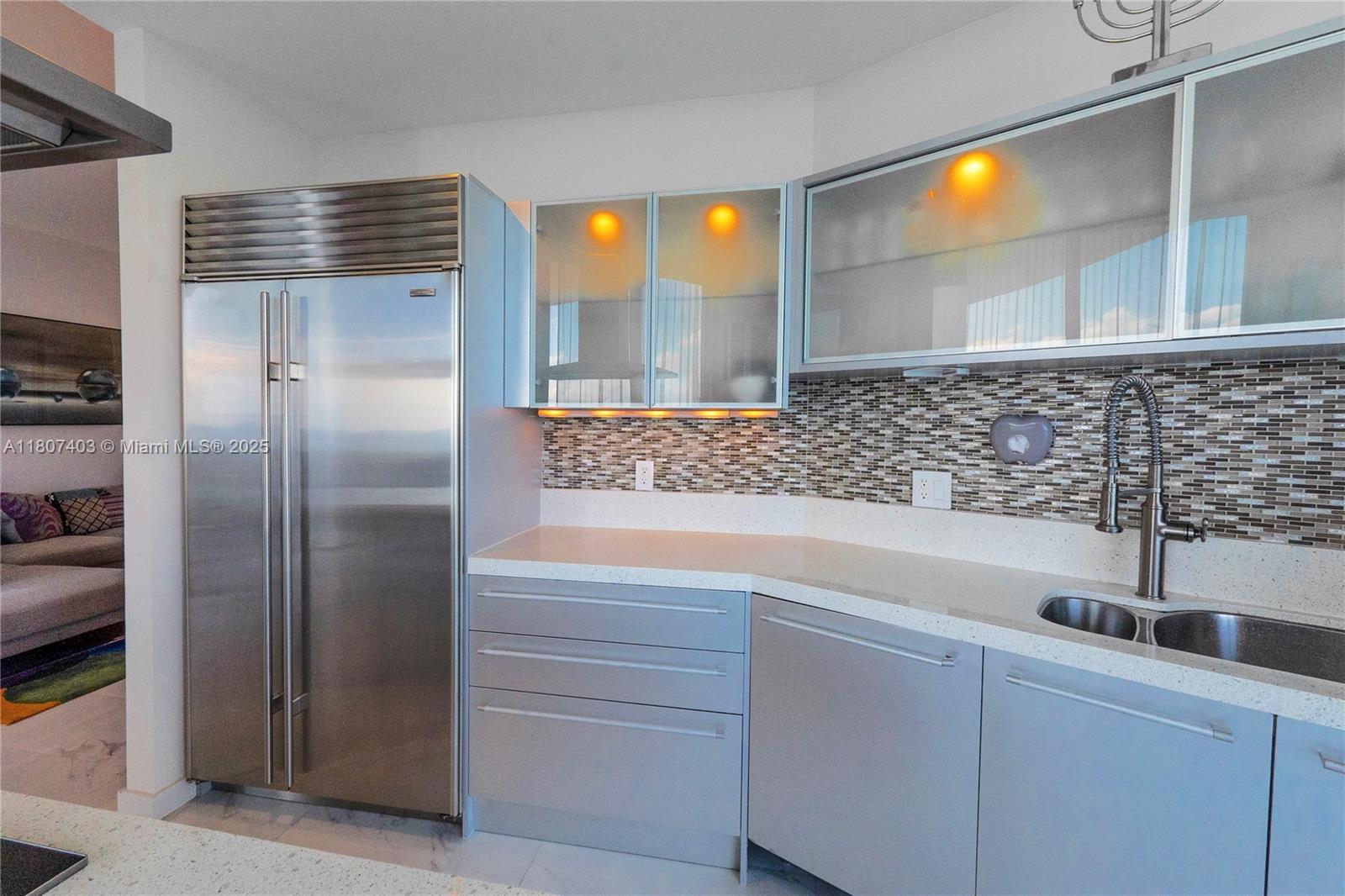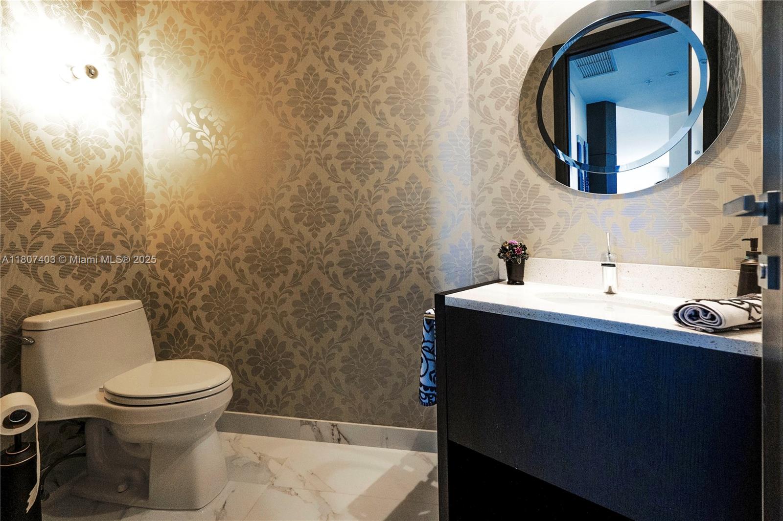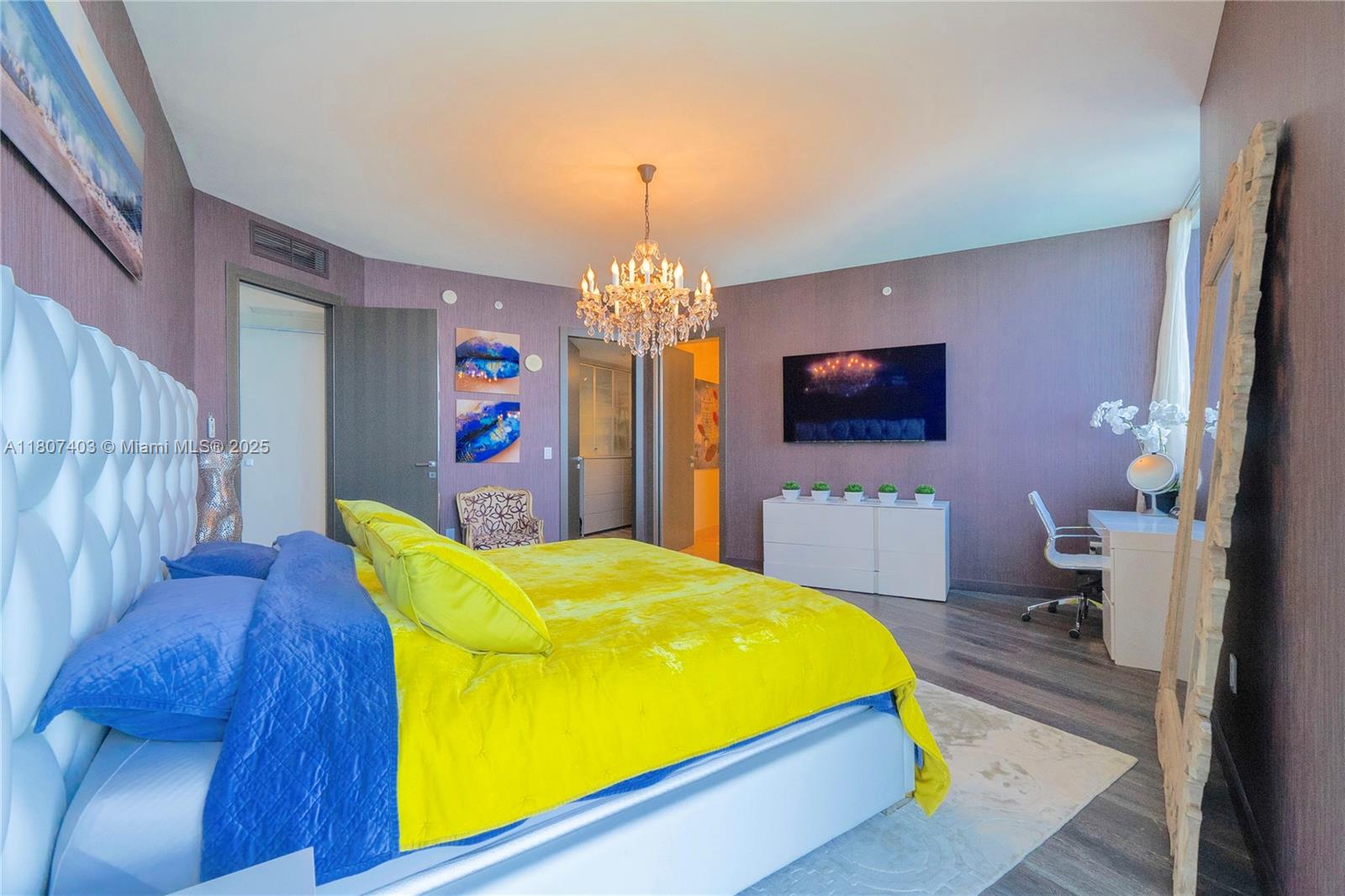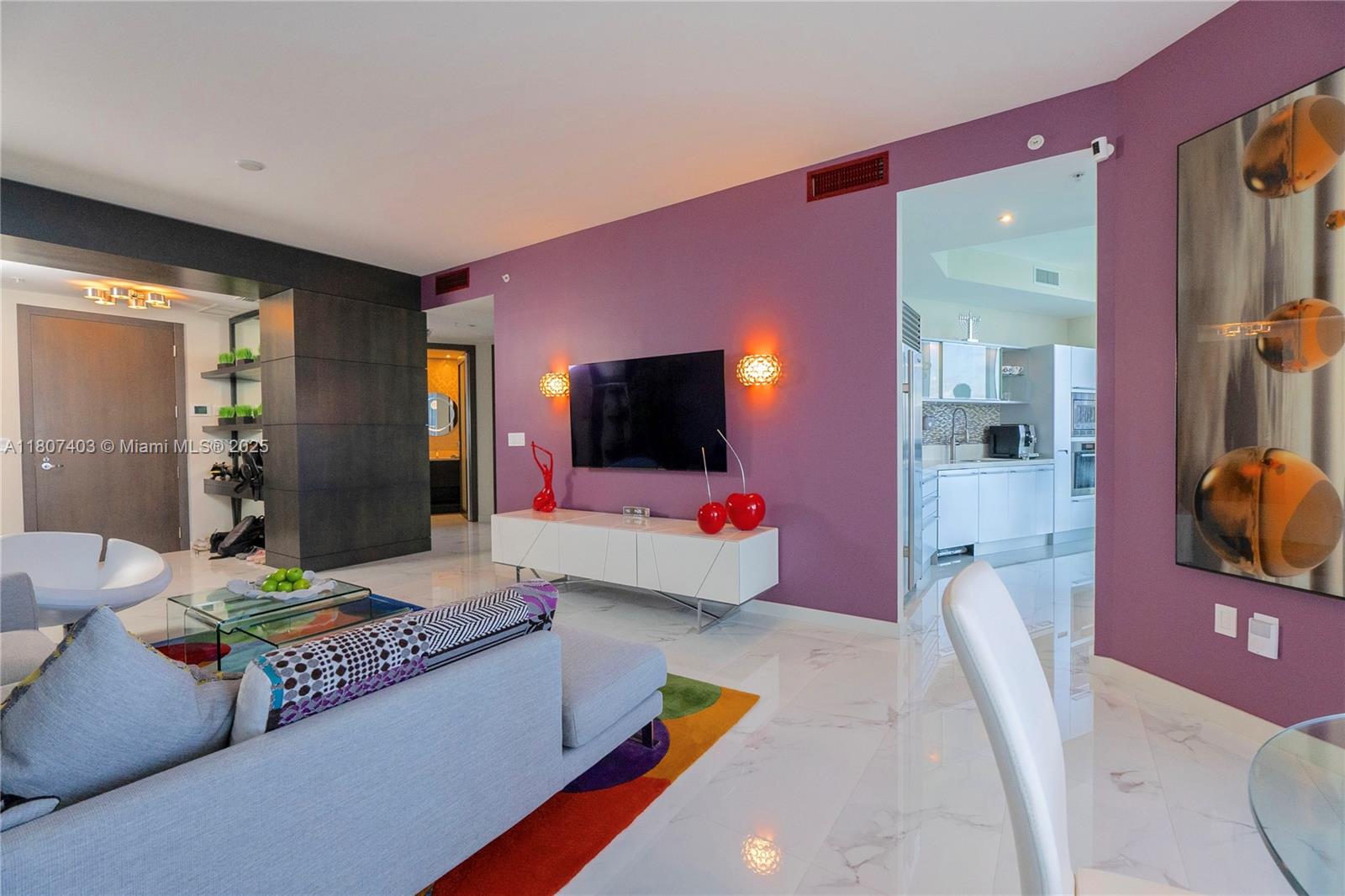 This spectacular 2BR, 2BTH + 1 half-bath/powder room. Direct ocean views from every room. Thoughtfully designed with impeccable attention to detail, the residence features high-end finishes, Roche Bobois furniture, custom closets, decorative lighting, and Italian kitchen with Quartz countertop and Miele appliances. Beautiful wood flooring in bedrooms and marble flooring, extensive wood paneling in the foyer, automated blinds, and brand-new Bosch washer/dryer unit. Private elevator entry. 24-hr concierge, beach access with 1,000 feet of oceanfront, 4 pools, tennis courts, a luxury spa, fitness center, and multiple on-site restaurants. Tropical landscaping,lagoon and lap pools,waterfalls, and a smart building infrastructure. Newer A/C system, new toilets, and updated exhaust fans. Furnished