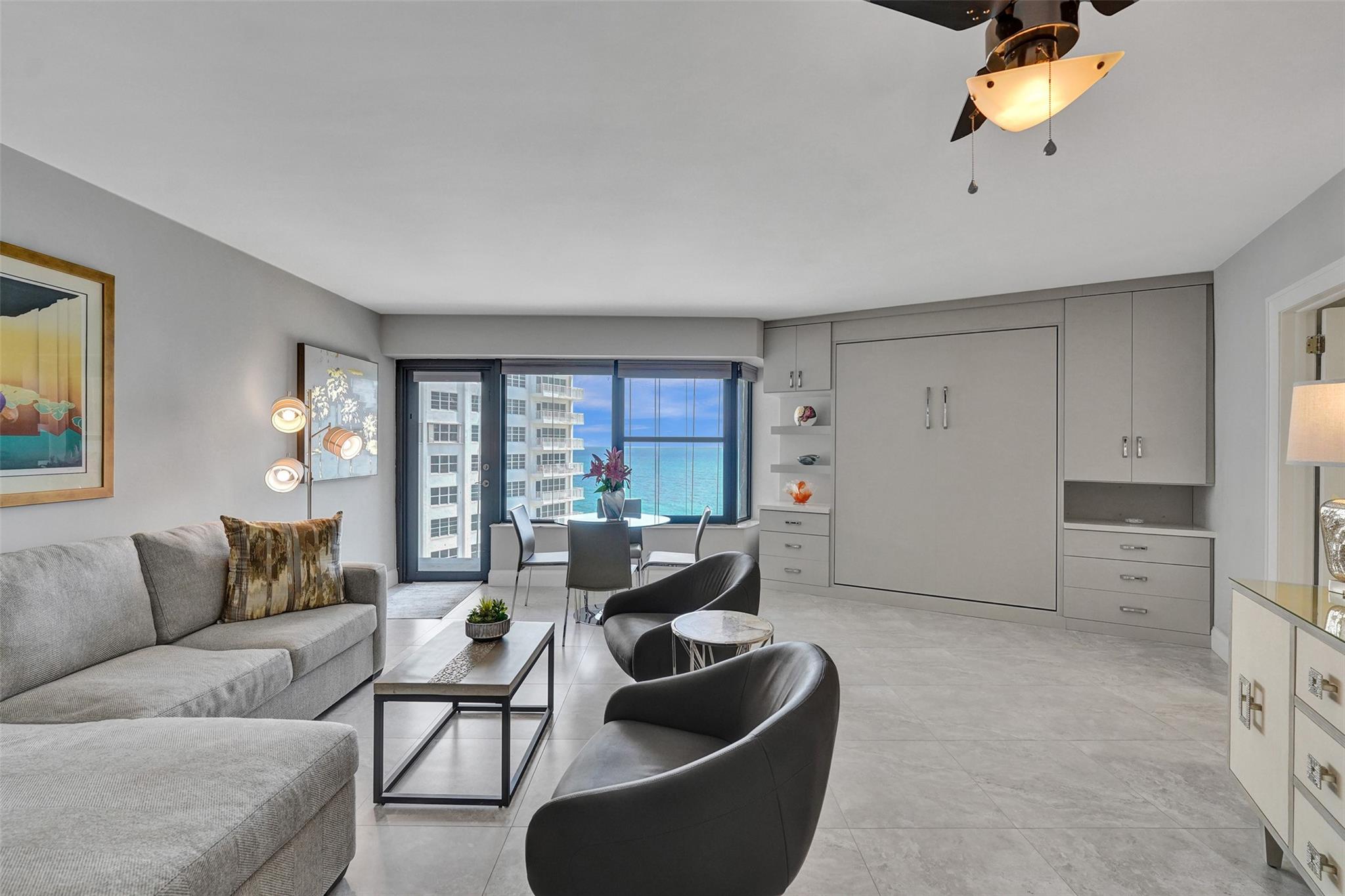 Live the dream in this carefree oceanfront studio condo on the prestigious Galt Ocean Mile. Walk to the beach, the pool, restaurants, bars, and retail in minutes. This unit is in meticulous and move-in ready condition. Tasteful furniture is included. This is a wonderful opportunity and an amazing value. LOCATION LOCATION LOCATION!! This unit has a garage parking space. Low HOA/Maintenance fee.