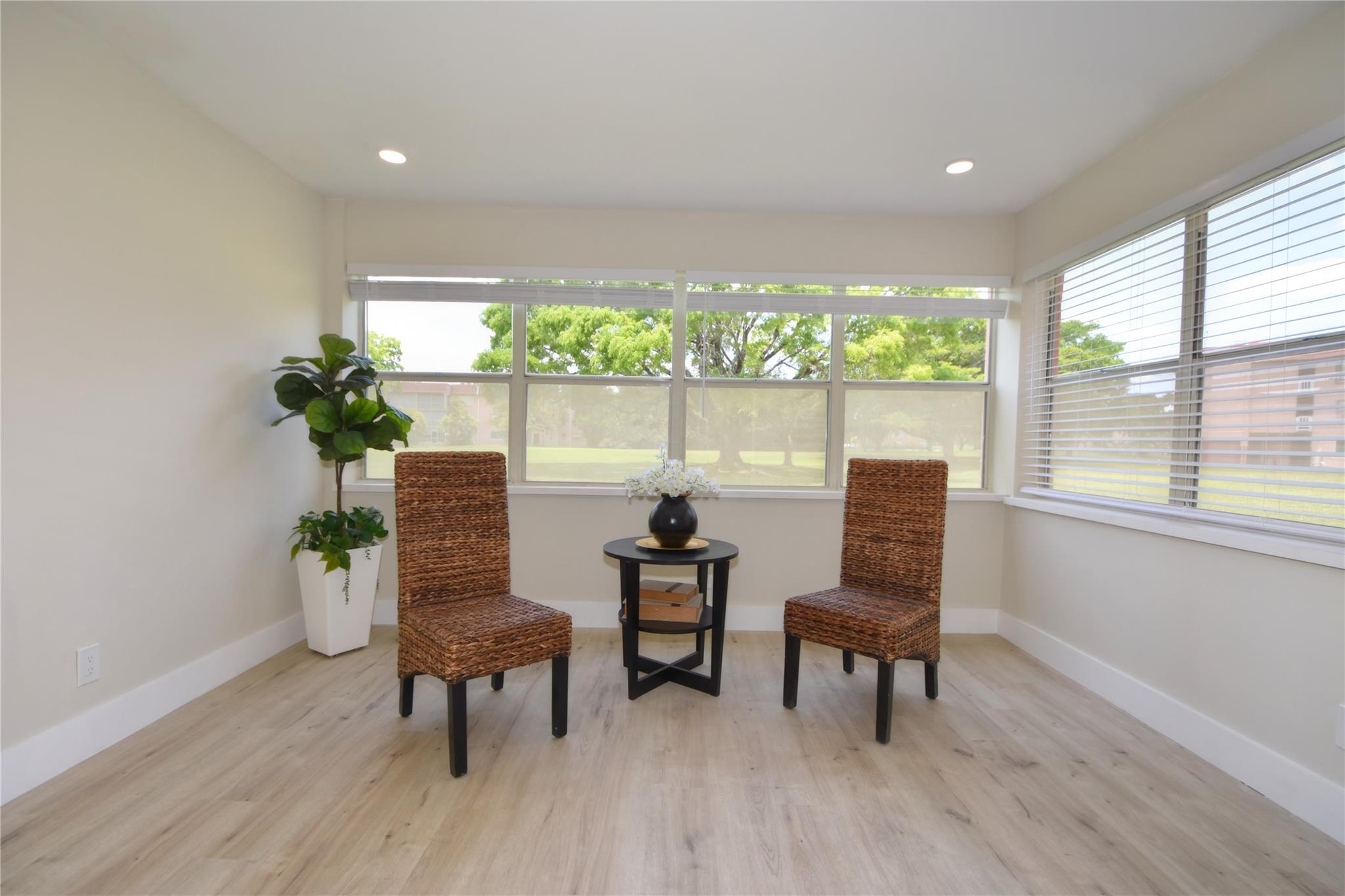 Light, Bright & Airy NEWLY RENOVATED FIRST FLOOR 1 Bedroom 1.5 bath 55+ Community in Sunrise Lakes Phase 3. White modern cabinets, quartz countertops, SS appliances. Laminate flooring (sand color) throughout with white tile in bathrooms. Large bedroom with spacious walk-in closet. Laundry facility on each floor. Extra locker storage. COMPLIMENTARY GOLF COURSE, many pools to choose from, indoor & outdoor. Various activities to choose from, you will not be bored! This community is very well maintained, and the roof was just recently replaced.